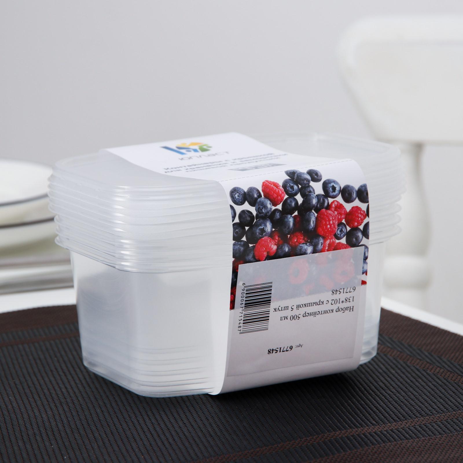 Набор контейнеров, 500 мл, 13,8x10,2 см, 5 шт, с крышкой, цвет прозрачный