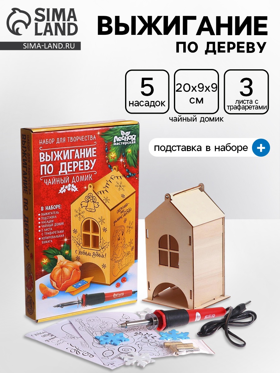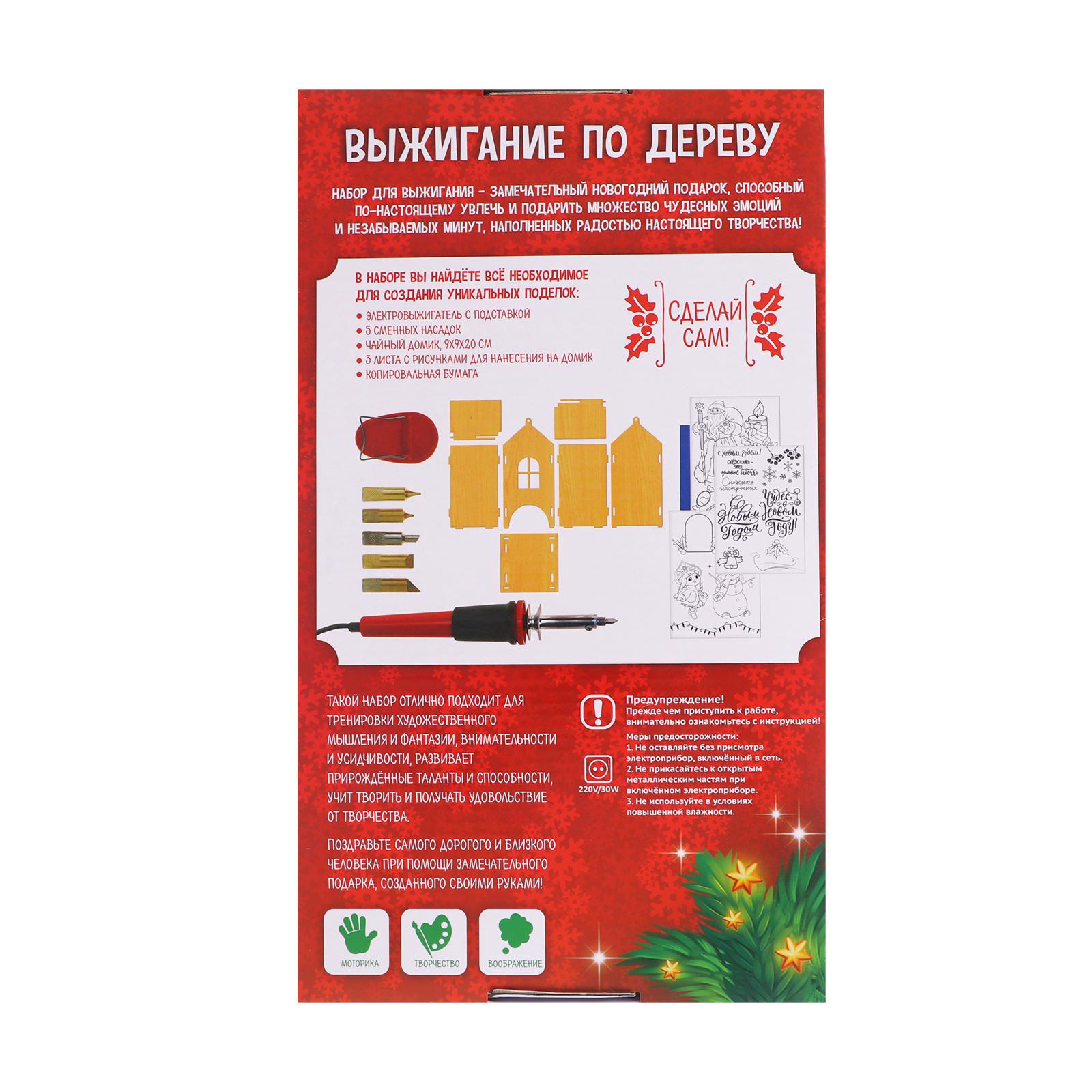 Выжигание и роспись по дереву «новый год! чайный домик», набор для творчества. Набор для выжигания - замечательный новогодний подарок, способный по-настоящему увлечь и подарить множество чудесных эмоций и незабываемых минут, наполненных радостью настоящего творчества.Украсьте чайный домик, используя рисунки из набора , или придумайте свои иллюстрации. Такой набор отлично подходит для тренировки художественного мышления и фантазии, внимательности и усидчивости, развивает таланты и способности, учит творить и получать удовольствие от творчества. Поздравьте самого дорогого и близкого человека подарком, сделанным своими руками! Для кого:Унисекс|Возраст:От 7 лет|Количество насадок:5|Символ года:Нет|Тематика праздника:Новый год|Материал:Дерево|Составляющие набора:Товары для творчества|Страна:Китай  развернуть описание ▼