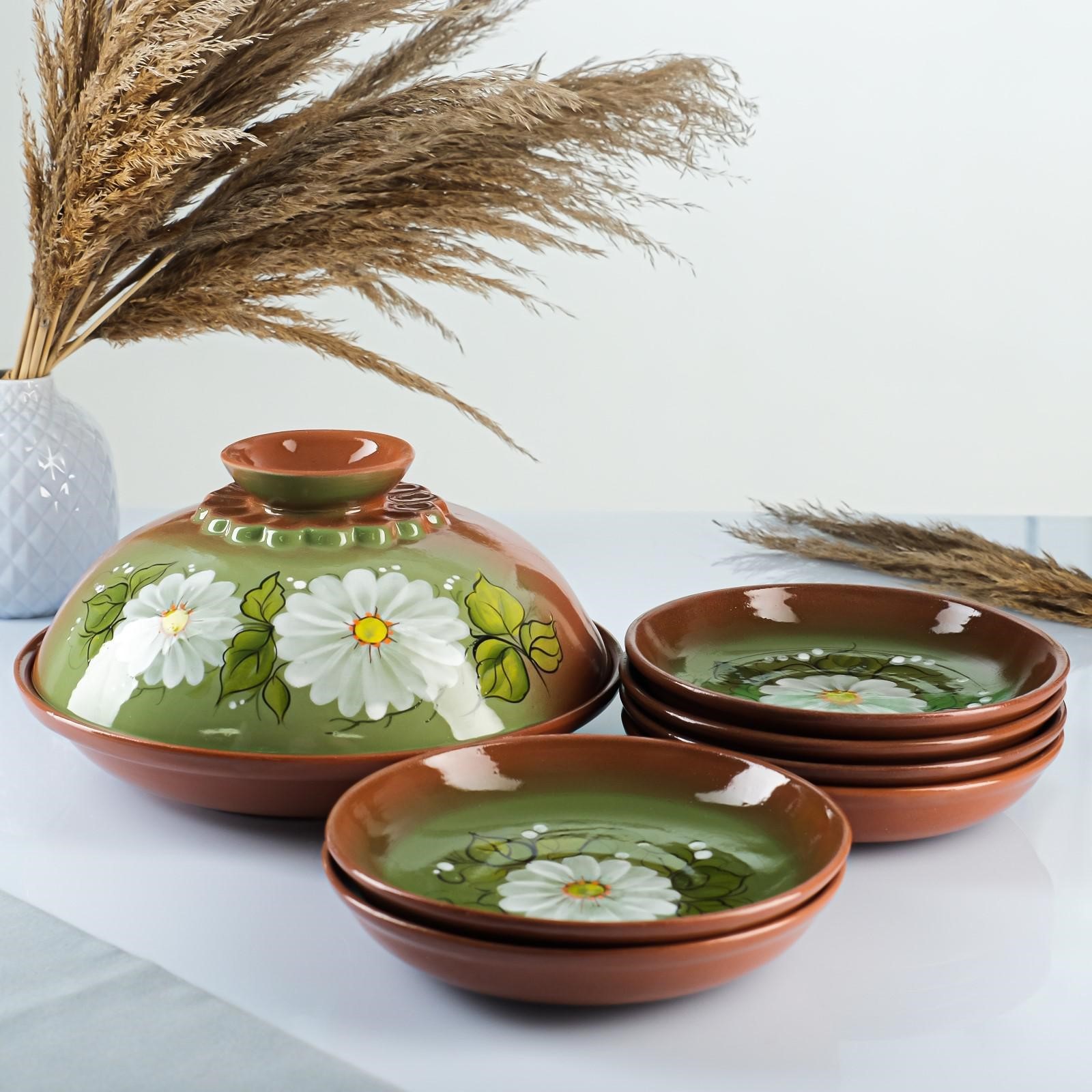 Набор для блинов 7 предметов: 1 шт. блинница, 6 шт. тарелок, с росписью, ромашка