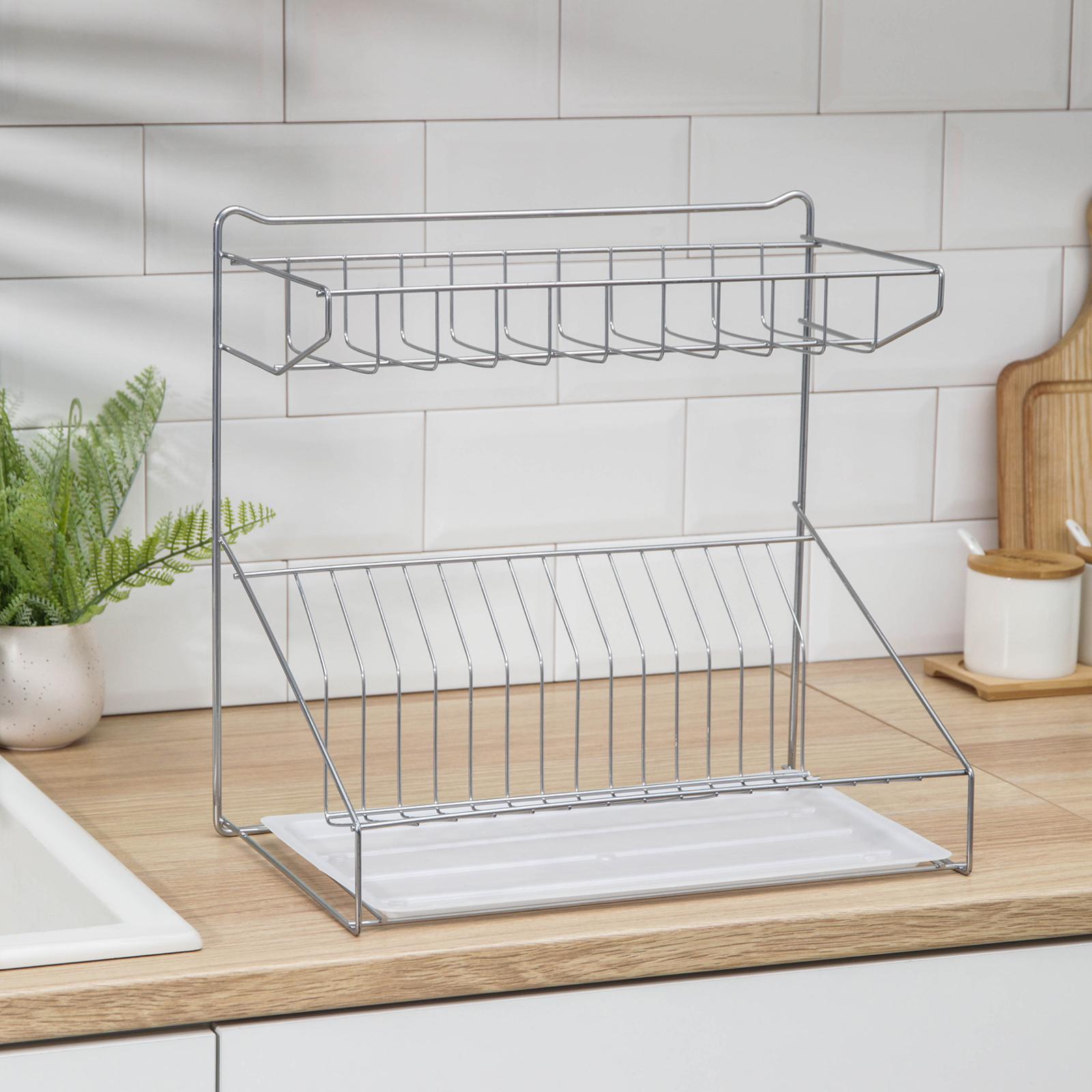 Сушилка для посуды с поддоном, 38x24x38 см, цвет хром