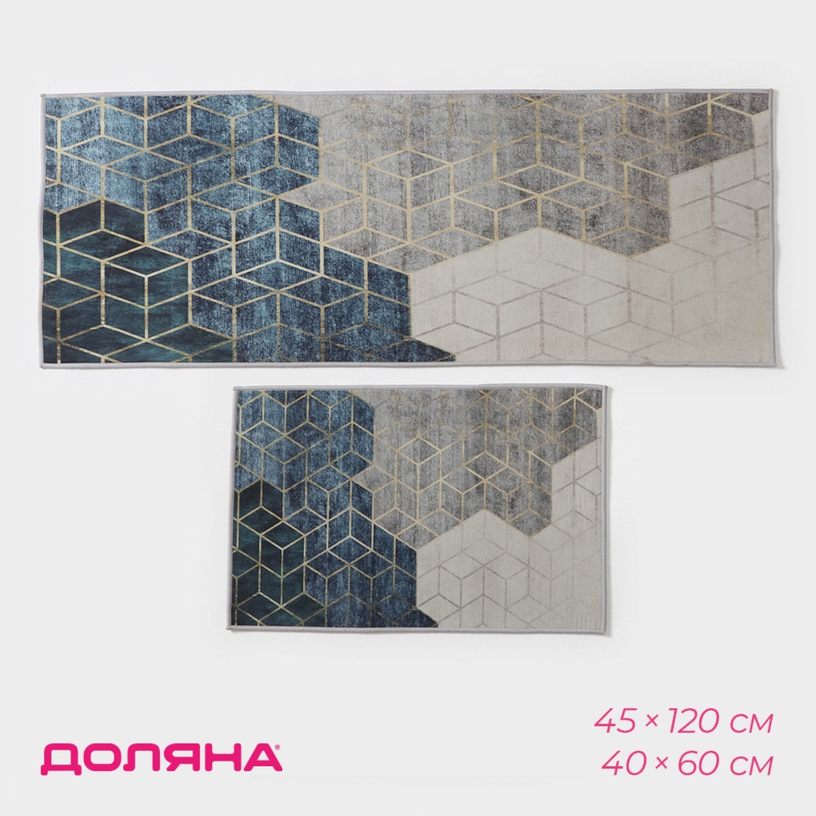 Набор ковриков доляна «галилео», 2 шт, 45x120 см, 40x60 см, цвет синий. Разнообразные коврики давно стали чуть ли не обязательным атрибутом любой ванной комнаты. Мы хотим познакомить вас с лучшими из лучших. Представляем вам коврик для ванной. Мы уверены, он полюбится с первого взгляда! Коврики-маты давно популярны и известны почти в каждом доме. Взгляните на отличительные особенности ковриков для ванны из такого материала: удобно мыть вручную тёплой водой с мыльной пеной;не требует специальных условий хранения и использования;износостойки, долговечны, не деформируются со временем;прорезиненная основа защищает от проскальзывания;отличаются гипоаллергенными свойствами. Вас удивит мягкая и нежная текстура коврика, а разнообразные яркие расцветки помогут оживить и дополнить уже существующий дизайн ванной комнаты. Отдельно порадует его низкая стоимость и высокое качество. Цвет: Синий Форма: Прямоугольная Размер, см: 40 х 60 Размер, см: 45 х 120 Длина, см: 60 Длина, см: 120 Ширина, см: 40 Ширина, см: 45 В наборе, шт.: 2 Температура стирки, °C: 30 Тематика: Геометрия Тематика: Абстракция Материал: Полиэстер Тип коврика: С коротким ворсом/гладкие Вид стирки: Ручная Вид: Ковёр Форма: Прямоугольник  развернуть описание ▼