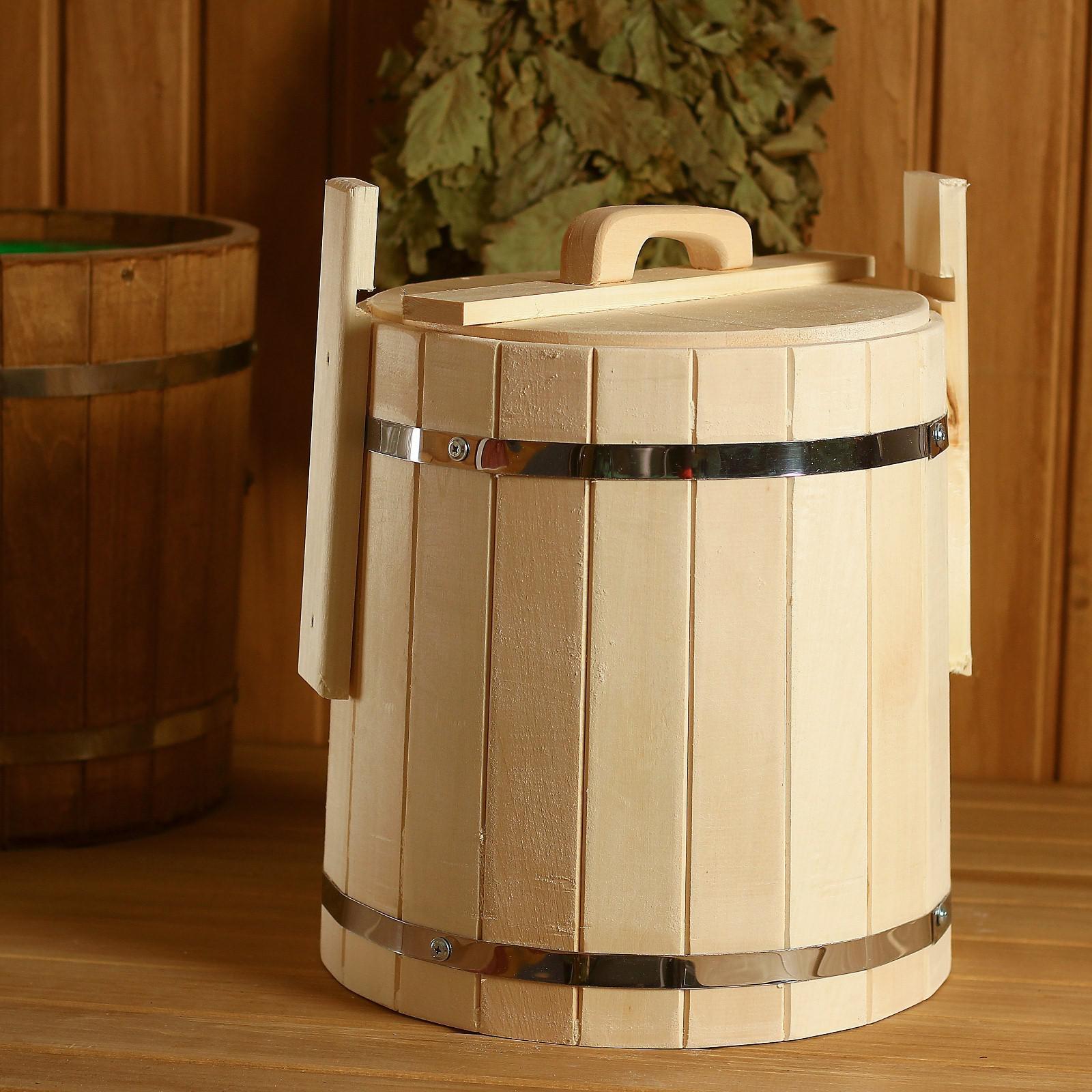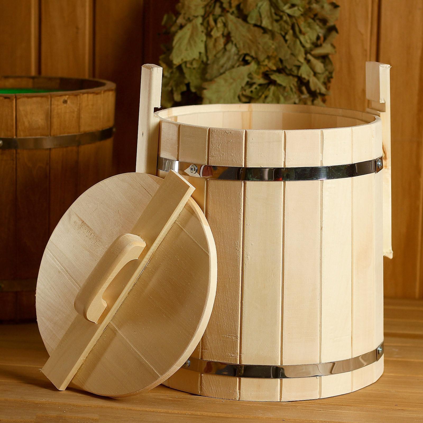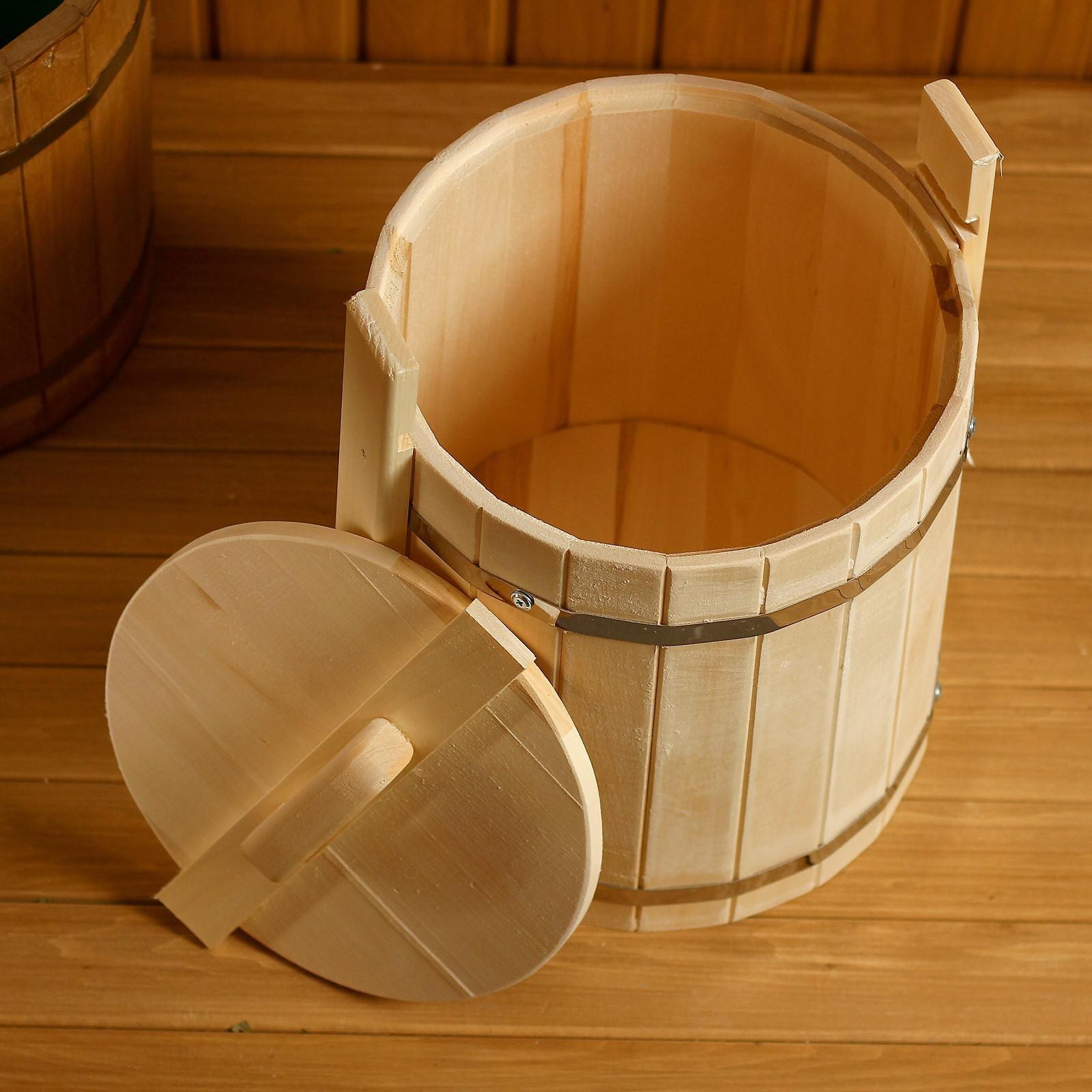 Кадка из липы, 15 л, нержавеющий обруч, с крышкой, "добропаровъ"