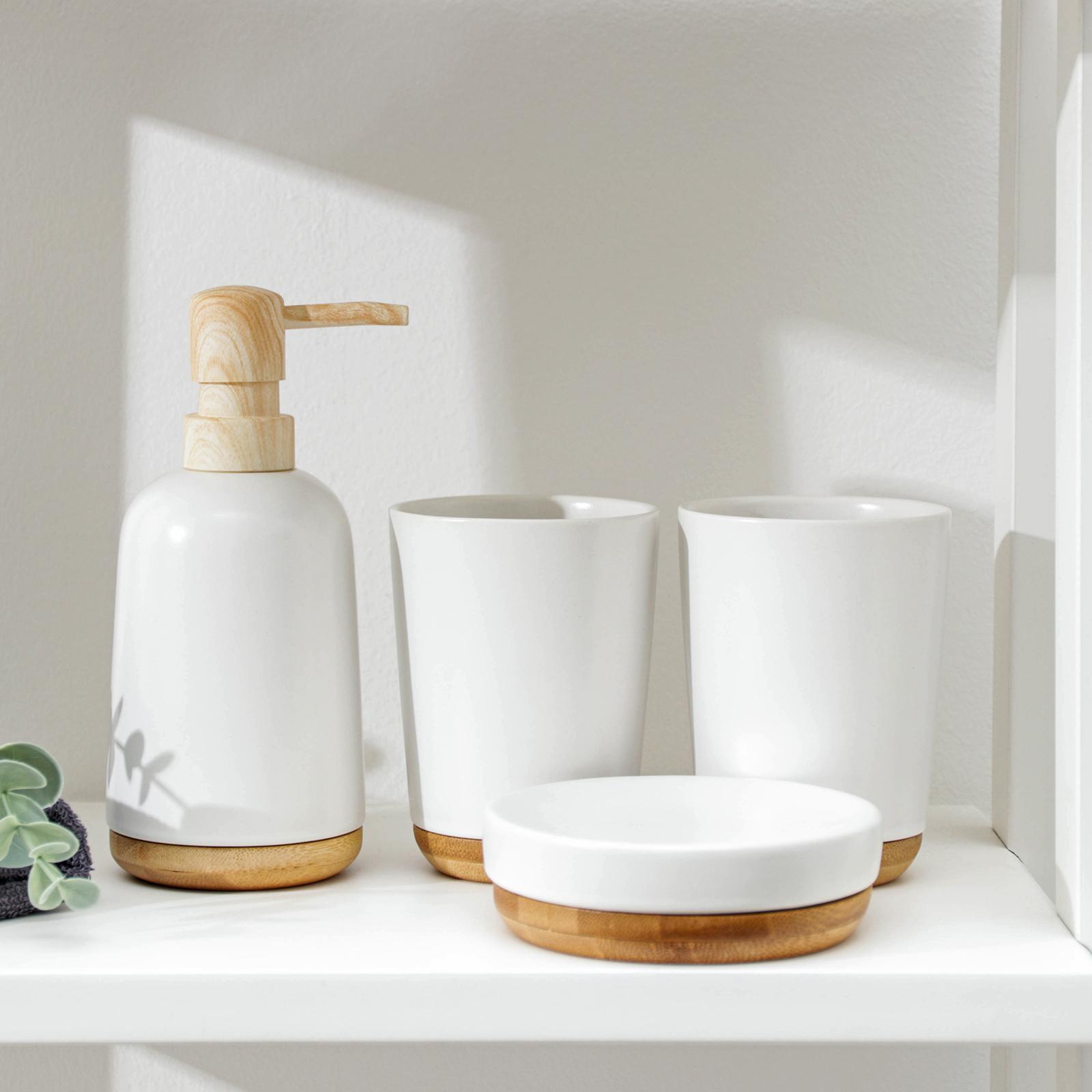 Набор аксессуаров для ванной комнаты «эко», 4 предмета (мыльница, дозатор для мыла, 2 стакана), цвет белый
