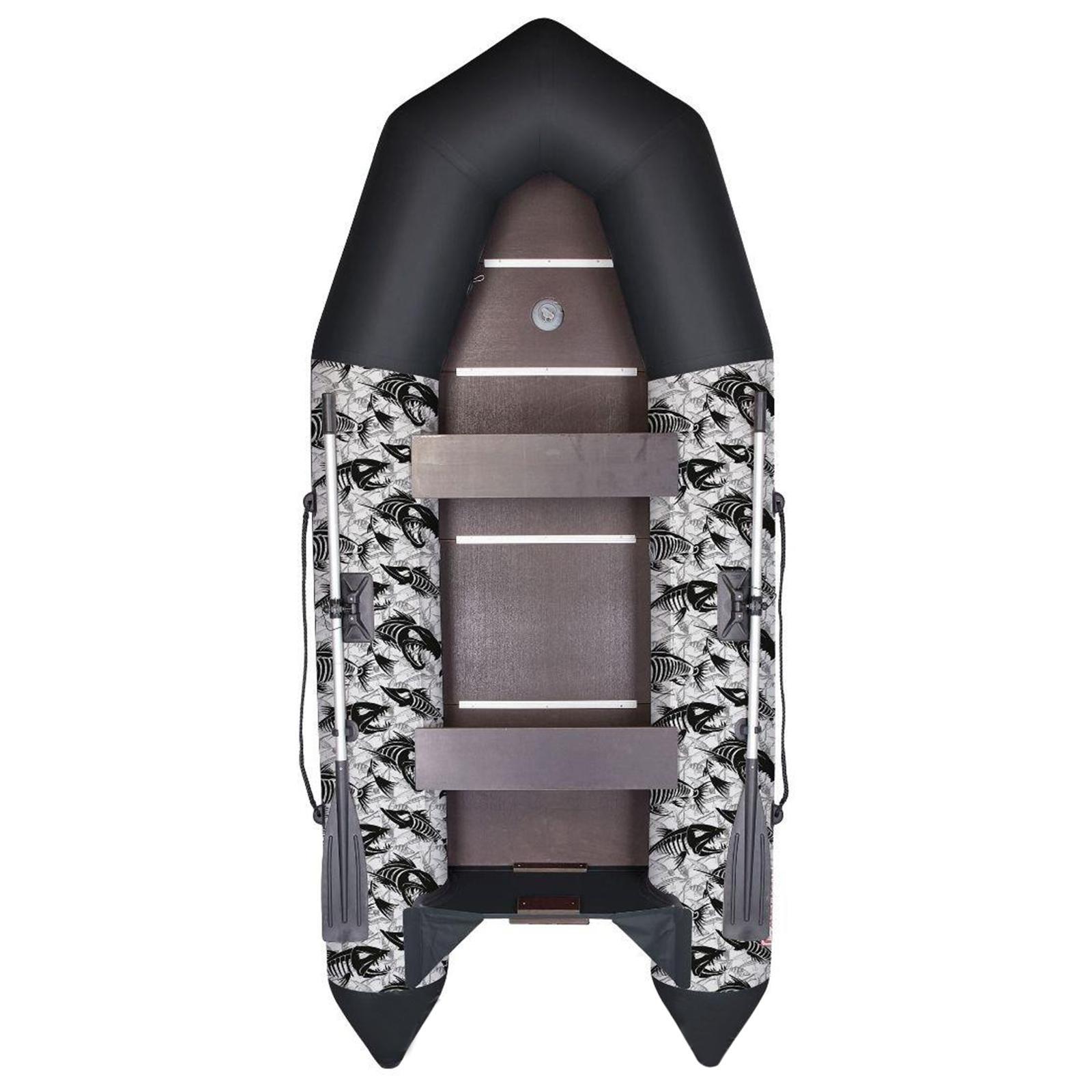 Лодка «капитан т310», слань+киль, цвет принт рыбы. Моторно-гребная лодка «КАПИТАН Т310» — это лёгкая и вместительная лодка. Просторный кокпит лодки и грузоподъёмность позволяют комфортно разместиться пассажирам и расположить весь необходимый груз. За счёт оснащения лодки килеватым днищем улучшается ее управляемость, обеспечивается плавное всхождение на волну, что позволяет уверенно глиссировать с мотором мощностью до 8 л. с. Рекомендованные районы плавания: прибрежная зона, реки и озёра. Характеристики: ткань ПВХ (пятислойный): 900 г/м2. ;длина наибольшая: 3, 10 м. ;ширина наибольшая: 1, 41 м. ;длина кокпита : 2, 30 м. ;ширина кокпита: 0, 65 м. ;диаметр баллона наибольший: 0, 38 м. ;масса изделия в комплекте: 36 кг. ;грузоподъёмность: 400 кг. ;пассажировместимость: 3+1 чел. ;количество герметичных отсеков: 3 шт + киль;тип транца: стационарный;мощность двигателя: до 8, 0 л. с. ;макс. вес мотора: 42 кг;тип дна: жёсткий пайол;рабочее давление в баллоне: 0, 22 кгс/см2. Вид: Моторно-гребная Грузоподъёмность, кг: 400 Макс. мощность мотора, л.с.: 8 Длина, см: 310 Ширина, см: 141 parts count: 0 Количество мест: 3 Вес, кг: 36 : 900 Вид дна: Жёсткий настил (пайол) Комплектация: Сиденья Комплектация: Уключины для вёсел Комплектация: Сумка упаковочная Комплектация: Вёсла Комплектация: Насос Комплектация: Слань Комплектация: Ремкомплект Температурное ограничение: Нет  развернуть описание ▼