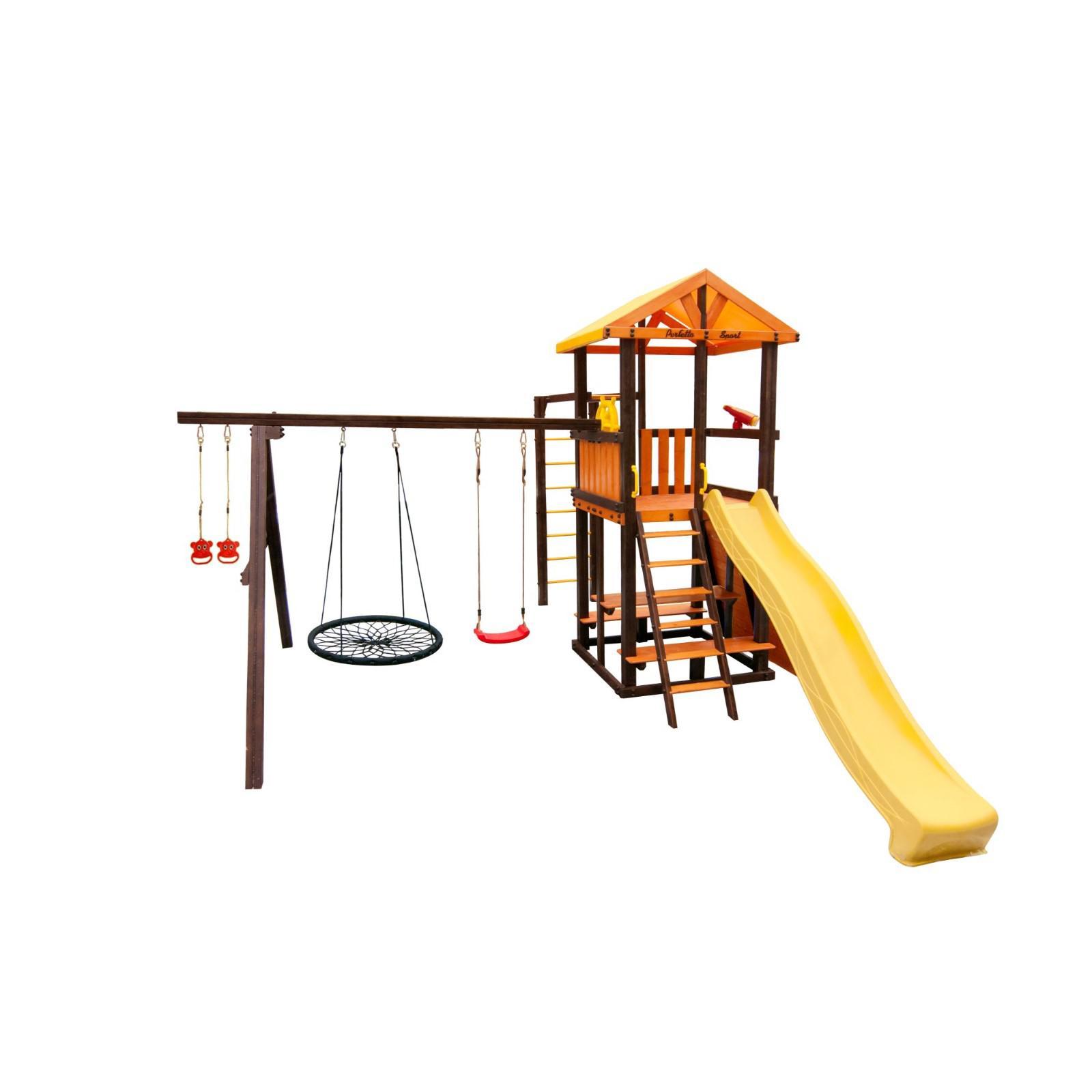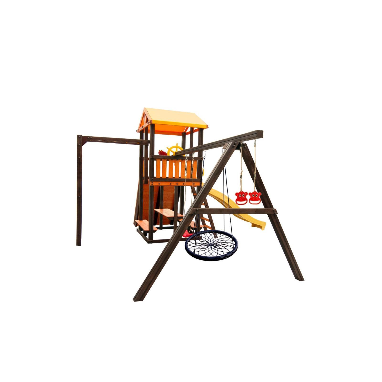 Спортивно-игровой комплекс perfetto sport bari-8 + качели «паутина». Спортивный комплекс с элементами игровой площадки подходит для укрепления здоровья и активного досуга. Изготовлен из отборного пиломатериала хвойных пород, что обеспечивает долговечность и устойчивость к внешней агрессивной среде. Благодаря специальной конструкции, клееный брус имеет высокие прочностные характеристики, не даёт усадки и не деформируется. Закругление кромок по четырём сторонам деталей снижает вероятность растрескивания, появления сколов, трещин и повышает уровень безопасности. Установка не требует специальной подготовки. Комплекс имеет повышенную морозостойкость до -50°С. Комплектация Игровой домикСтоликЛавочка: 2 шт. ЛестницаСкатРучка пластиковая: 2 шт. Качели "Лодочка": 2 шт. Кольца "Микки"Штурвал "Шторм"Бинокль "Капитан"Качели "Паутина"СкалодромХарактеристики Высота: 3, 23 мСкат горки: 3 мВысота горки: 1, 5 мЗанимаемая площадь: 5, 19 х 4, 99 мМатериал: дерево, пластикНагрузка на навесное оборудование: 50 кгМаксимальная нагрузка: 250 кг Возраст: От 3 лет Maксимальная нагрузка, кг: 50 Maксимальная нагрузка, кг: 250 Комплектация: Скамья Комплектация: Горка Комплектация: Игровой домик Комплектация: Лестница  развернуть описание ▼