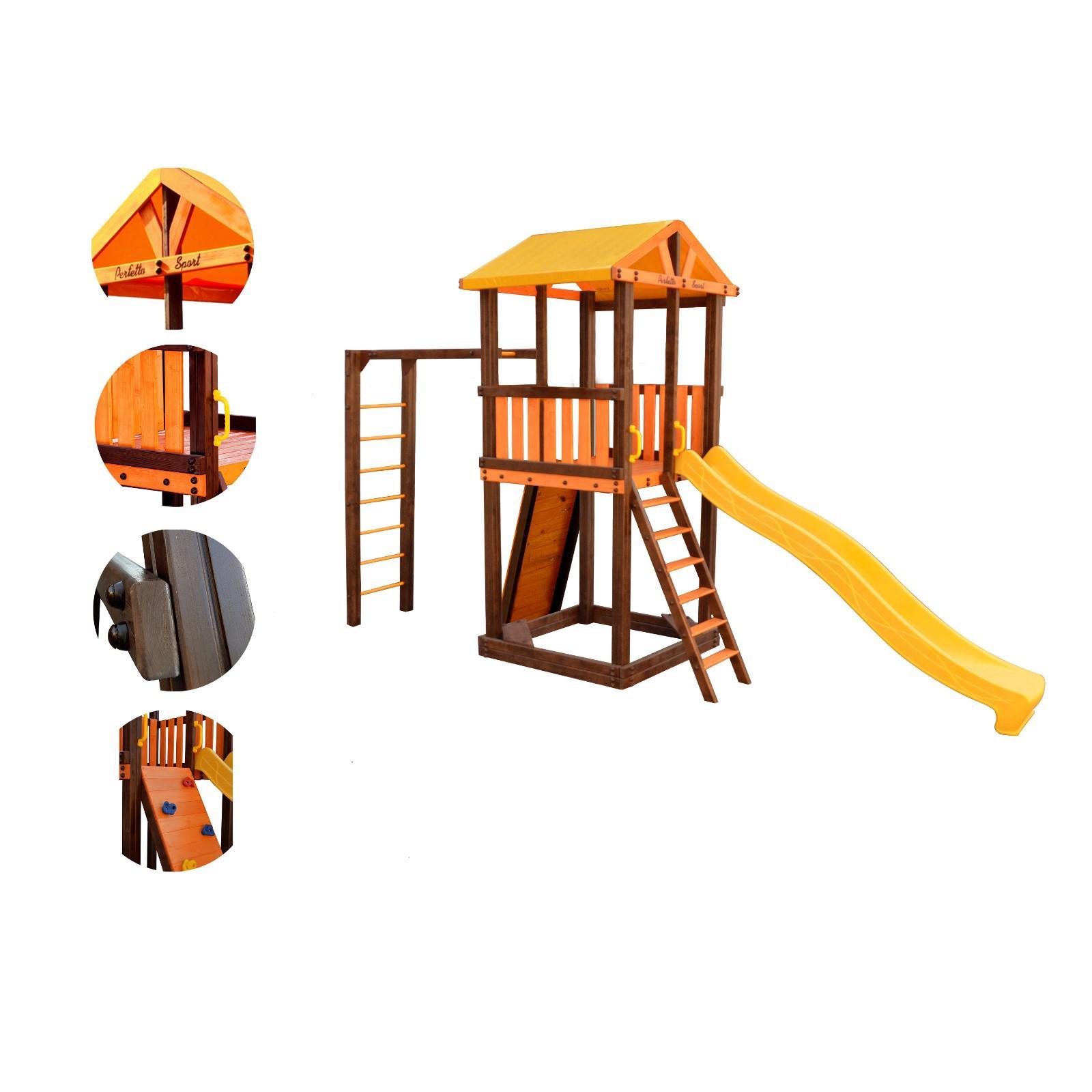 Спортивно-игровой комплекс perfetto sport pitigliano-17. Спортивный комплекс с элементами игровой площадки подходит для укрепления здоровья и активного досуга. Изготовлен из отборного пиломатериала хвойных пород, что обеспечивает долговечность и устойчивость к внешней агрессивной среде. Благодаря специальной конструкции, клееный брус имеет высокие прочностные характеристики, не даёт усадки и не деформируется. Закругление кромок по четырём сторонам деталей снижает вероятность растрескивания, появления сколов, трещин и повышает уровень безопасности. Установка не требует специальной подготовки. Комплекс имеет повышенную морозостойкость до -50°С. Комплектация Игровой домикПесочницаЛестницаСкатРучка пластиковая: 2 шт. СкалодромХарактеристики Высота: 3, 23 мСкат горки: 3 мВысота горки: 1, 5 мЗанимаемая площадь: 5, 19 х 2, 05 мМатериал: дерево, пластик, металлМаксимальная нагрузка: 250 кг Возраст: От 3 лет Maксимальная нагрузка, кг: 250 Комплектация: Лестница Комплектация: Игровой домик Комплектация: Горка Комплектация: Песочница Комплектация: Скалодром  развернуть описание ▼