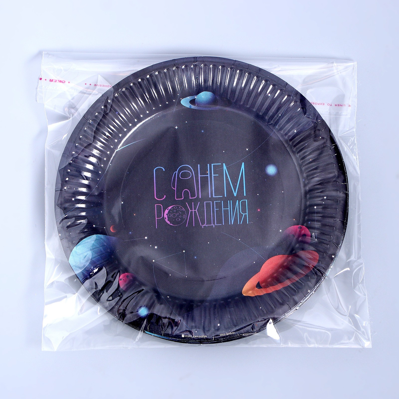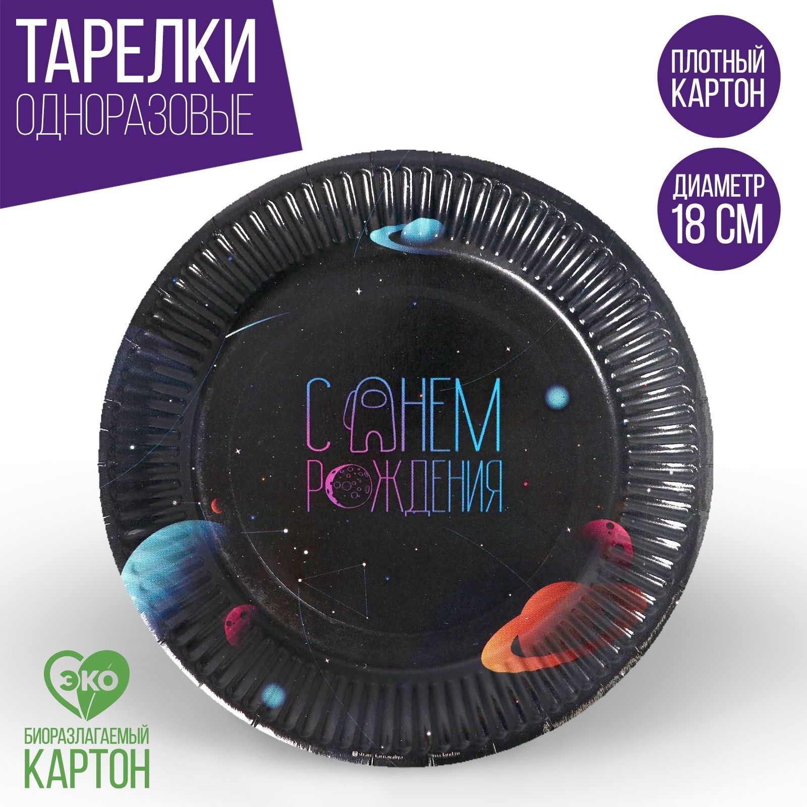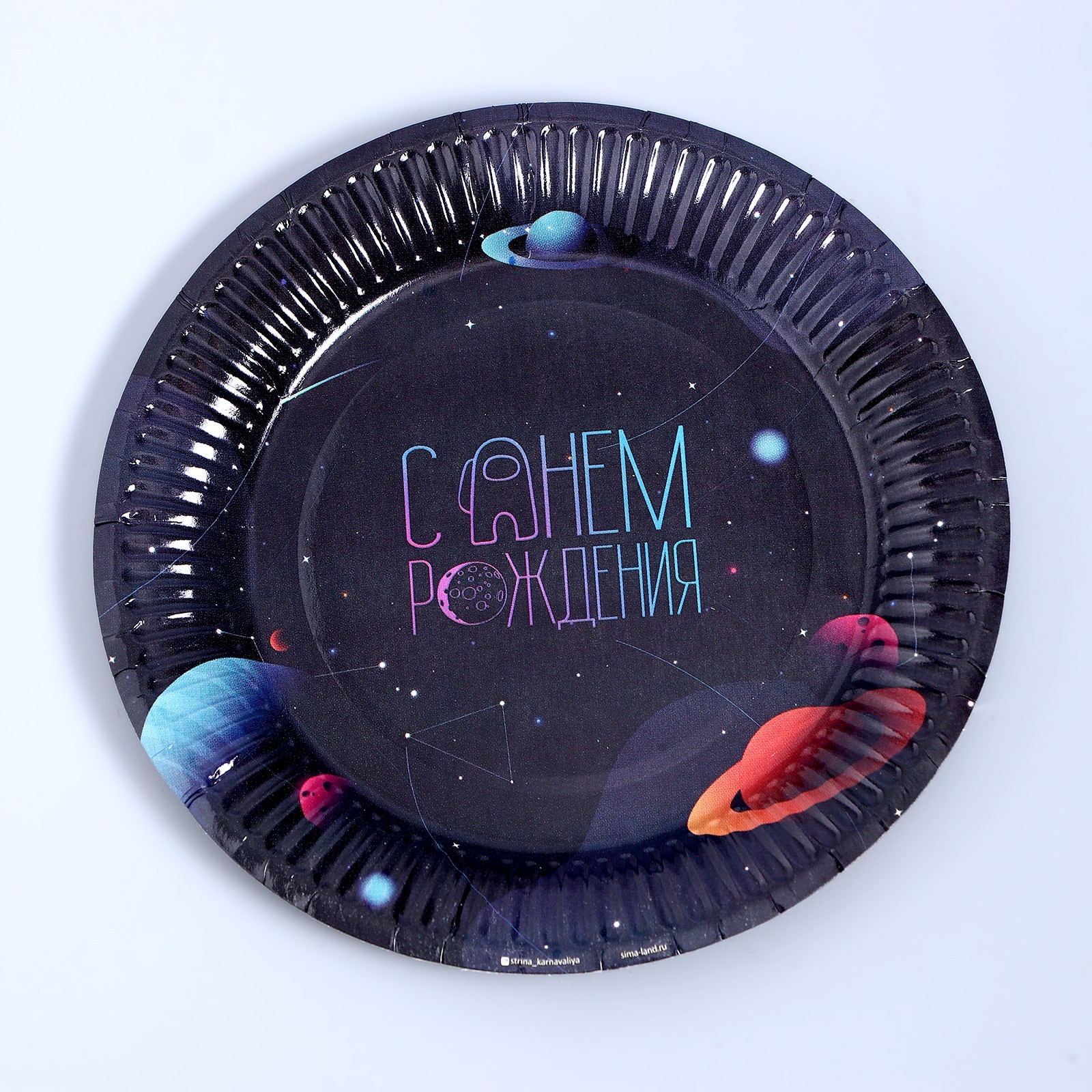 Тарелка одноразовая бумажная "космический мир", 18 см
