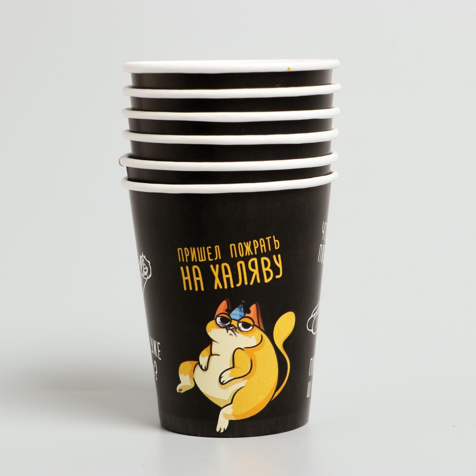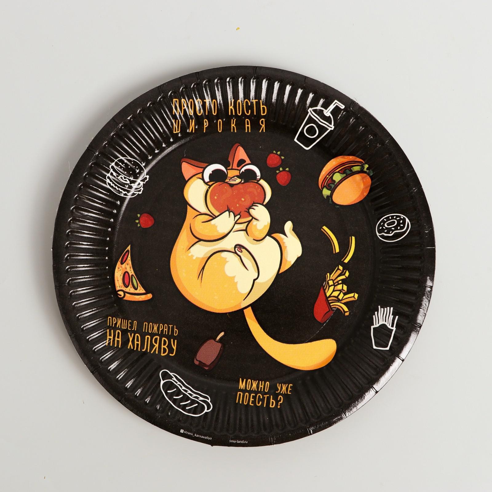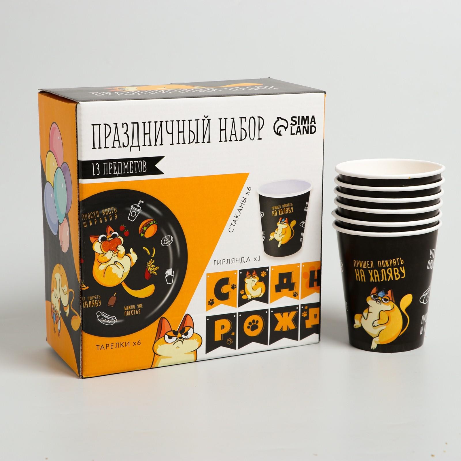 Набор бумажной посуды одноразовый котик обжора», 6 тарелок, 6 стаканов, 1 гирлянда