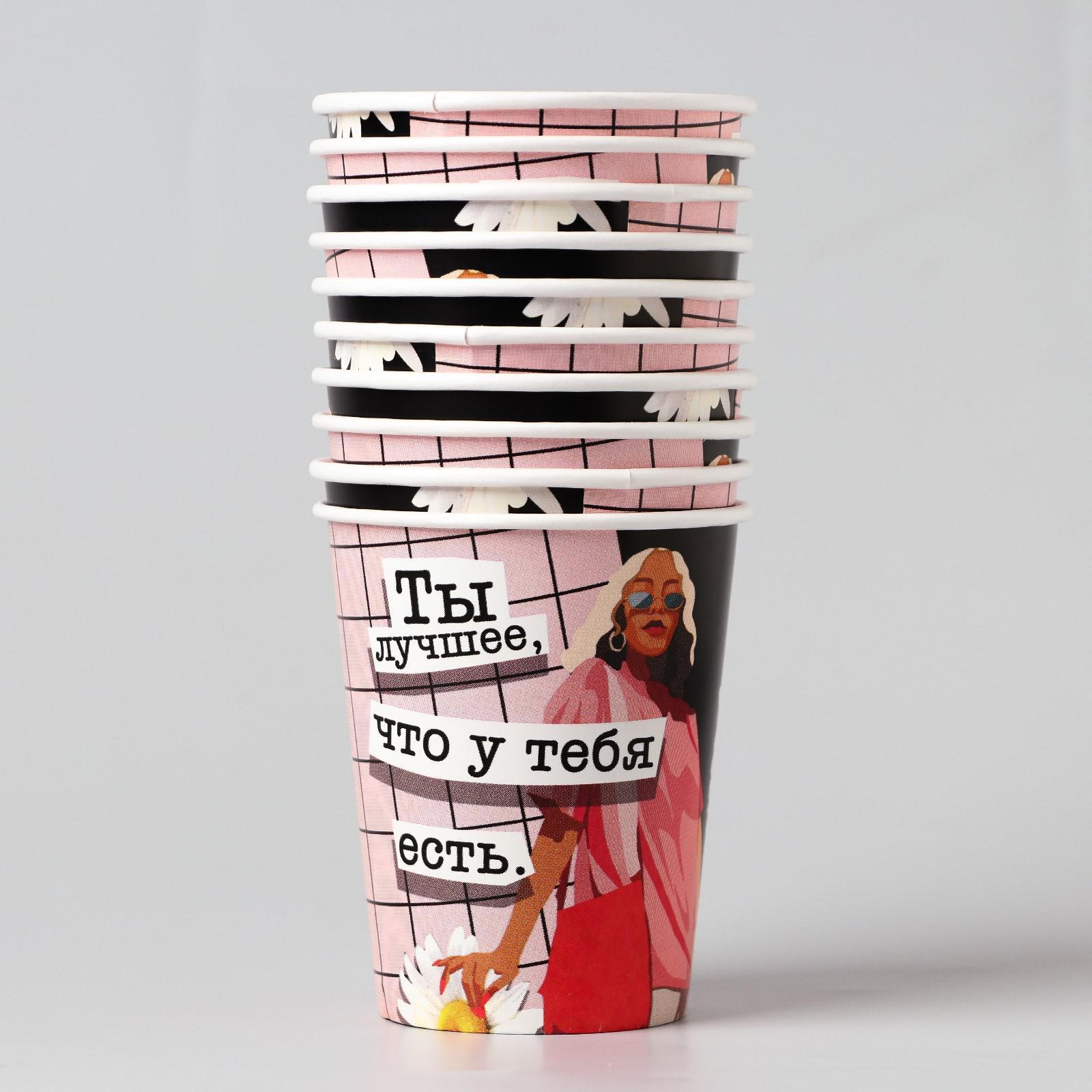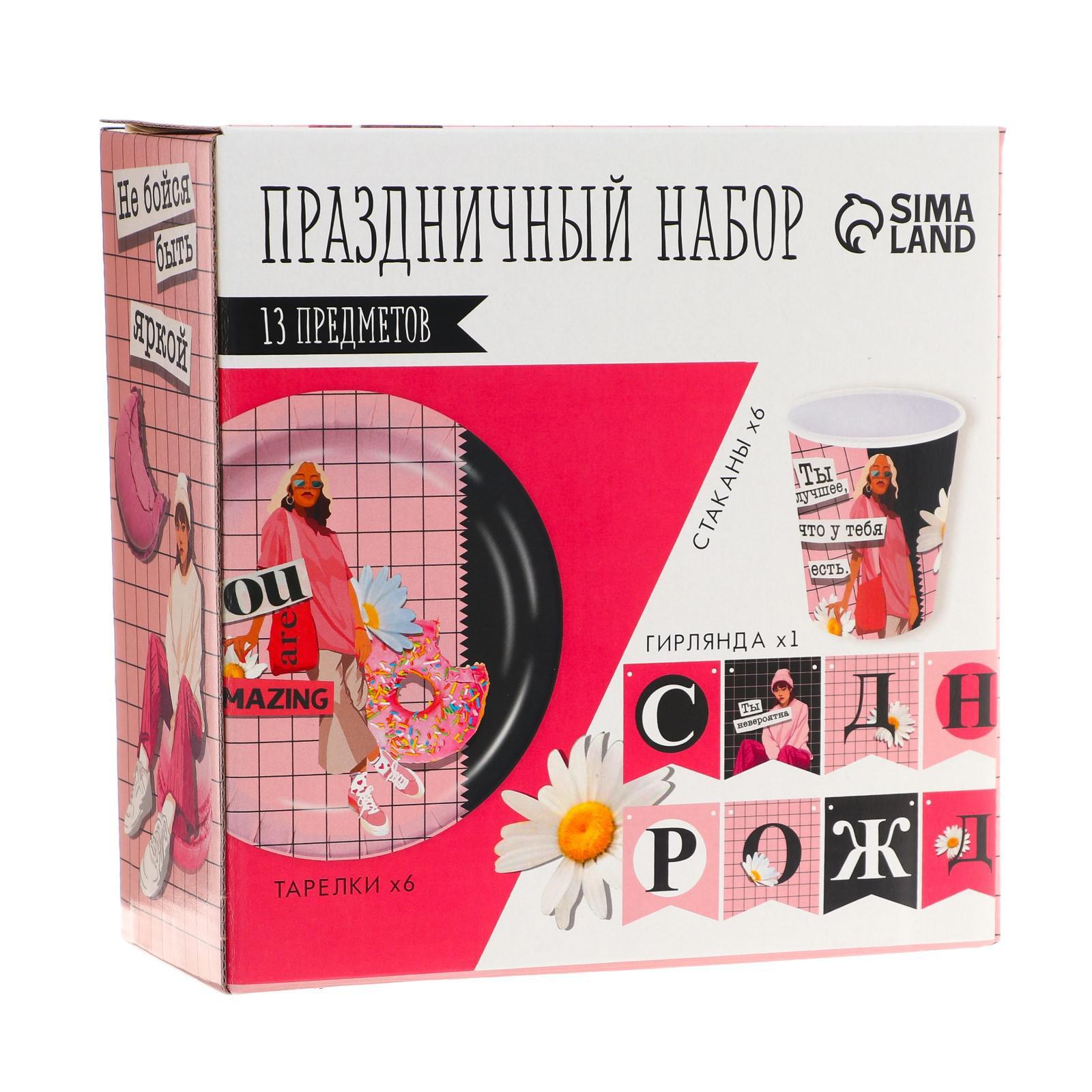 Набор бумажной посуды одноразовый ты лучшая», 6 тарелок, 6 стаканов, 1 гирлянда