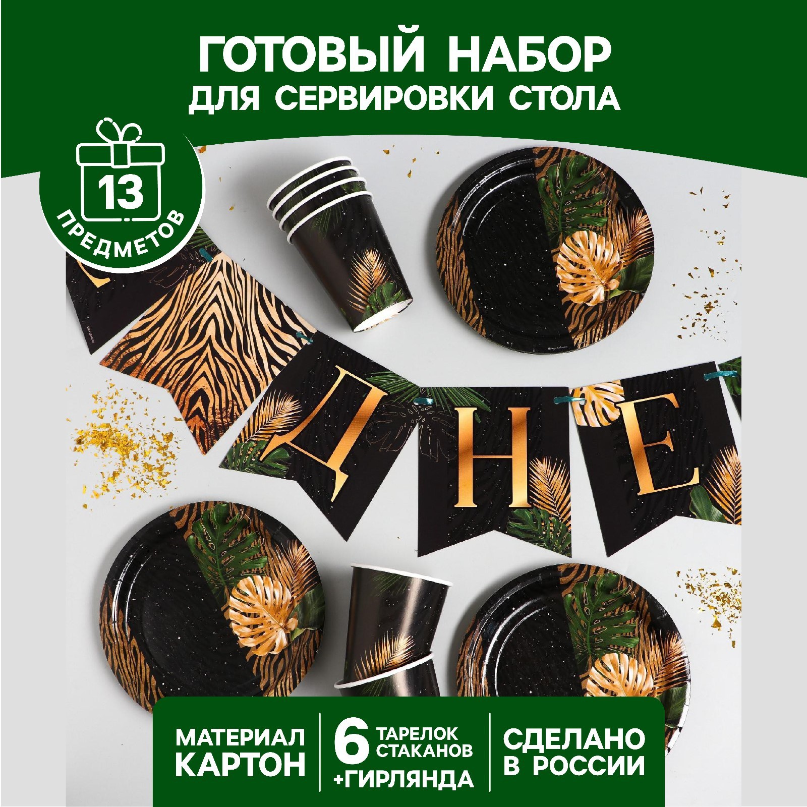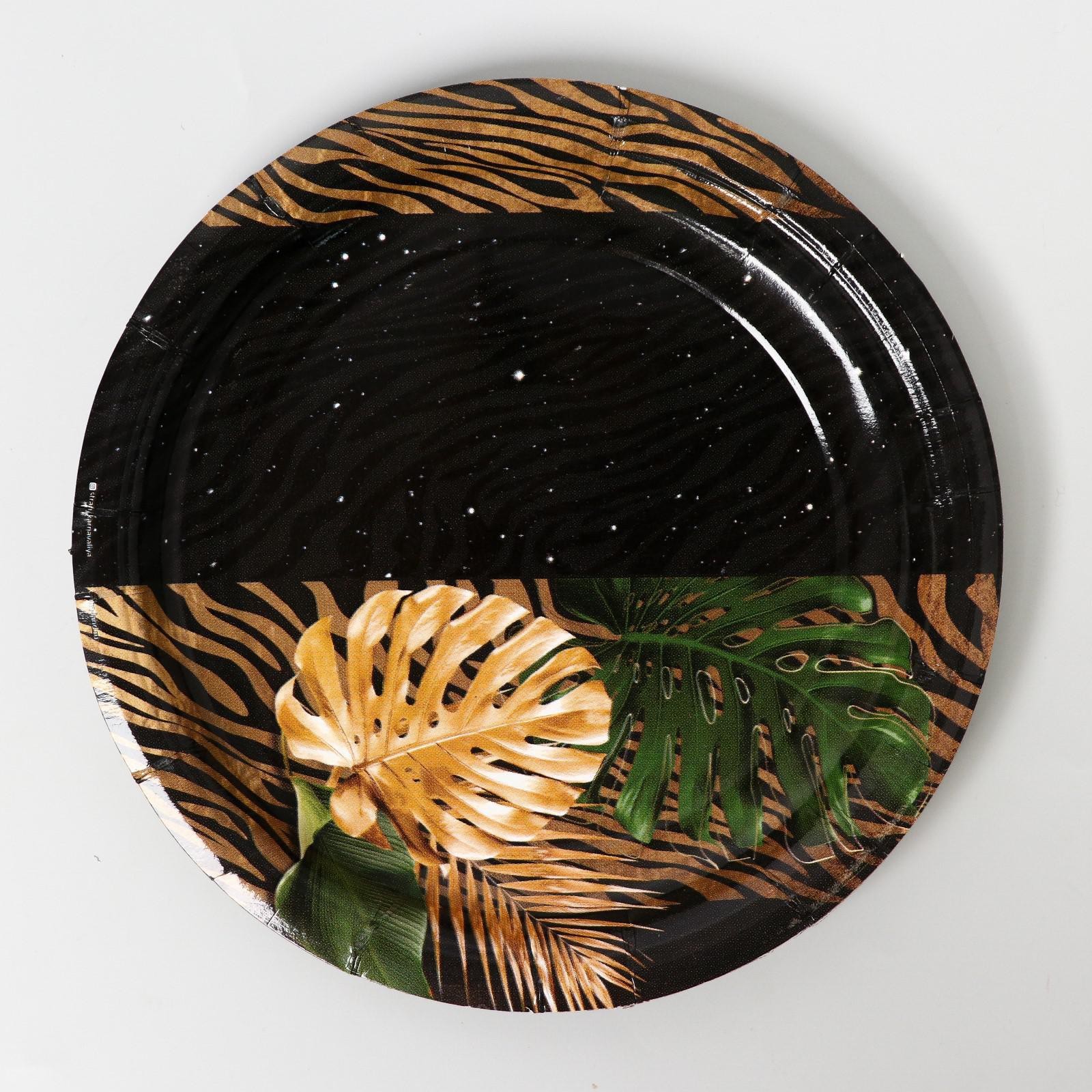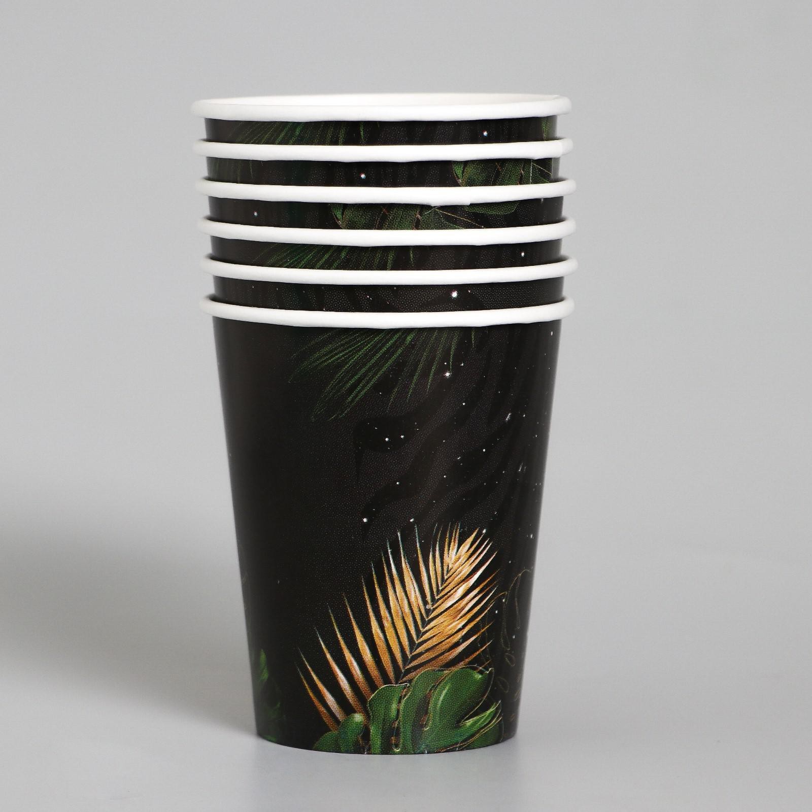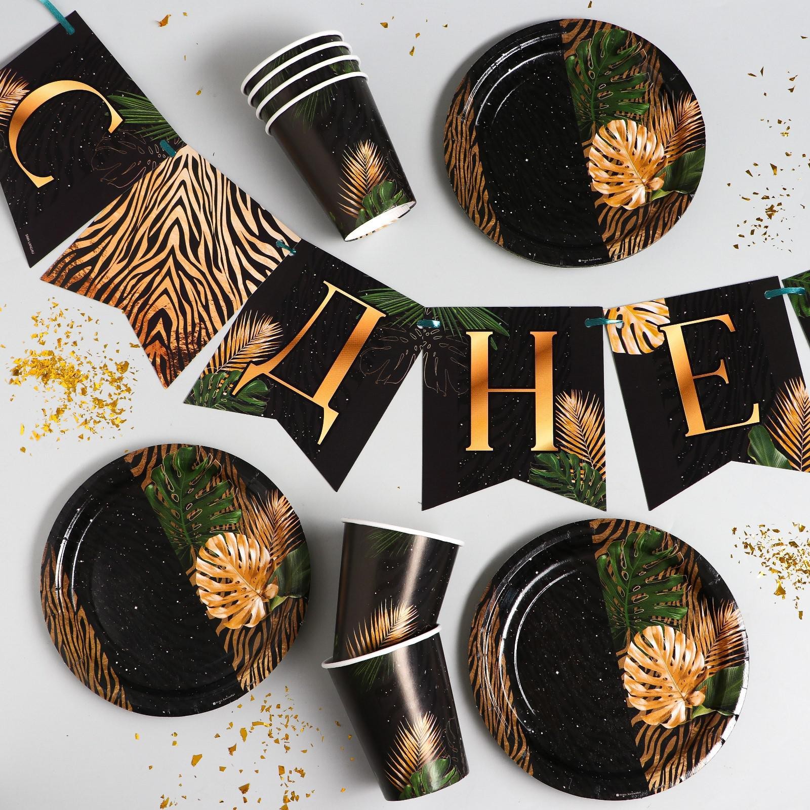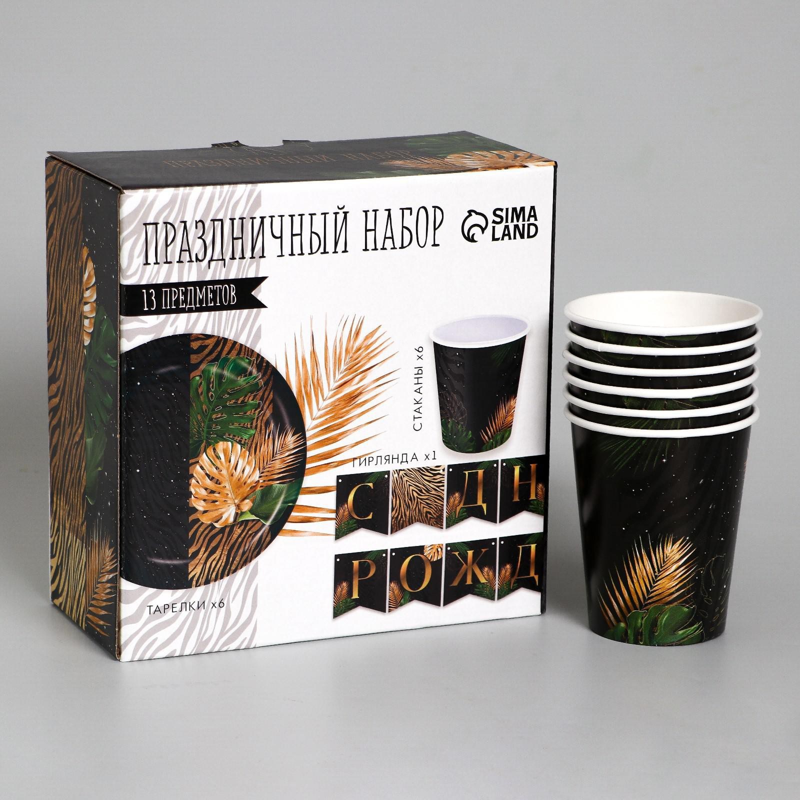 Набор бумажной посуды одноразовый с днём рождения», тропики, 6 тарелок, 6 стаканов, 1 гирлянда