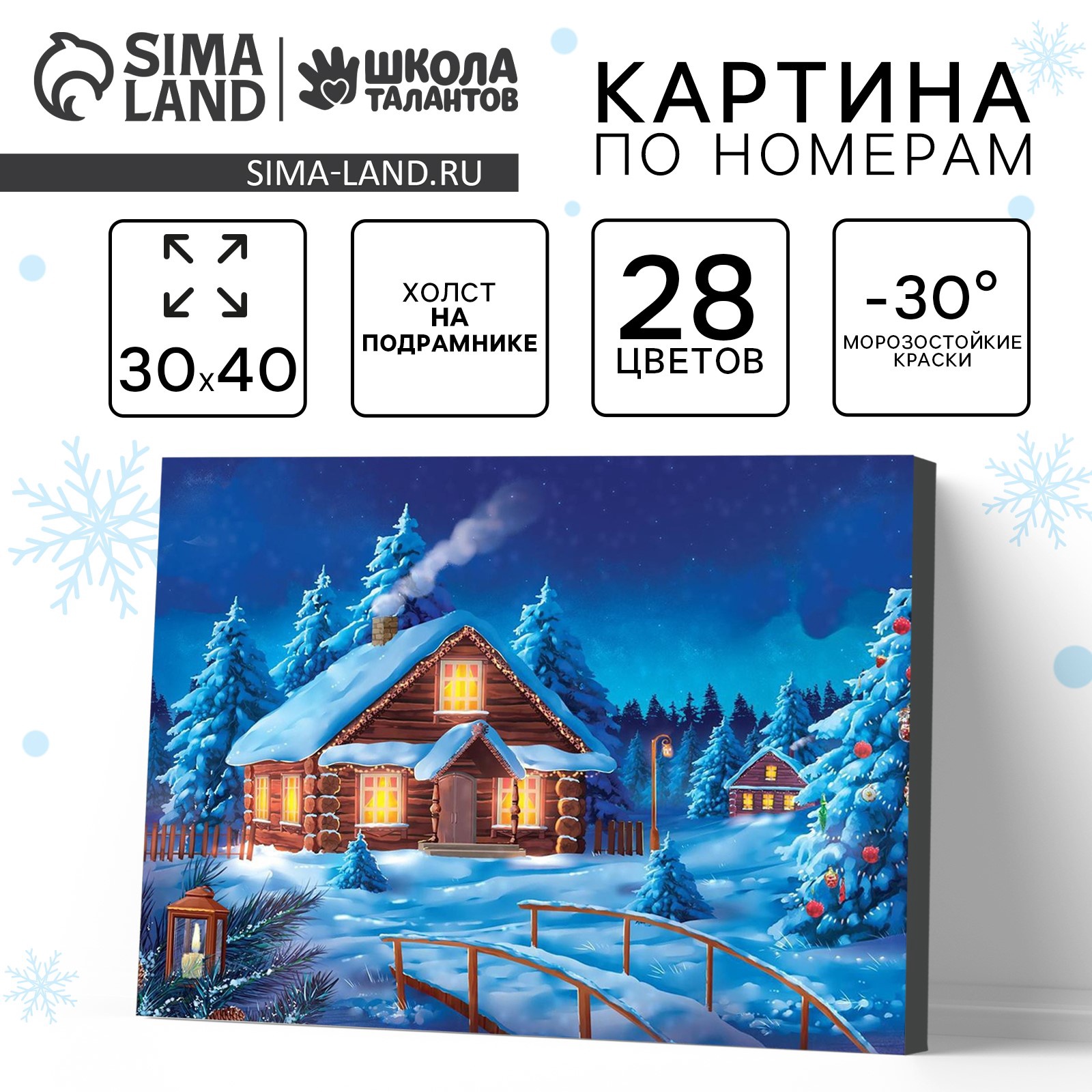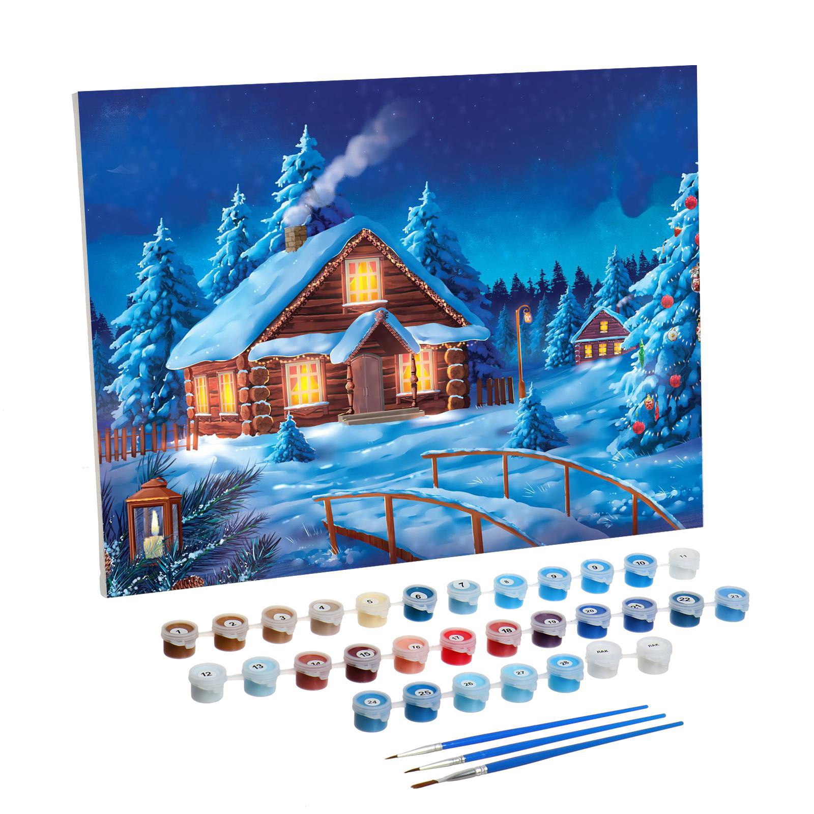 Новогодняя картина по номерам на холсте с подрамником «новый год! рождественский вечер», 30 х 40 см. Набор для рисования станет находкой для людей, которые хотят творить! Специально разработанная уникальная серия росписи по номерам станет верным помощником начинающим художникам, с помощью которой они будут создавать настоящие шедевры изобразительного искусства! Написанная своими руками картина украсит интерьер или станет прекрасным подарком для родных и близких людей. Новогодняя картина по номерам на холсте с подрамником «Новый год! Рождественский вечер», 30 х 40 см понравится и детям и взрослым. Холст разделён на множество мелких фрагментов, на каждом из которых указано число, соответствующее цвету, которым нужно закрасить данный участок. В набор входят все необходимые оттенки красок, каждый из которых пронумерован. Поначалу, когда вы только возьмёте холст в руки, будет сложно представить, что за чудесная картина получится в итоге! Но уверяем вас, результат превзойдёт все ожидания. Полотно с множеством оттенков, теней и красок будет выглядеть так, словно оно из музея. Раскрашивание по номерам покорило сердца миллионов людей по всему миру, ведь с ним каждый может создать шедевр! Присоединяйтесь к этому увлекательному занятию, творите и наслаждайтесь результатами. Для кого:Унисекс|Размер, см:30 х 40|Возраст:Для взрослых|Тематика:Зима|Символ года:Нет|Тематика праздника:Новый год|Ориентация изображения:Горизонтально|Вид:Холст под роспись|Темпер. ограничение НЕ НИЖЕ :-30|Уровень сложности:Сложный|Комплектация набора:С красками|Страна:Россия  развернуть описание ▼