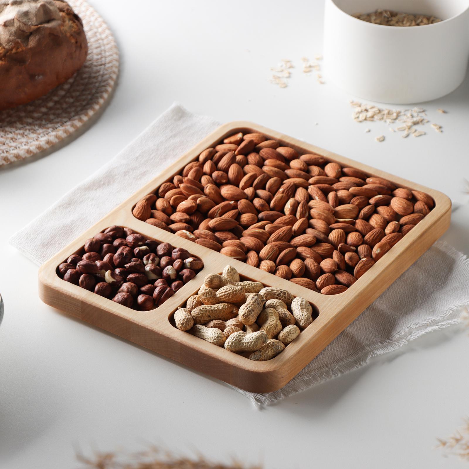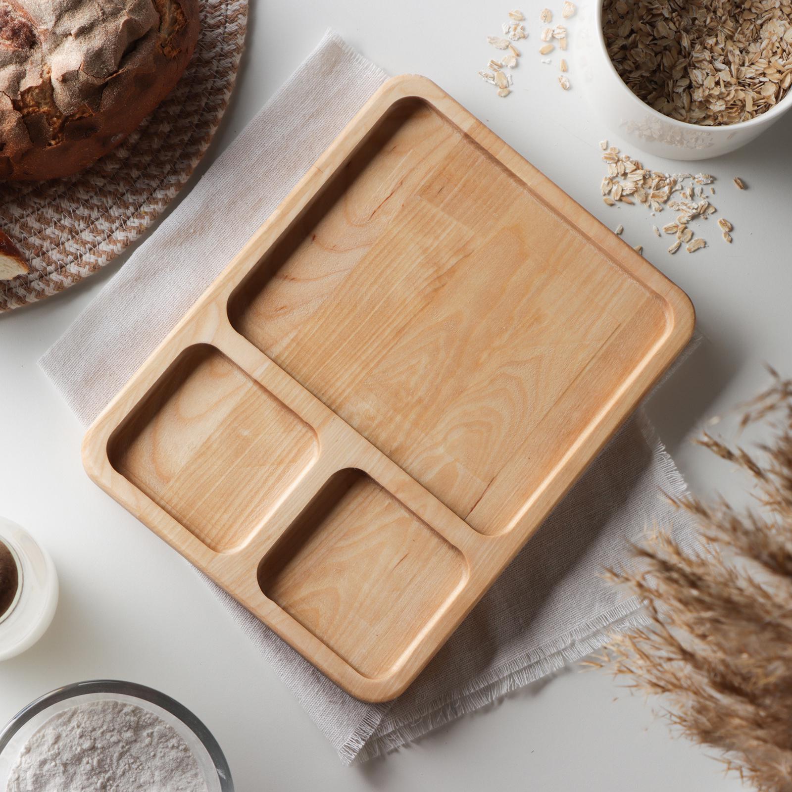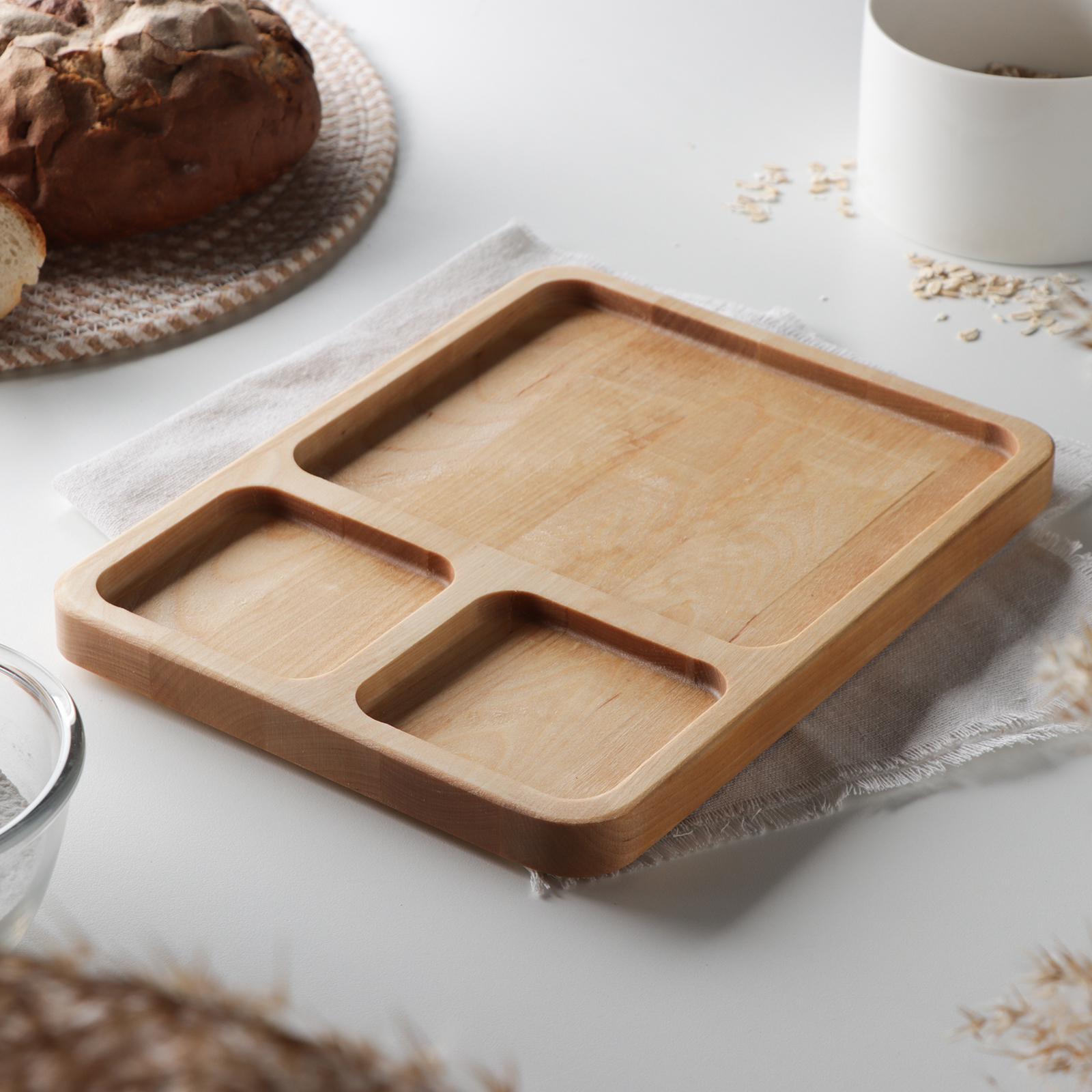 Менажница квадратная доляна, 26x20,5x2 см, 3 секции, берёза