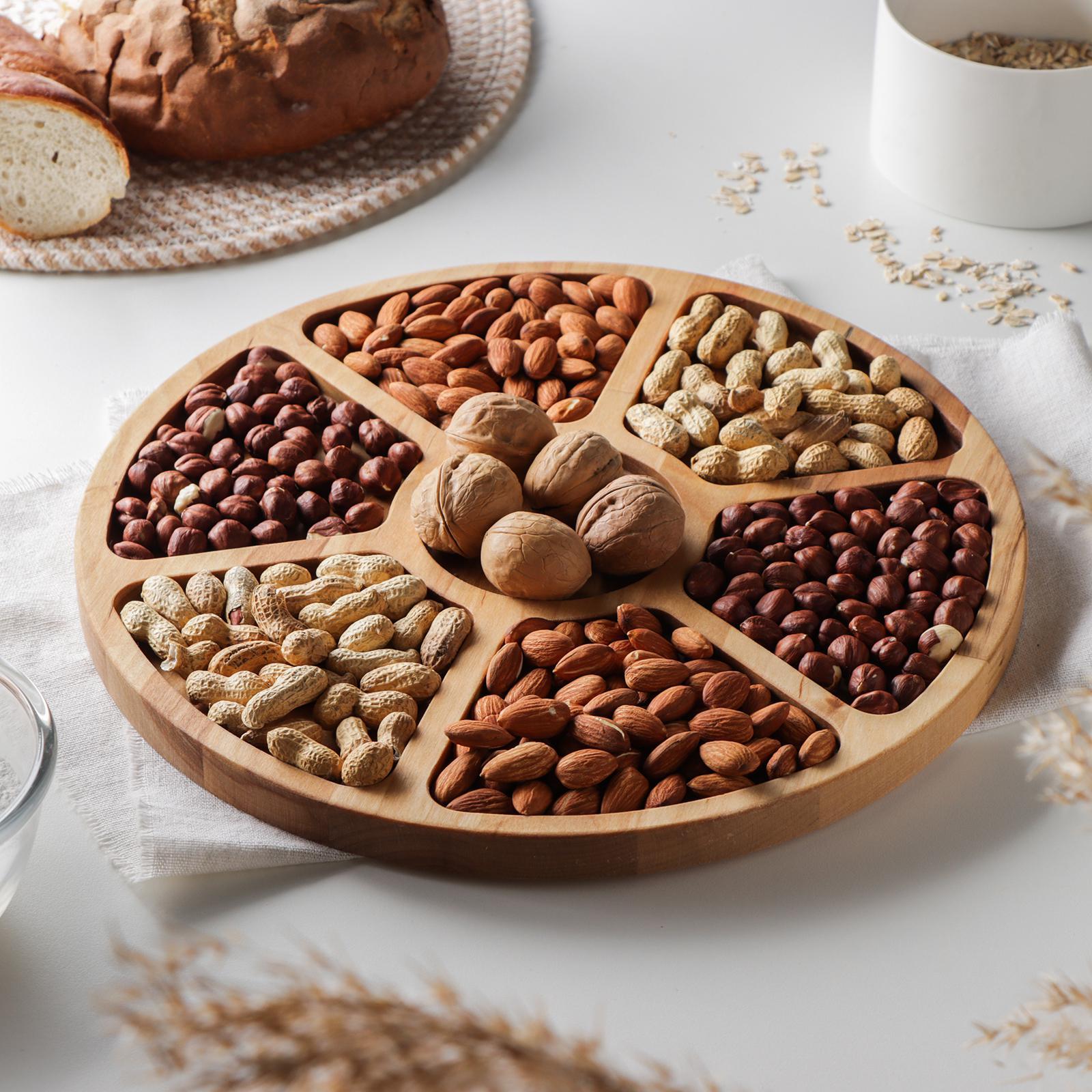 Менажница круглая доляна, D=32 см, 7 секций, берёза
