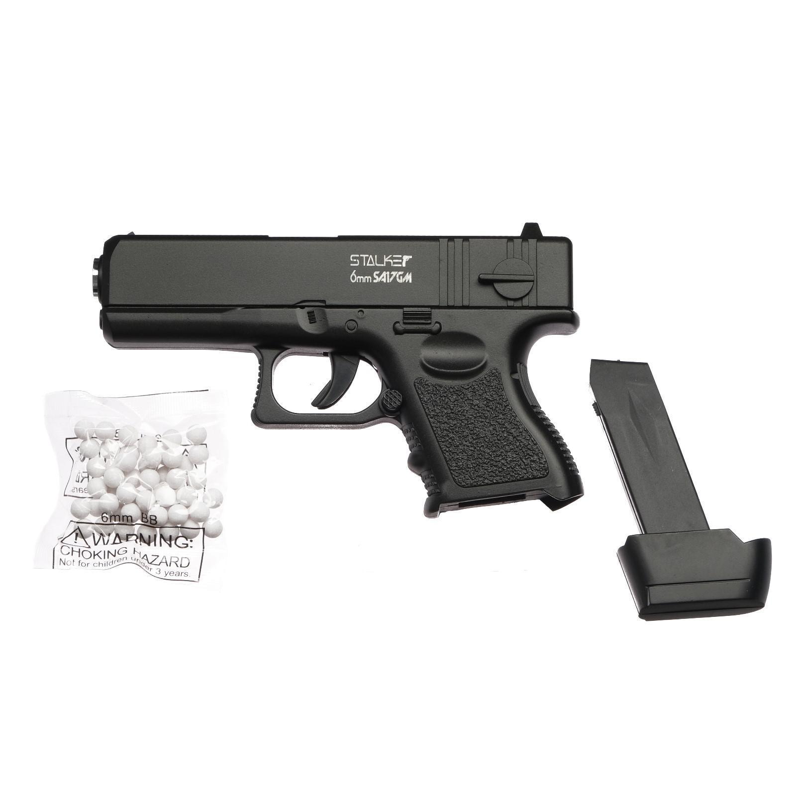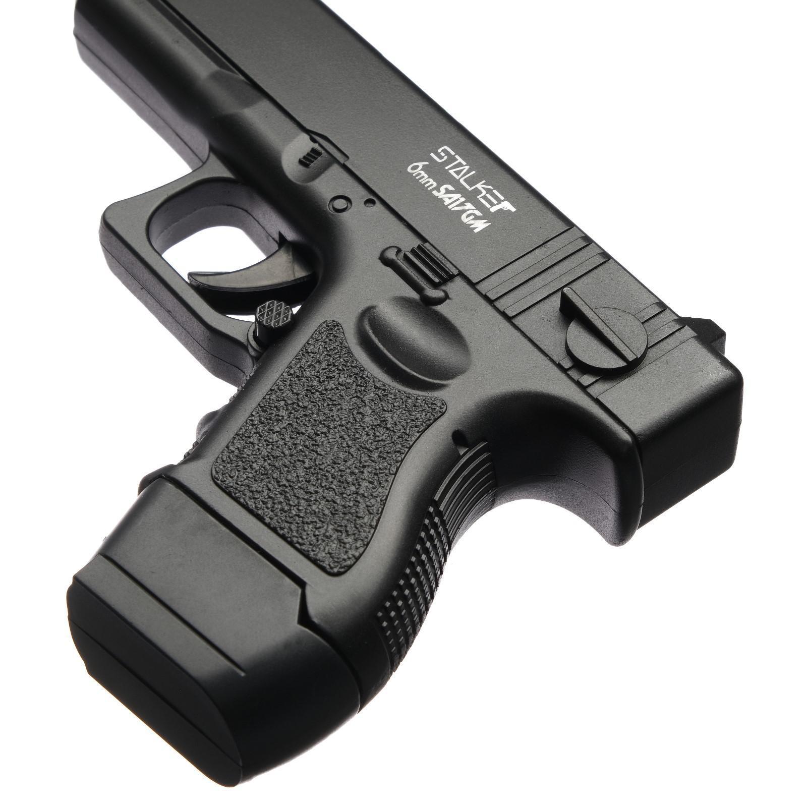 Пистолет страйкбольный "stalker" glock 17 мини, кал. 6 мм. Страйкбольный пистолет предназначен для имитации стрельбы из настоящего оружия во время игры в страйкбол. Имеет высокую точность и скорость, что делает его отличным выбором для игроков, которые хотят получить реалистичный опыт стрельбы. Пистолет по принципу действия относится к спринговому типу, стреляет при помощи пружины, пружина взводится вручную после каждого выстрела. Вместимость магазина: 6 Скорость полёта пули, м/с: 80 Вид снаряда: Шары Калибр: 6 мм Тип работы: Спринговое (пружинное) Режим стрельбы: Одиночный Источник энергии: Пружина, ручное взведение Планка Weaver/Picatinny: Нет Боевой прототип: Glock 17 (Австрия)  развернуть описание ▼
