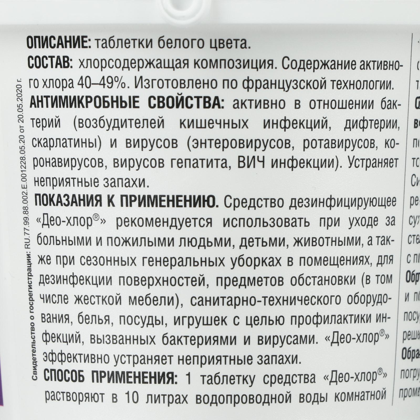 Дезинфицирующее средство «део-хлор санитека», 90 таблеток, 3,4 г