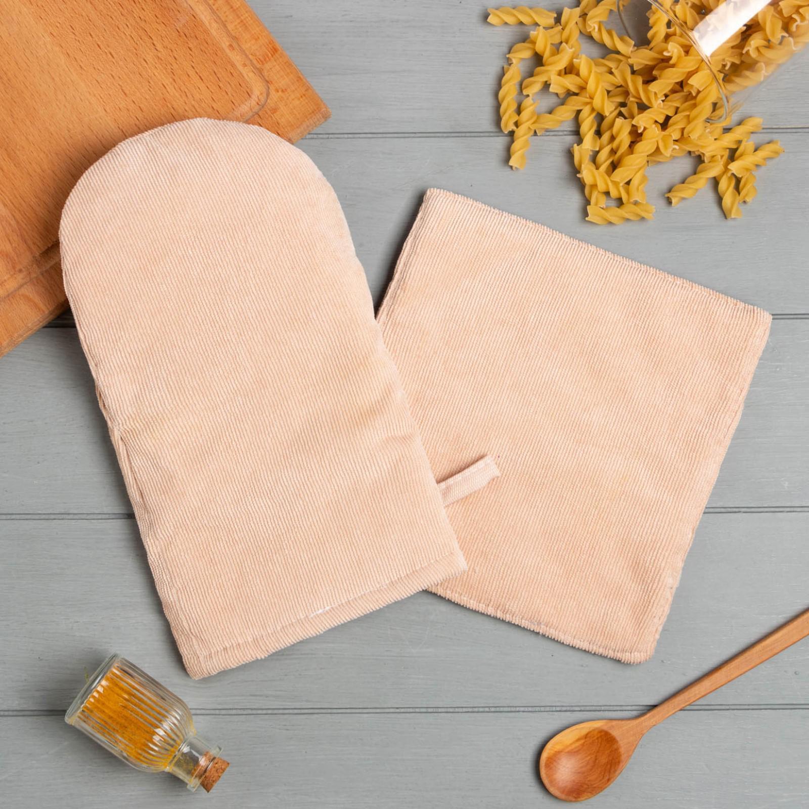 Кухонный набор 2 предмета этель «классика» цвет бежевый, прихватка 19*19 см, варежка 27*14 см