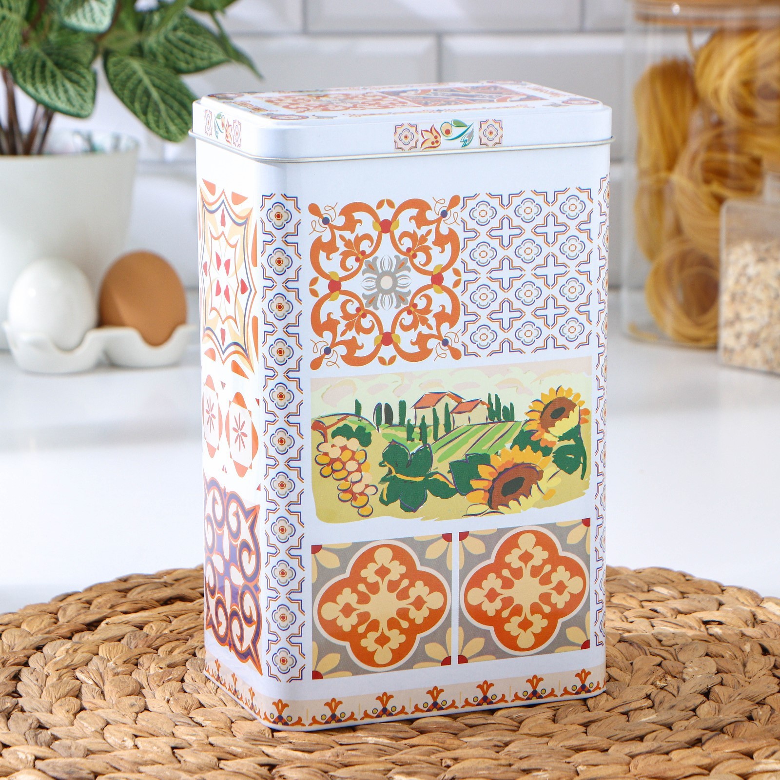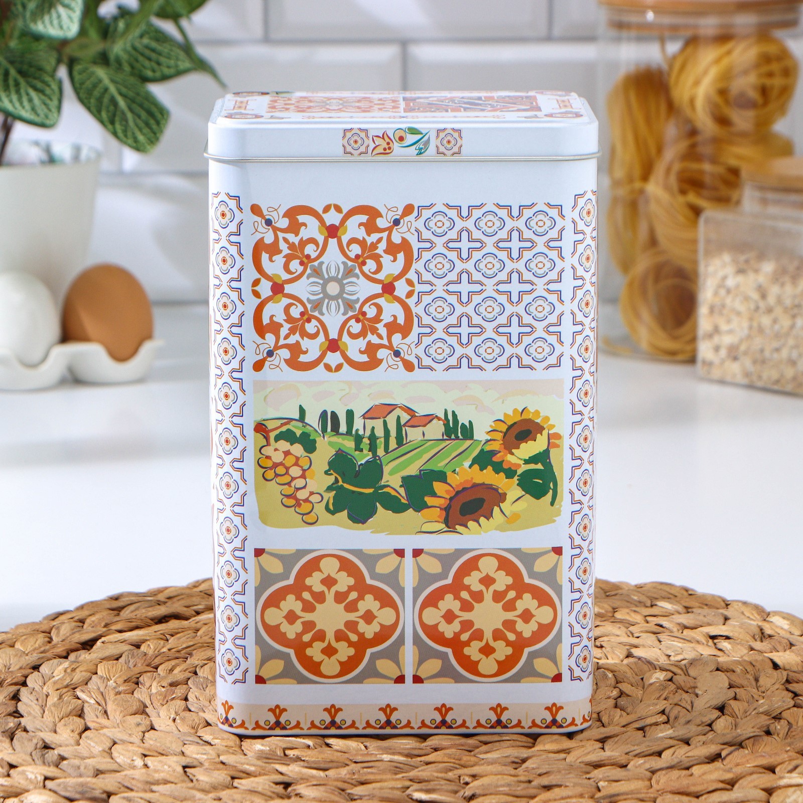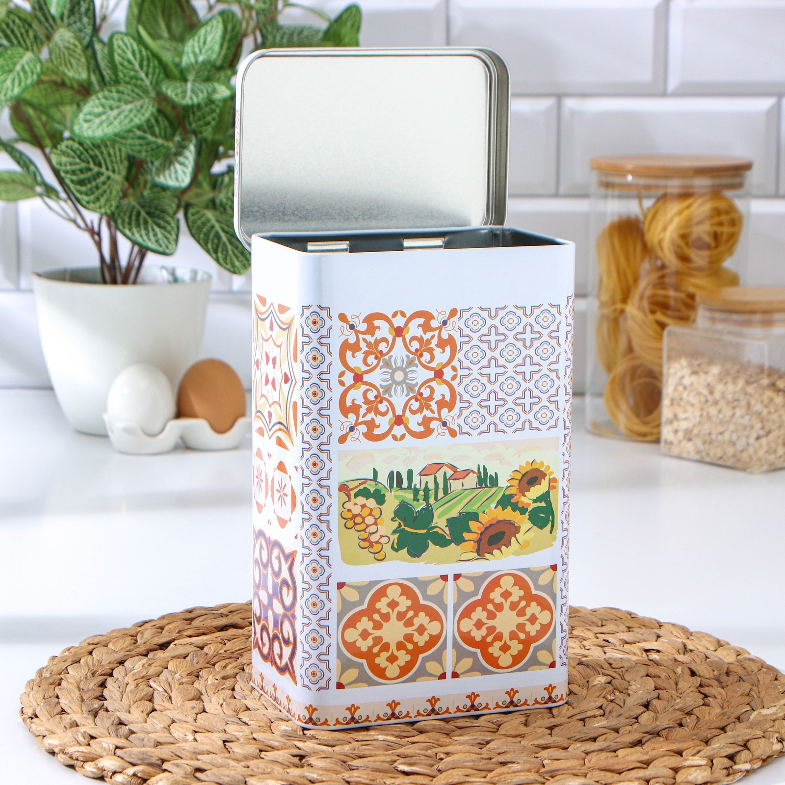 Банка с крышкой для сыпучих продуктов из жести «итальянский декор», 2,7 л, D=9,5 см, H= 21,5 см, рисунок микс