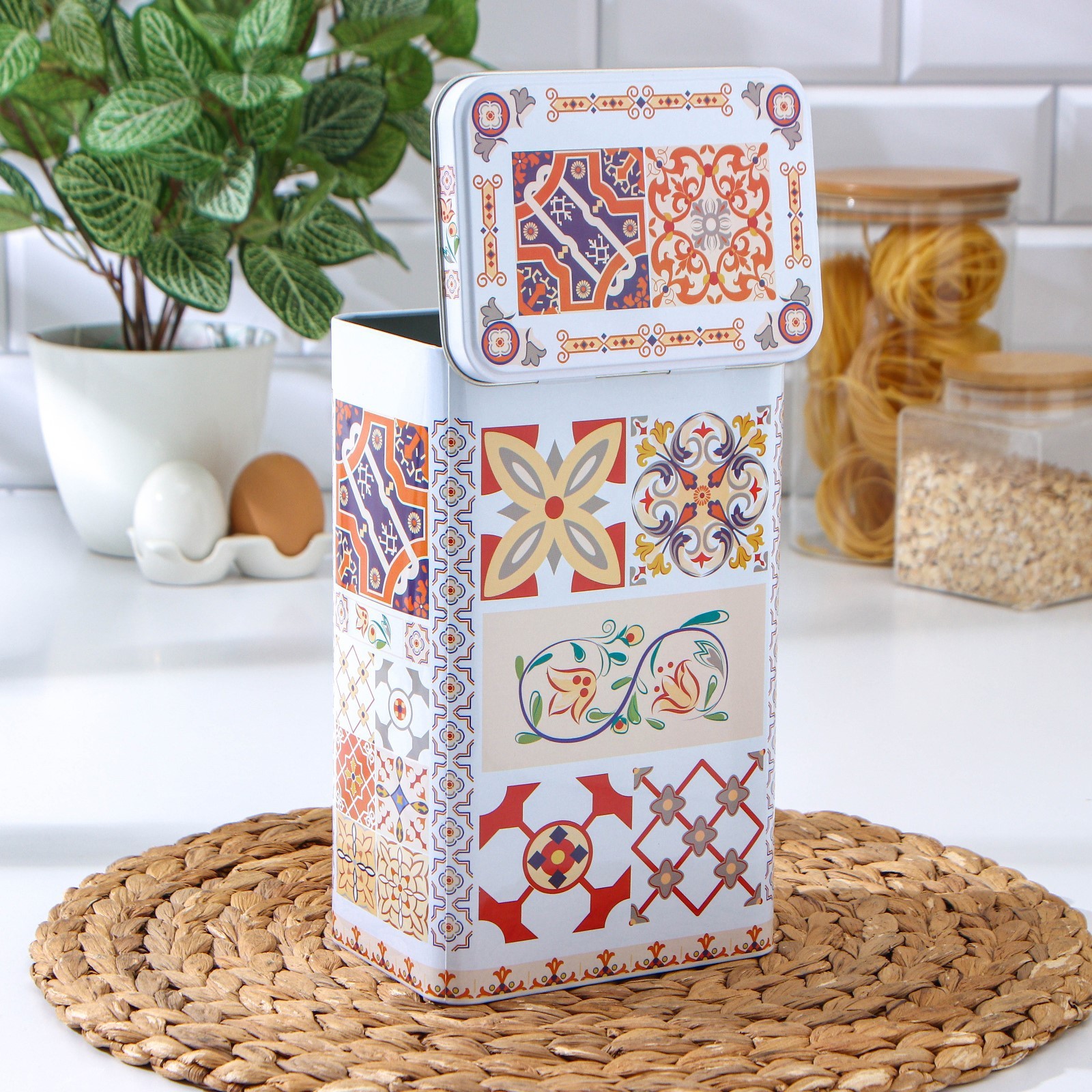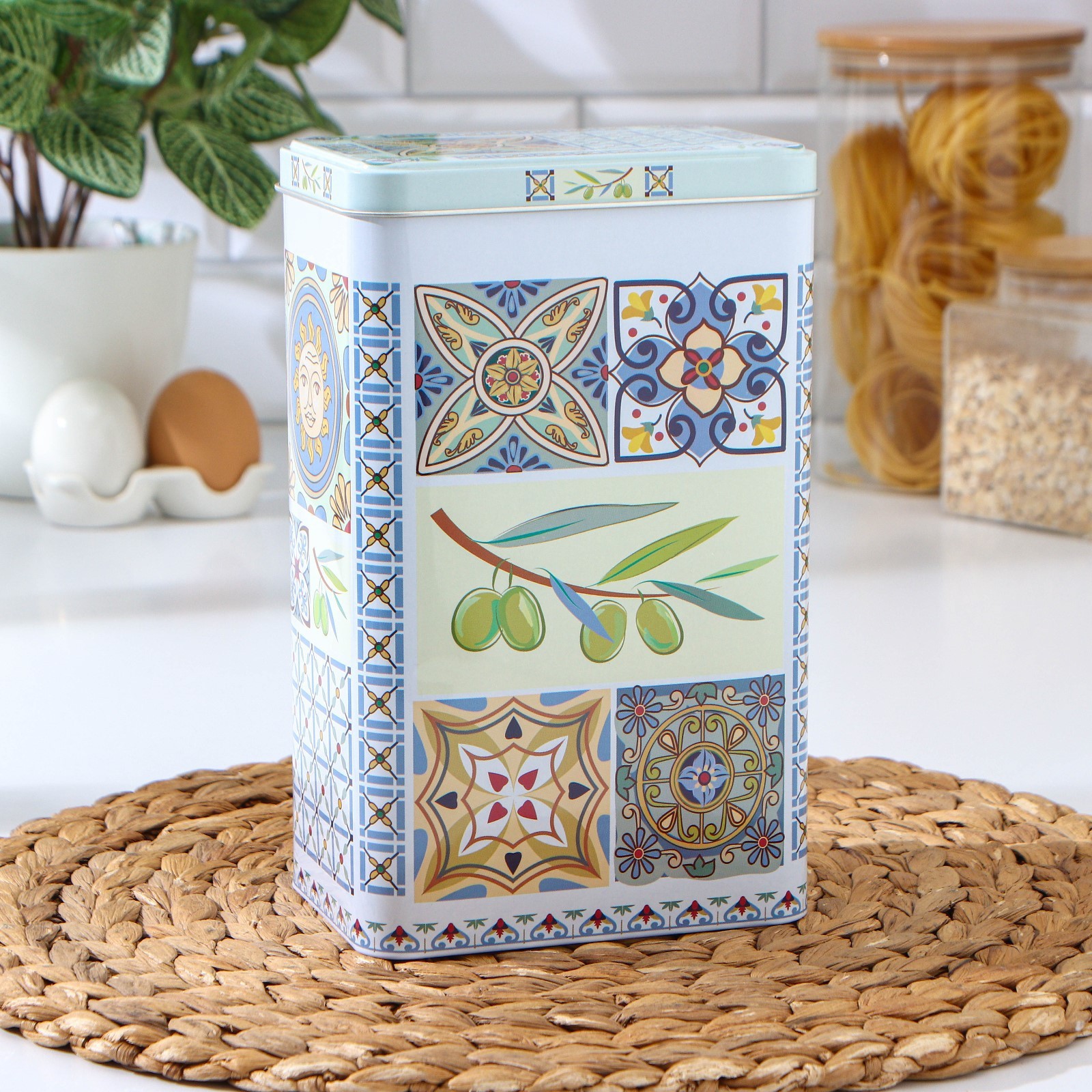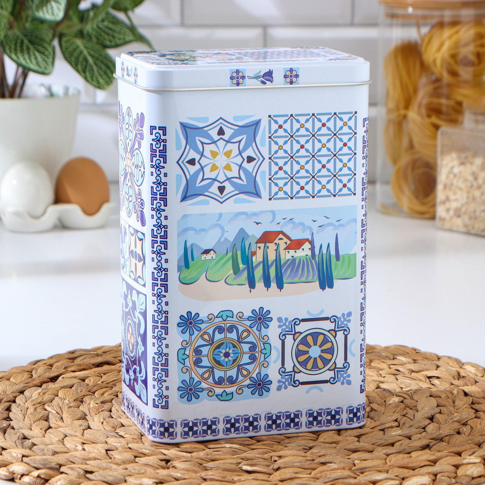 Банка с крышкой для сыпучих продуктов из жести «итальянский декор», 2,7 л, D=9,5 см, H= 21,5 см, рисунок микс