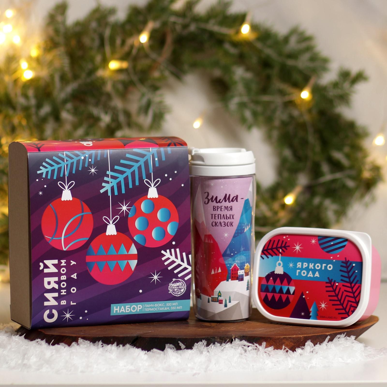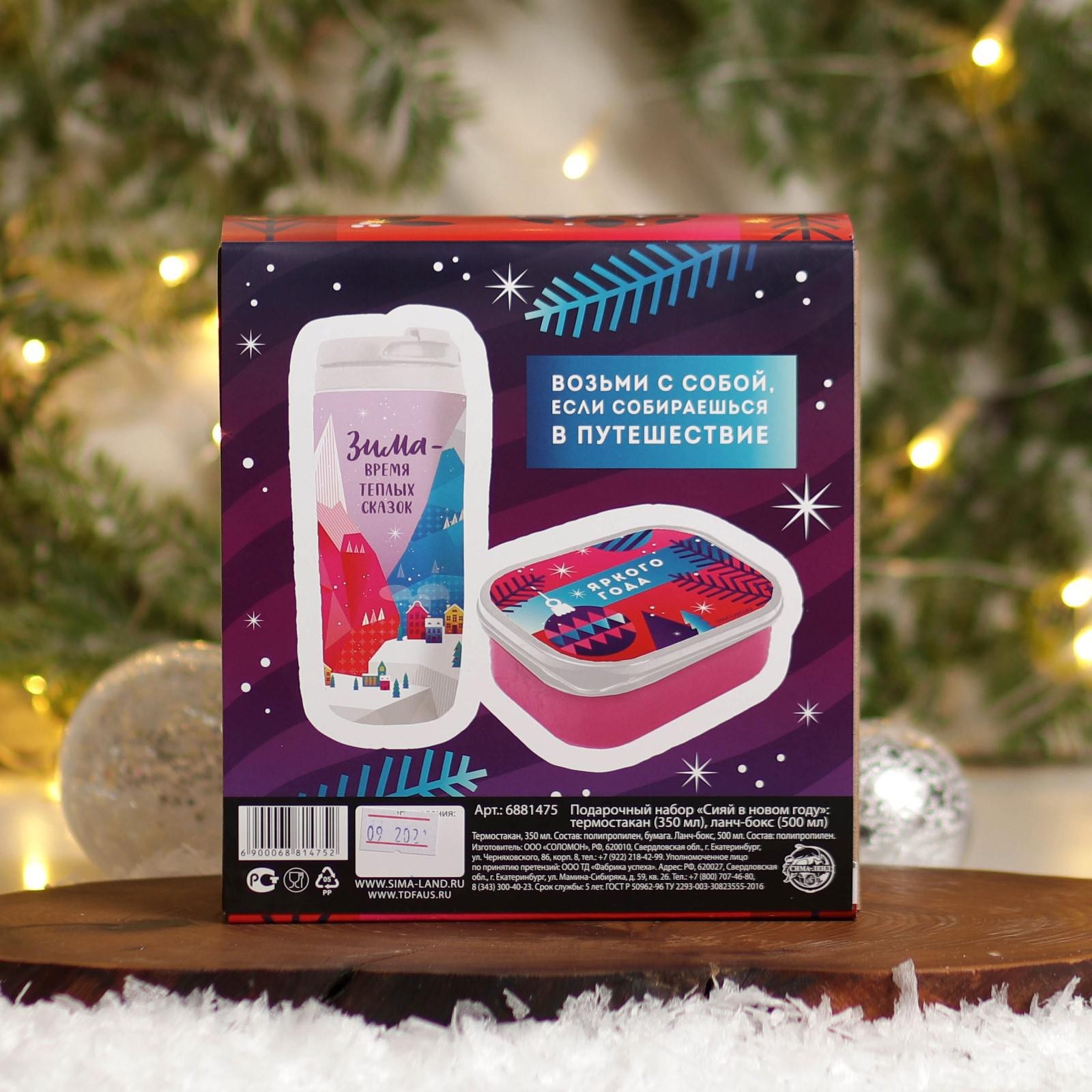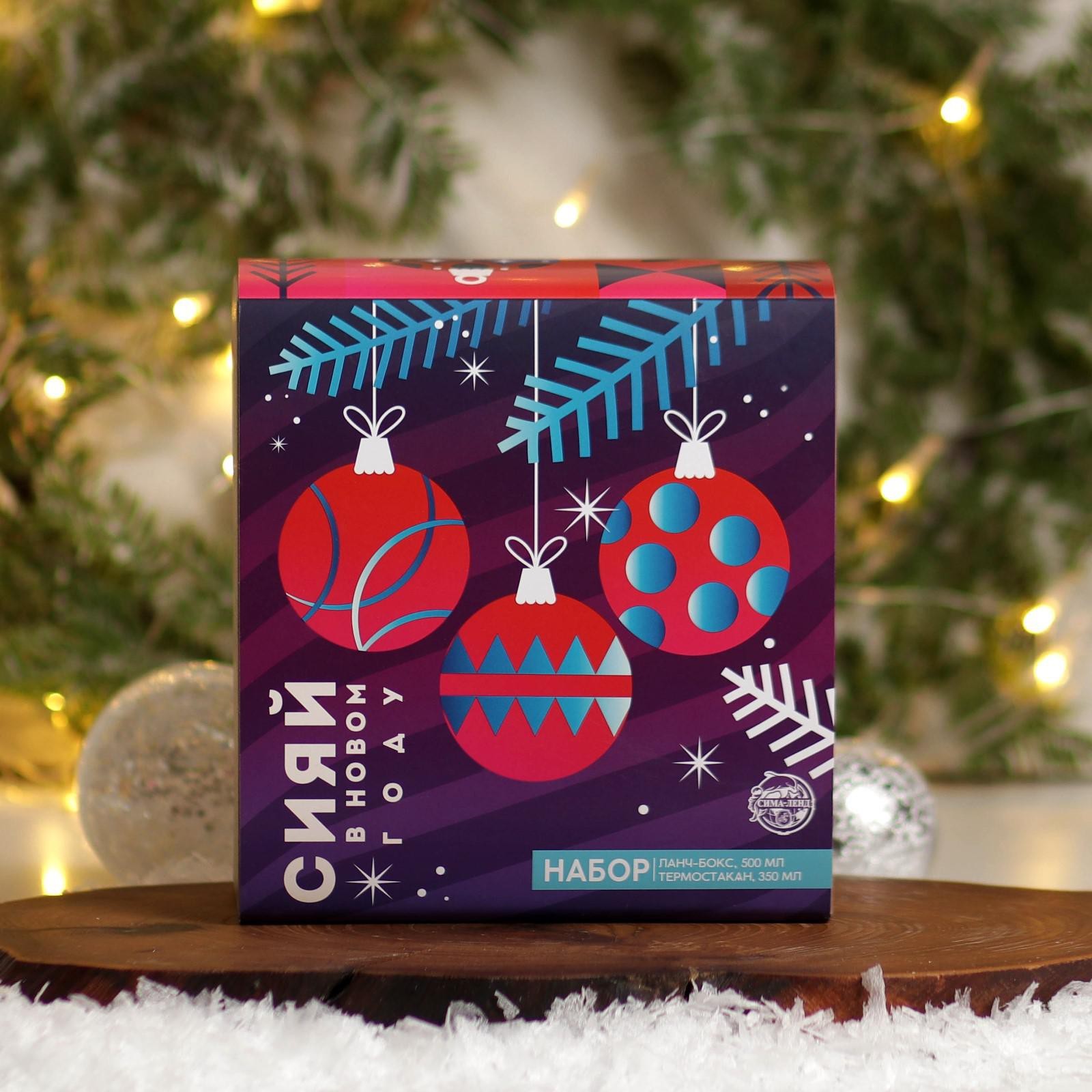 Подарочный набор «сияй в новом году»: термостакан 350 мл., ланч-бокс 500 мл