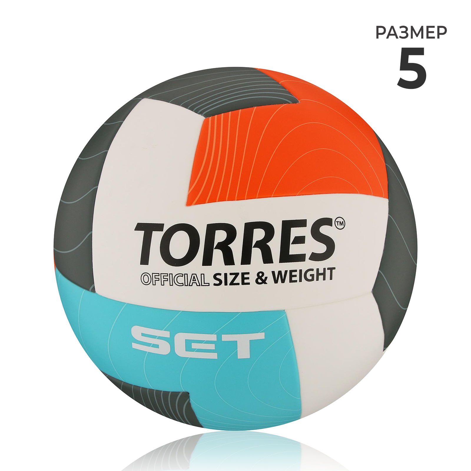 Волейбольный мяч Torres Set, V32045, клееный, 12 панелей, р. 5, Tpu, бутиловая камера