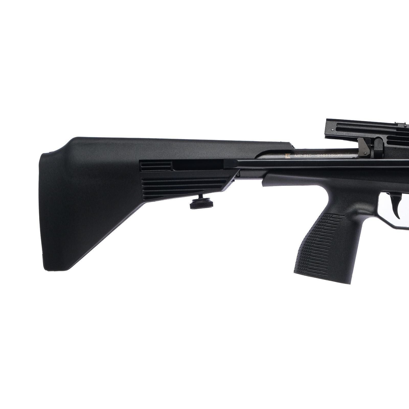 Винтовка пневматическая "мр-61с" кал. 4.5 мм, 3 дж, ложе - пластик, до 110 м/с. МР-61С – это 5-зарядная версия пневматической винтовки MP-60, подходящая как новичкам, которые обучаются стрельбе, так и более опытным пользователям для любительской стрельбы. Особенности: Высокое качество, универсальность конструкции делают ее идеальным оружием для спортивной и любительской стрельбы. Возможна установка оптического или коллиматорного прицелов, регулировка длины приклада. Схема с неподвижным стволом и взведением боевой пружины боковым рычагом и подача пули в ствол досылателем затвора обеспечивают повышенную кучность стрельбы. Конструкция блокирующего устройства механизма взведения обеспечивает безопасность в обращении и невозможность выстрела при незафиксированном рычаге взведения. Вместимость магазина: 5 Скорость полёта пули, м/с: 110 Вид снаряда: Пули Калибр: 4.5 мм Температурное ограничение: Нет Тип работы: Пружинно-поршневой Режим стрельбы: Полуавтоматический Источник энергии: Резервуар высокого давления Источник энергии: Пружина, взведение «переламыванием» ствола Крепление для оптического прицела: Да Тип крепления прицела: Ласточкин хвост Подствольная планка: Нет  развернуть описание ▼
