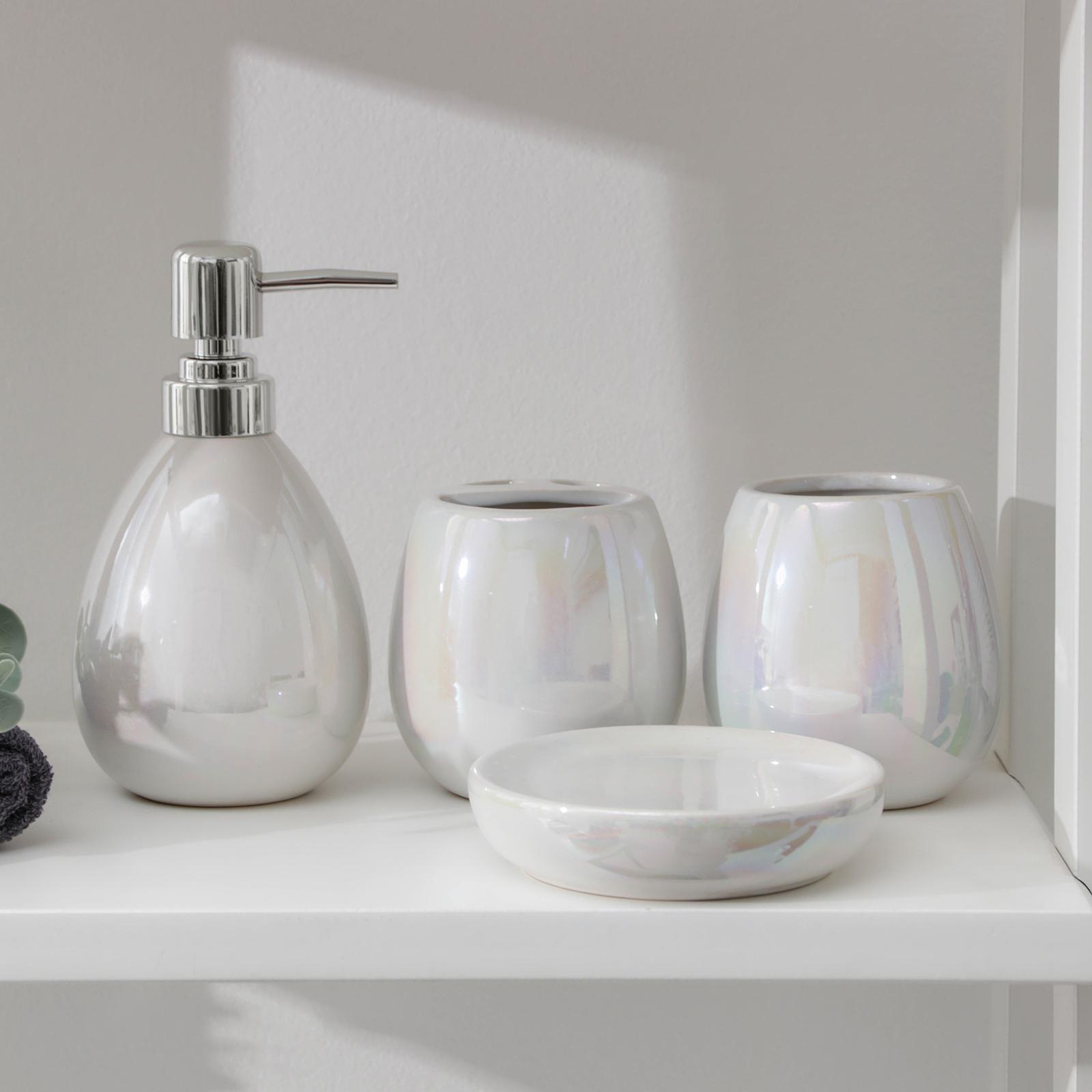Набор аксессуаров для ванной комнаты Pearl, 4 предмета (мыльница, дозатор для мыла 400 мл, 2 стакана), цвет серый