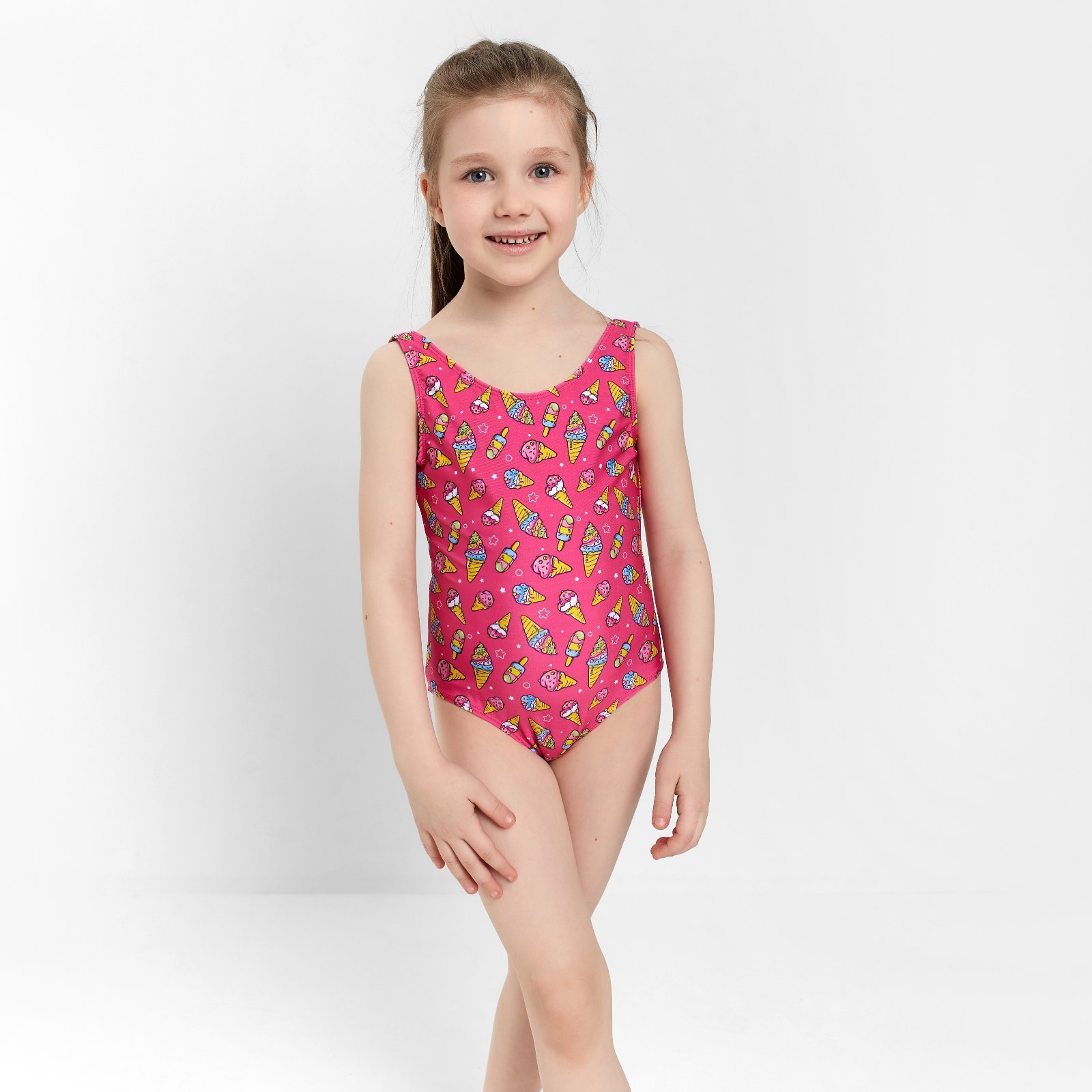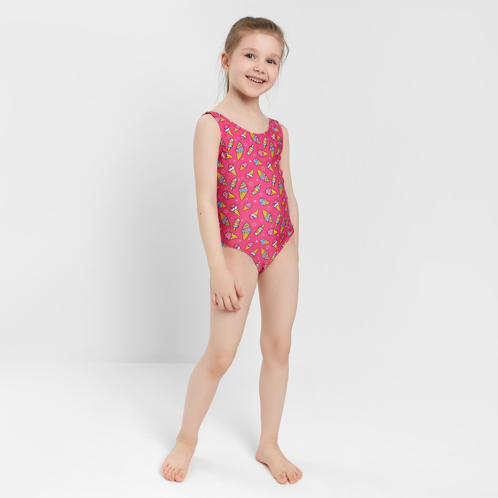 Купальник слитный, цвет розовый/мороженое, рост 128 см