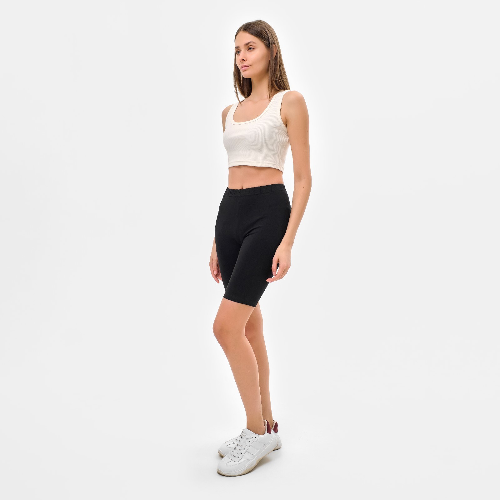 Велосипедки женские minaku цвет чёрный, р-р 46. Цвет: Чёрный Для кого: Для женщины Назначение: Спортивная Назначение: Повседневная Ткань: Кулирка пенье Размер: 46 Рост, см: 170 - 175 Ширина низа брючин, см: 21 Длина по внутреннему шву, см: 27 Рост модели на фото, см: 177 Сезон: Лето Вид застёжки: Резинка Тематика: Однотонная Декоративные элементы: Без элементов Крой брючин: Зауженный Покрой: Облегающий Тип карманов: Без карманов Рекомендации по уходу: Деликатная стирка при 30 °С Рекомендации по уходу: Не отбеливать Тип посадки: Высокая Состав ткани: Полиэстер Вид спорта: Пилатес Вид спорта: Йога Вид спорта: Фитнес Обхват талии, см: 70 - 74 Температурное ограничение: Нет Вид: Велосипедки Коллекция: MINAKU: Casual Collection Фактура материала: Гладкий Обхват бёдер, см: 97 - 101 Параметры модели на фото (ОГ-ОТ-ОБ): 80-62-89 Сезон: Лето Честный знак: Да Размер одежды на модели: 42  развернуть описание ▼