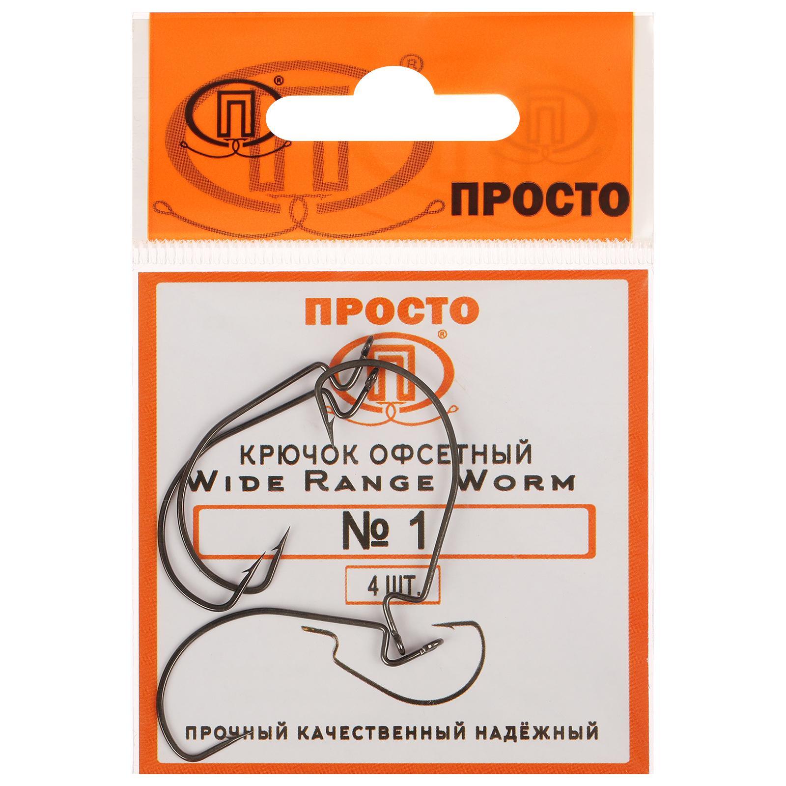 Крючки офсетные Wide Range Worm, № 1, 4 шт.