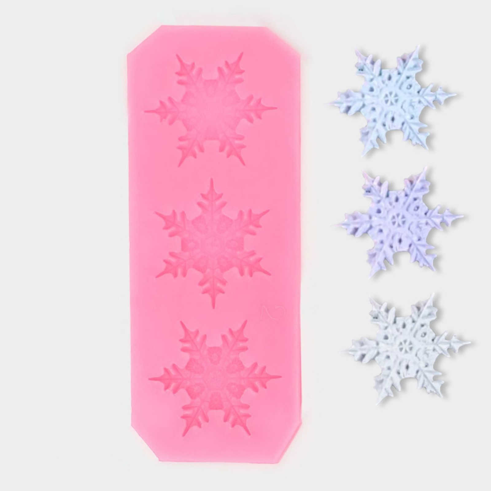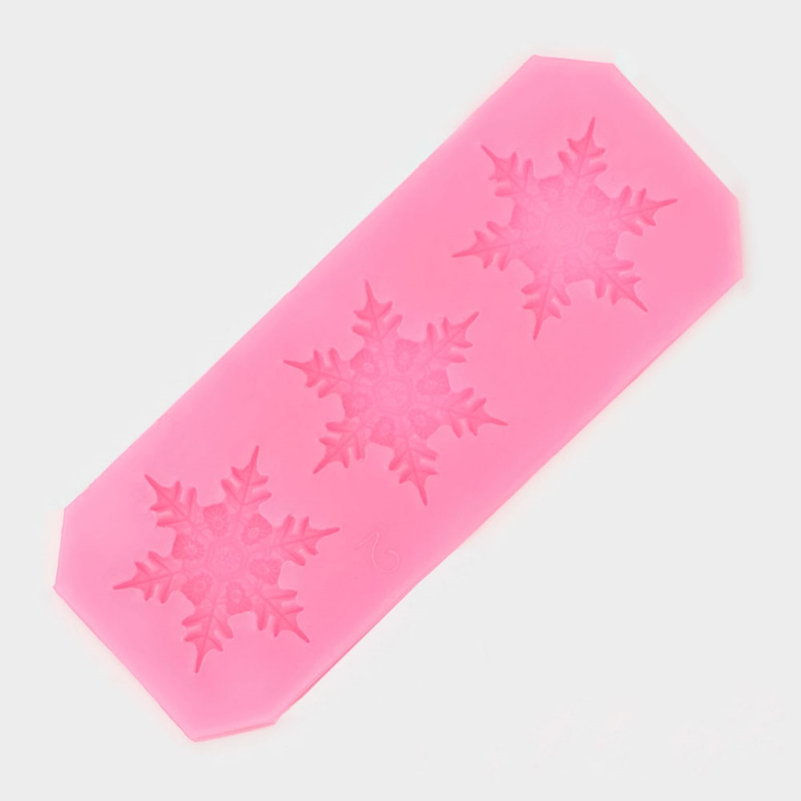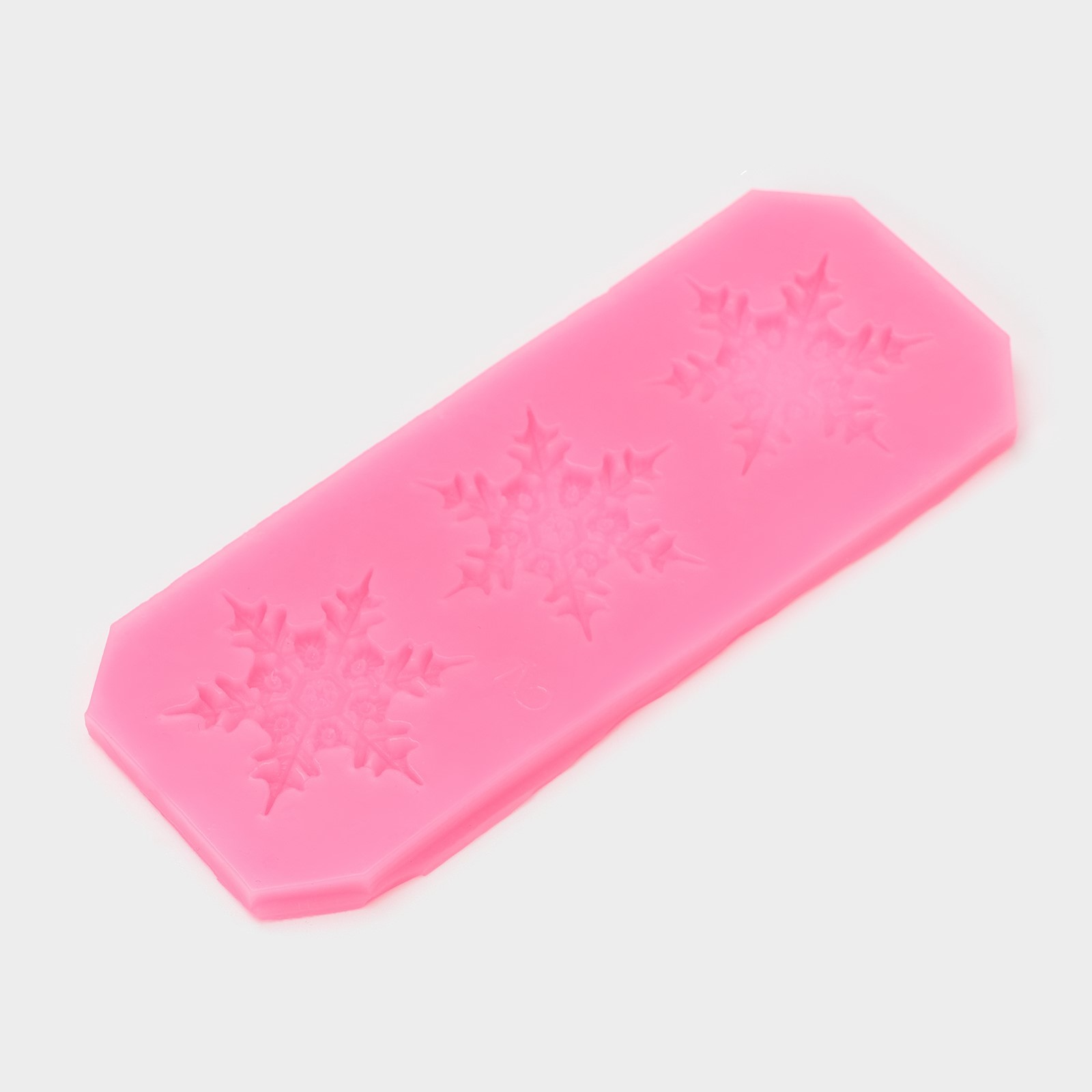 Молд «3 снежинки», силикон, 13x5x0,5 см, цвет розовый