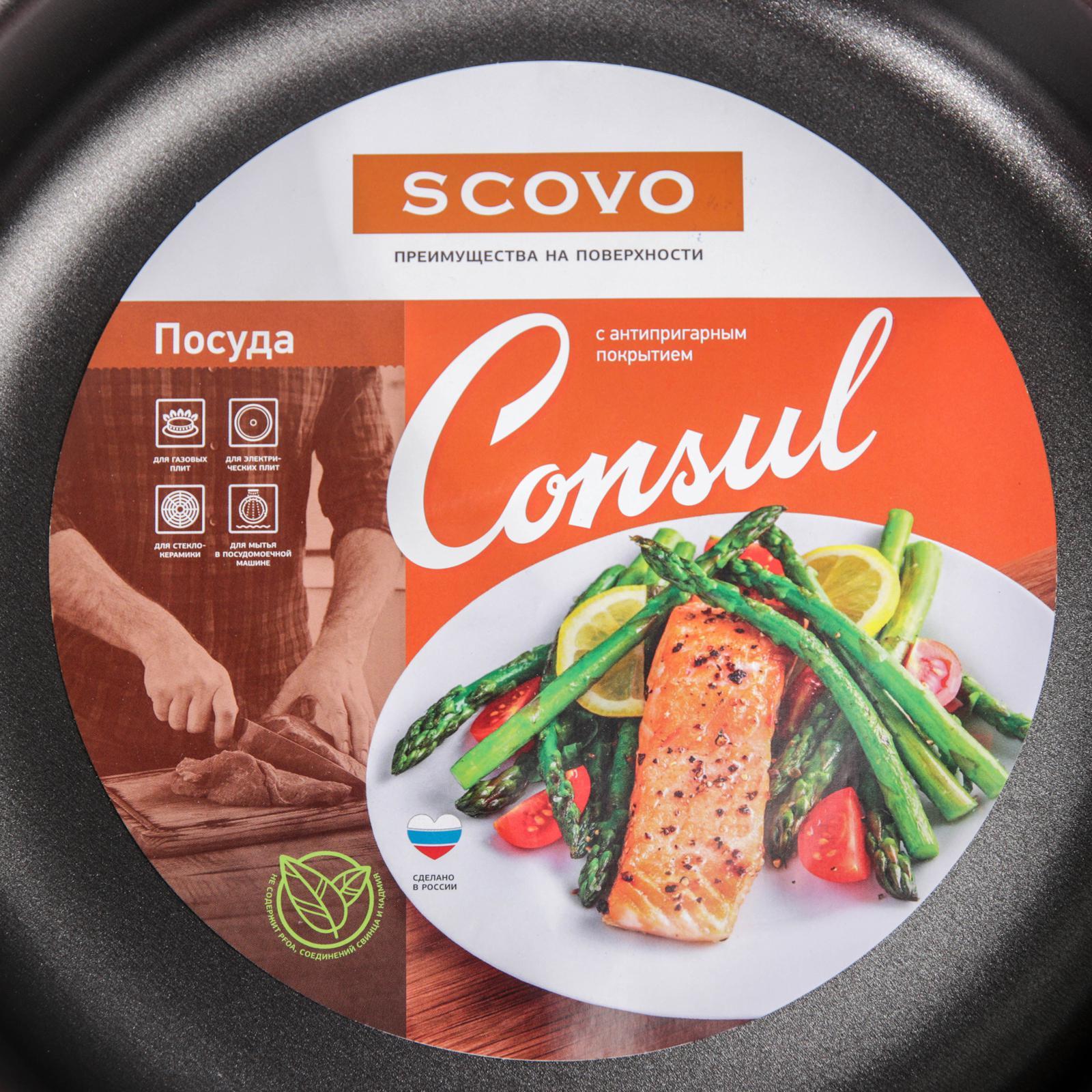 Сотейник Consul, 3,7 л, D=26 см, стеклянная крышка, пластиковая ручка, антипригарное покрытие, цвет чёрный