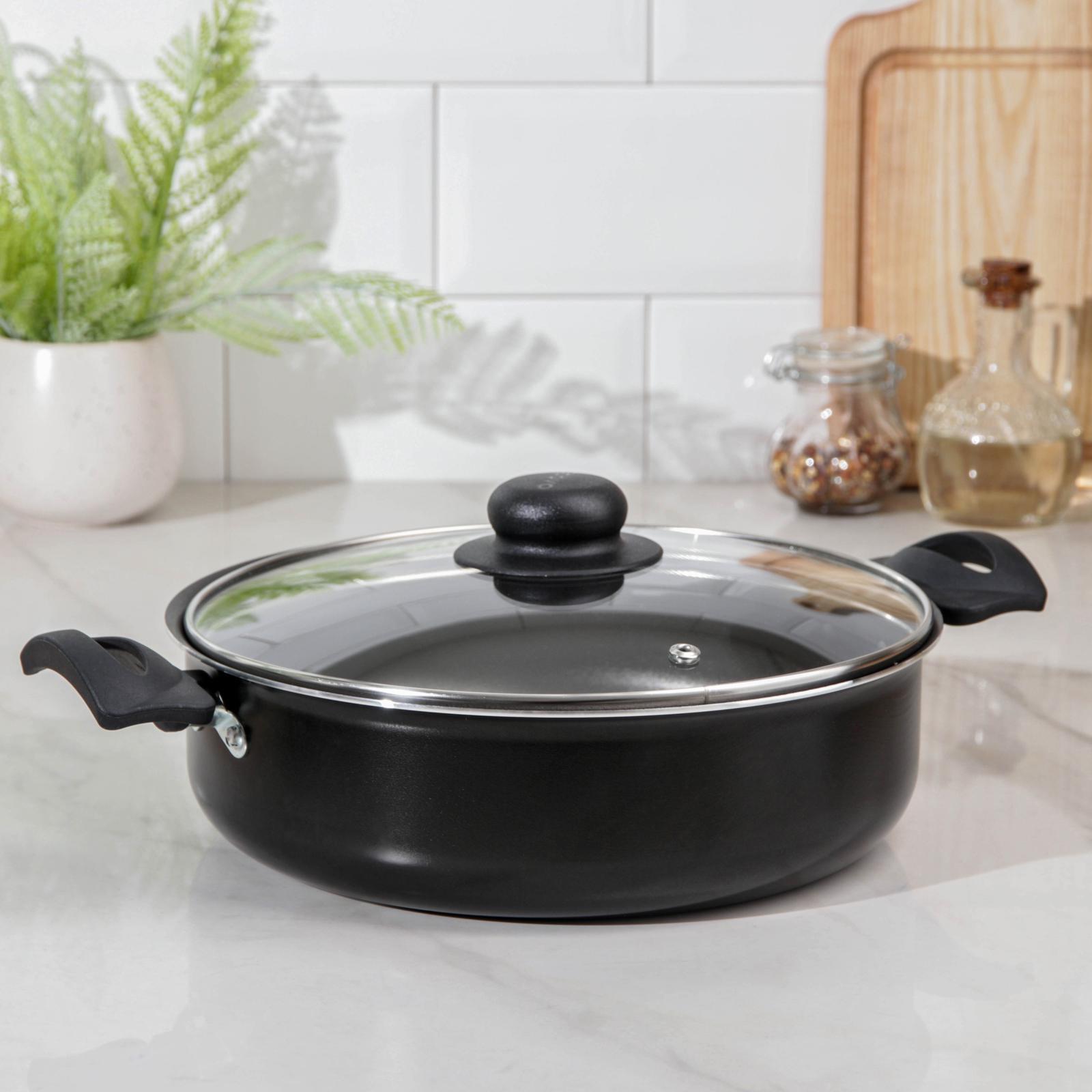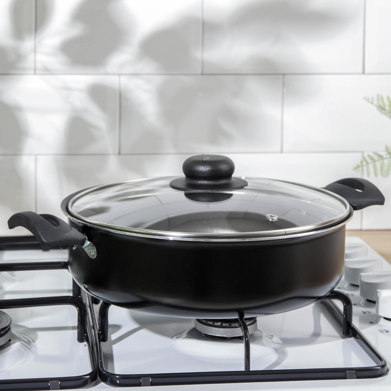 Жаровня-сковорода Consul, 3 л, D=24 см, стеклянная крышка, пластмассовые ручки, антипригарное покрытие, цвет чёрный