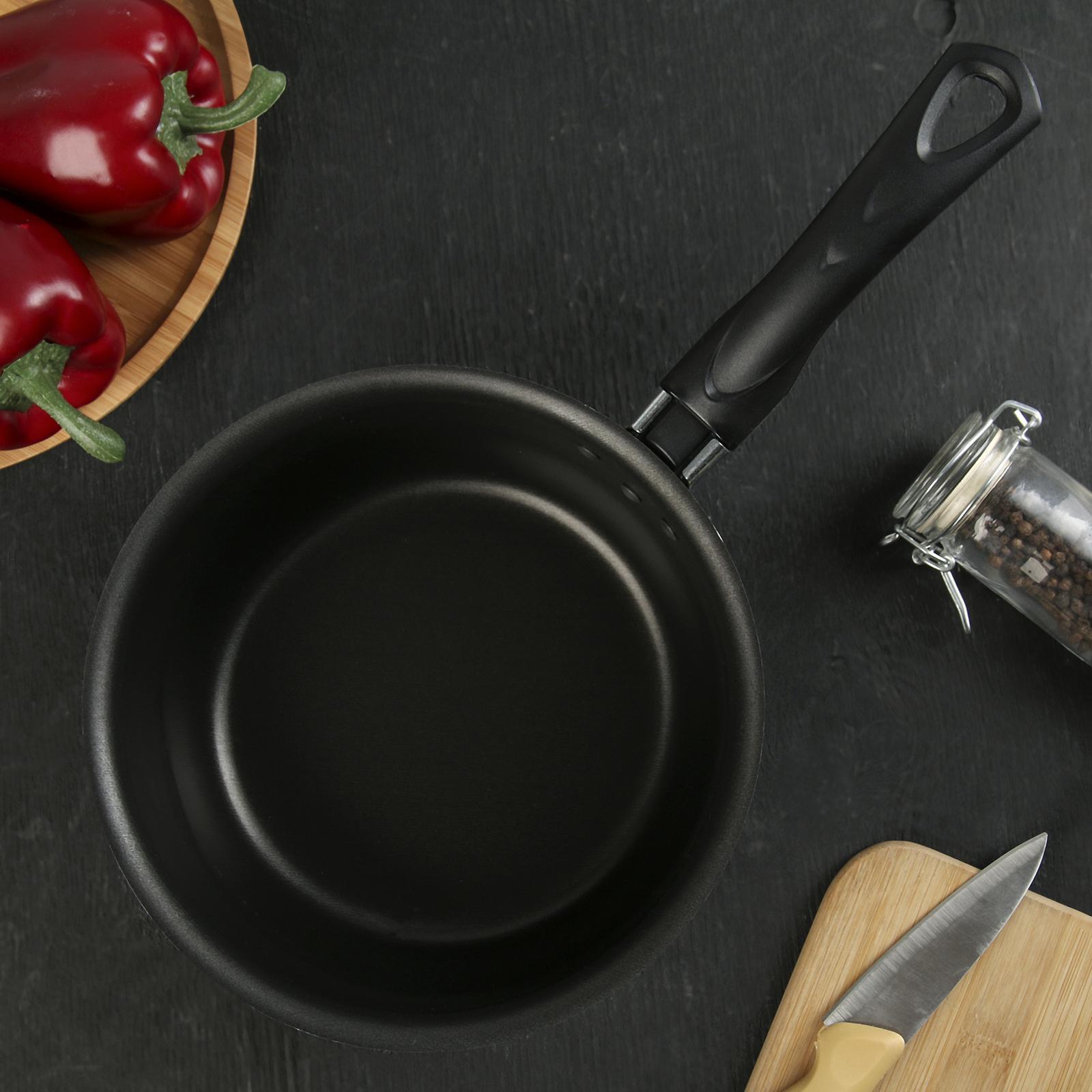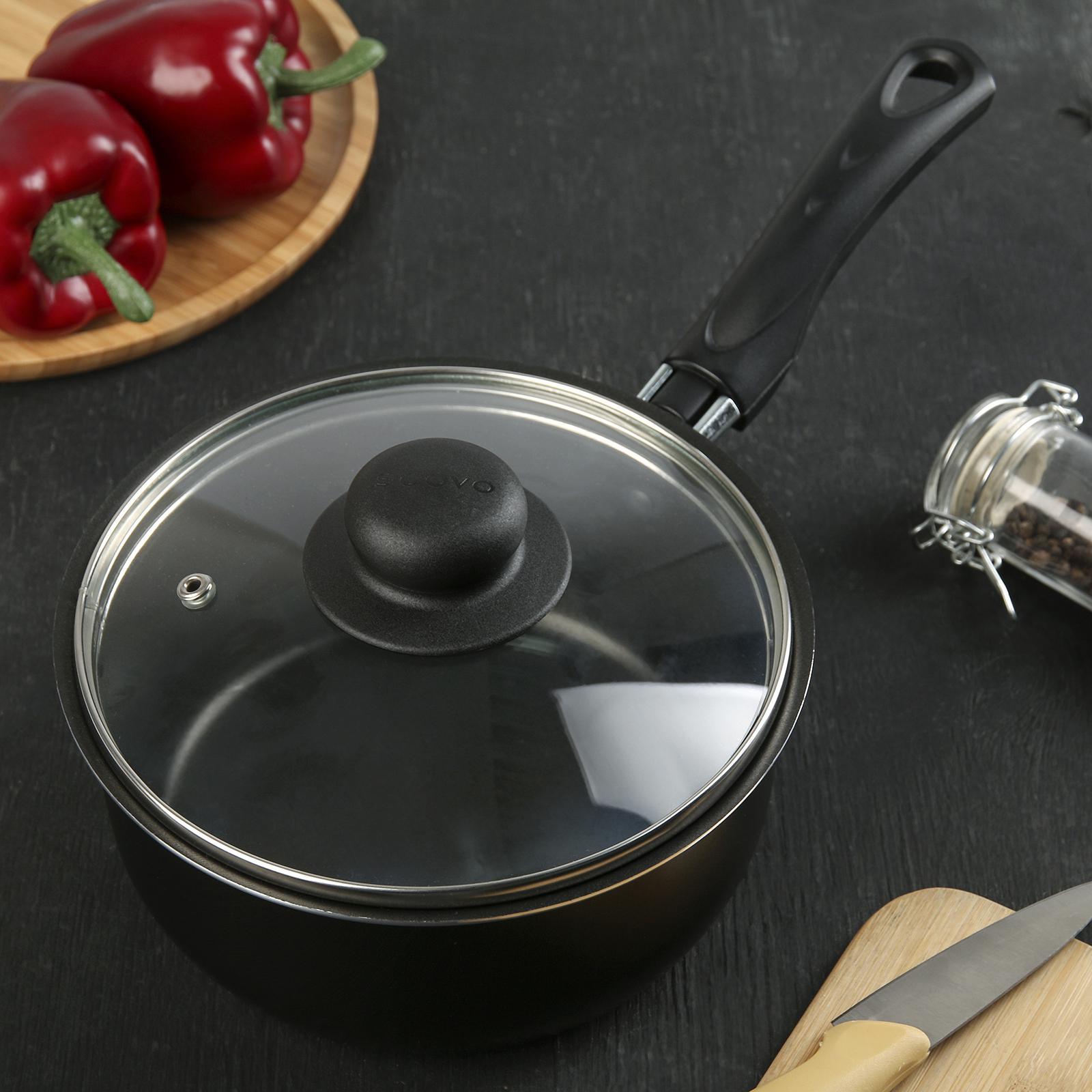Ковш Consul D=18 см, 2 л, пластиковая ручка, стеклянная крышка, антипригарное покрытие, цвет чёрный