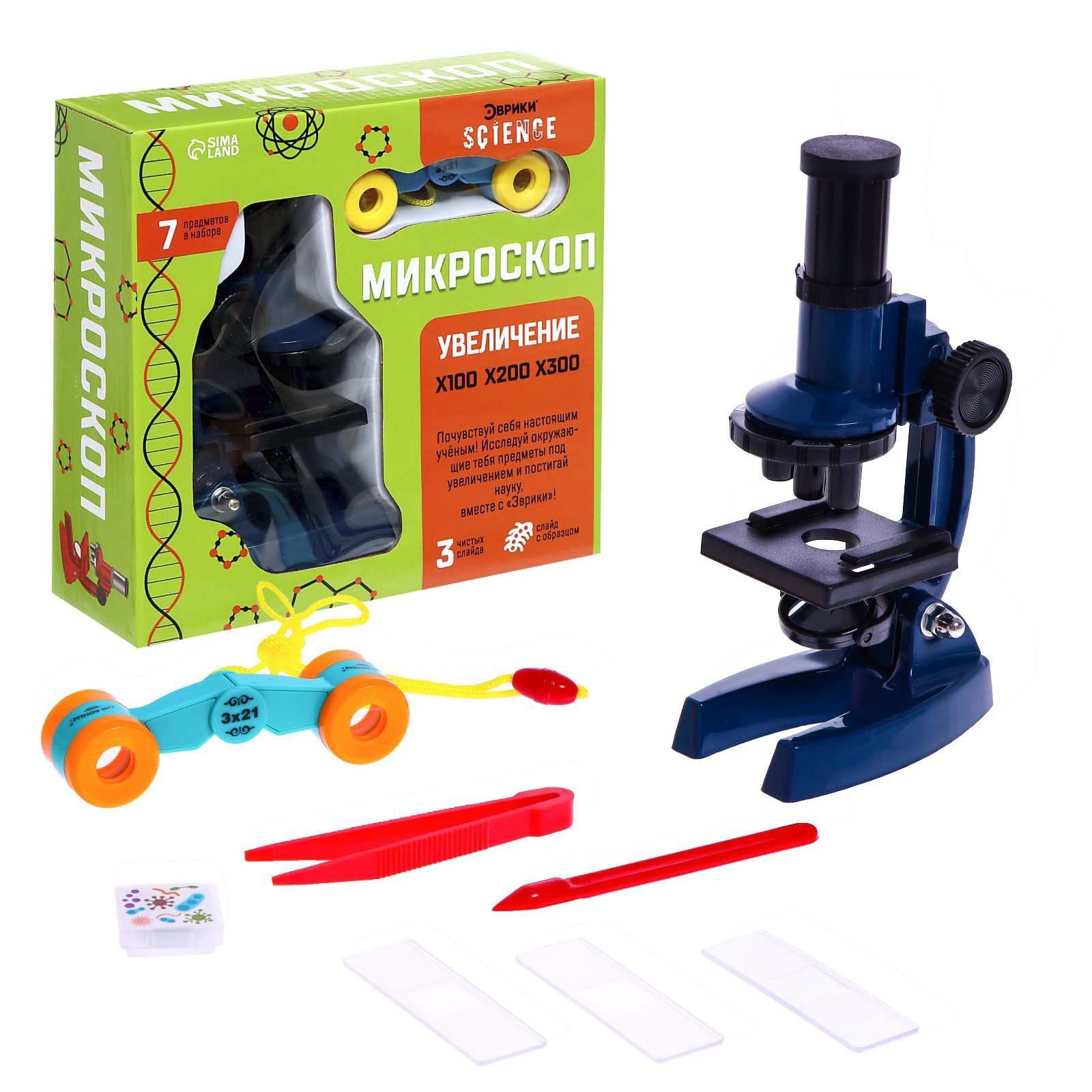 Микроскоп «юный исследователь», 7 предметов, увеличение X100, X200, X300