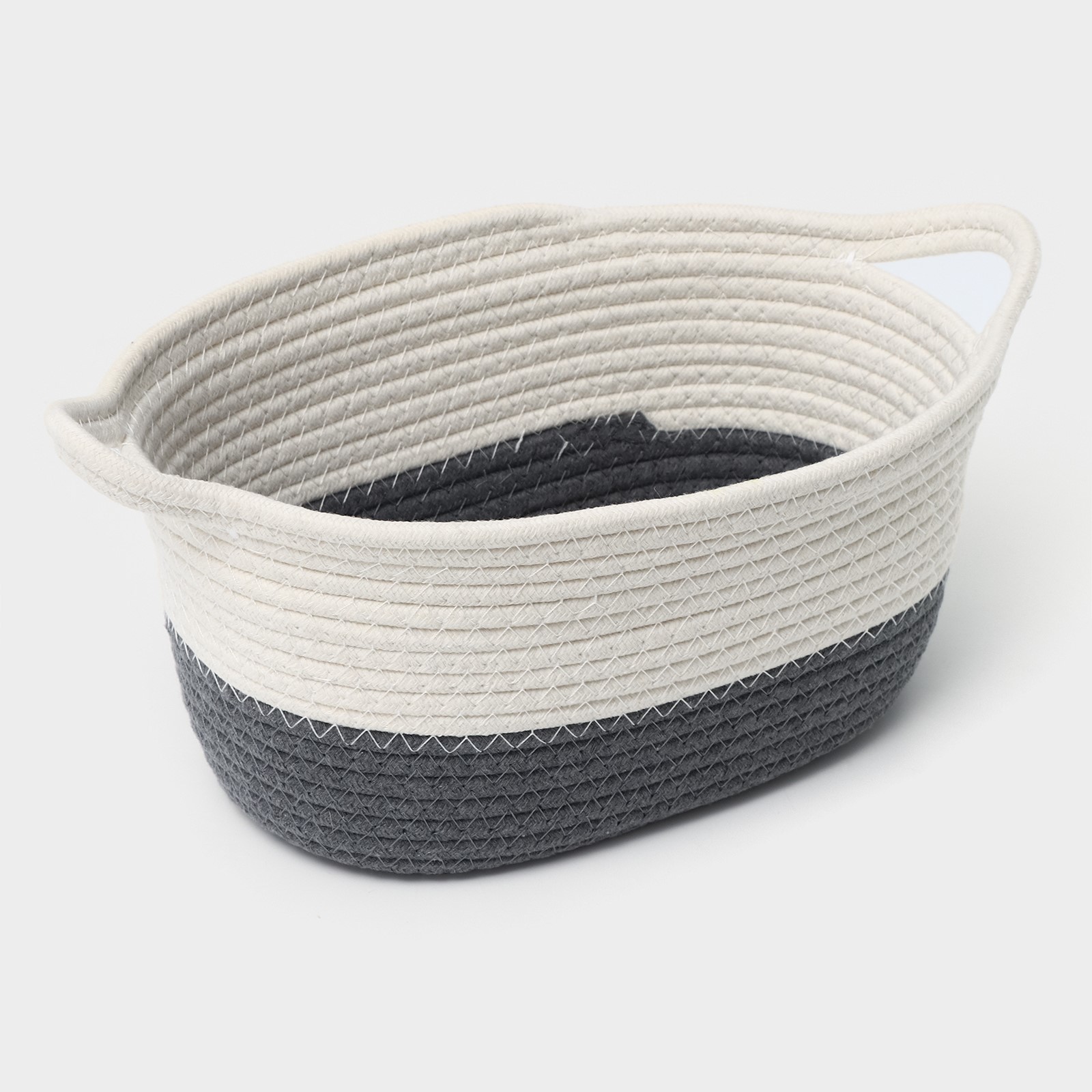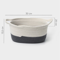 Array. Представляем вам универсальную корзину для хранения вещей, которая станет незаменимым аксессуаром в вашем доме! Она идеально подходит для хранения и впишется в интерьер любой комнаты. Преимущества: Уникальность наших корзинок в том, что все изделия – ручной работы. Корзинка изготовлена из экологичного материала. Дизайн корзины подойдет для интерьеров в стиле: скандинавский, рустик, лофт, этно, фьюжен, фьюжн, кантри, деревенский, бохо, афро, шале. Такие корзины хорошо комбинировать натуральными материалами – текстиль, керамика, камень, кирпич. Получится уютный и вместе с тем динамичный интерьер. Применение: Милая интерьерная корзинка прекрасно подходит для размещения в прихожей или гардеробной. Она станет удобным и стильным органайзером для одежды, шапок и других головных уборов, белья. На кухне корзину можно использовать для хранения полотенец, хозяйственных принадлежностей, бытовой химии или даже продуктов. В корзинке можно компактно и эстетично разместить пряжу и другие принадлежности для рукоделия, вязания, шитья, швейные инструменты и нитки, а также разнообразные ткани и материалы для творчества. В детской комнате подойдет для хранения игрушек. Корзинка станет замечательным офисным аксессуаром для комфортного размещения книг, журналов и канцелярских принадлежностей. Уход и эксплуатация: Не рекомендуем стирать корзину в стиральной машине. Для устранения местных загрязнений используйте теплую воду, мыло (средство для посуды) и мягкую губку или щетку, но не рекомендуется сильно мочить корзинку. Выбирайте предметы интерьера, которые вдохновляют и делают вас счастливыми. Закажите корзину для хранения на нашем сайте и начните преображение своего дома уже сегодня! Цвет: Белый Цвет: Серый Форма: Круглая Ширина, см: 20 Высота, см: 13.5 Глубина, см: 30 Крышка: Нет Материал: Хлопок Основной материал: Текстиль Форма: Круг, шар, цилиндр  развернуть описание ▼
