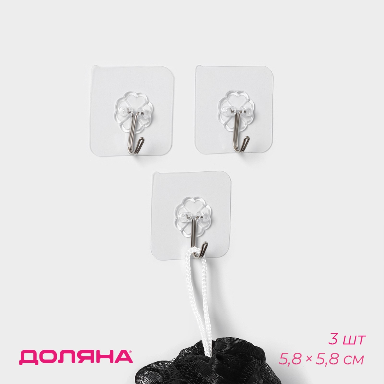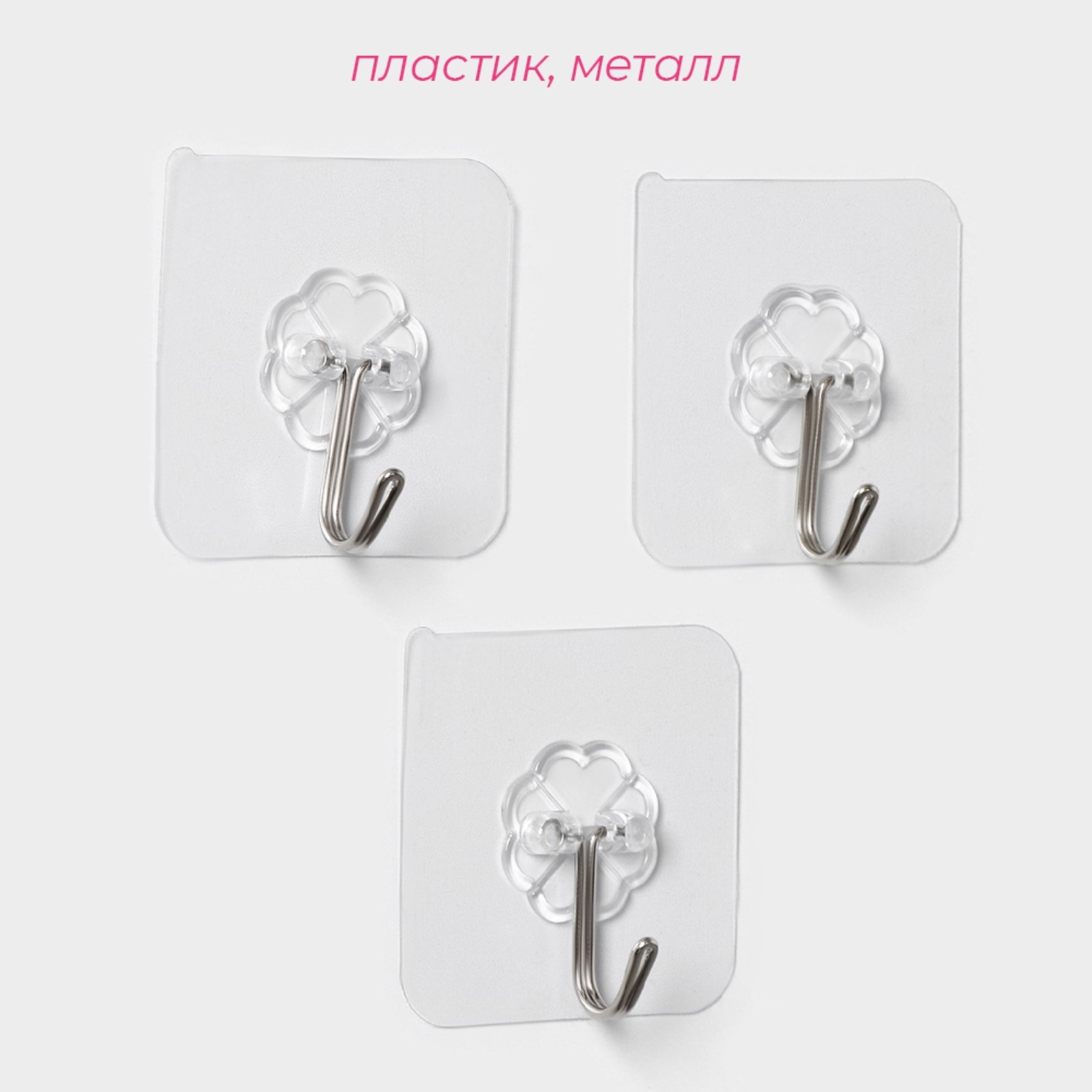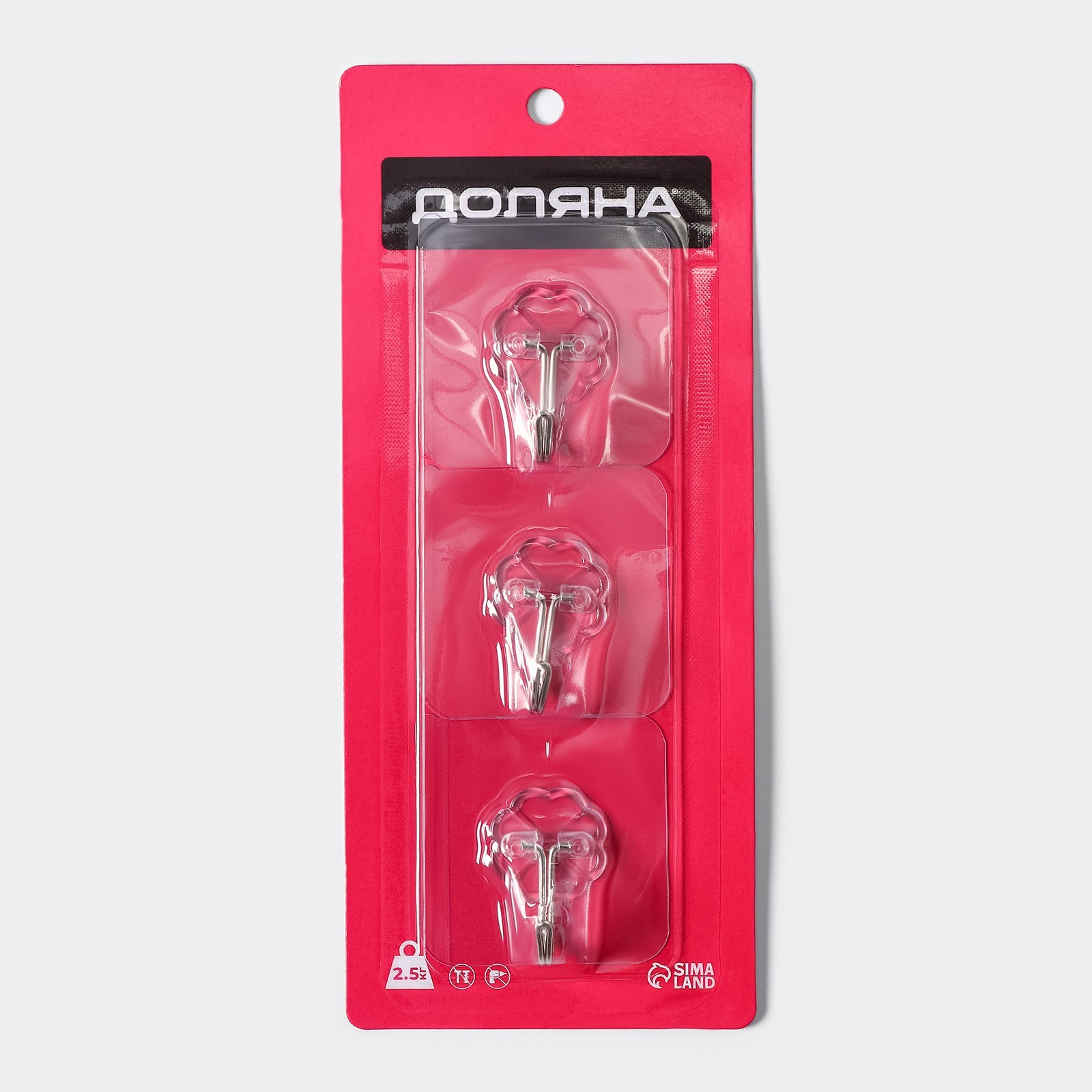 Крючки самоклеящиеся доляна «классика», 3 шт, прозрачный
