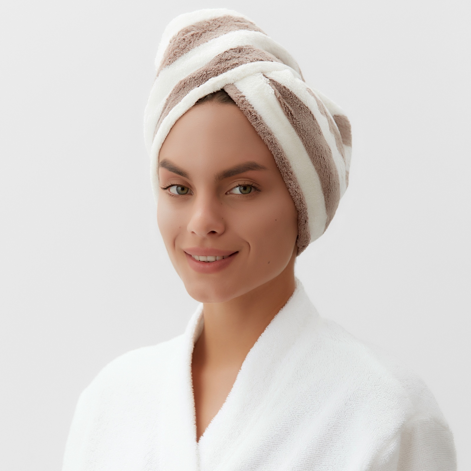 Чалма для сушки волос этель «полоски», цв.фиолетовый, 65*25 см, 100% п/э