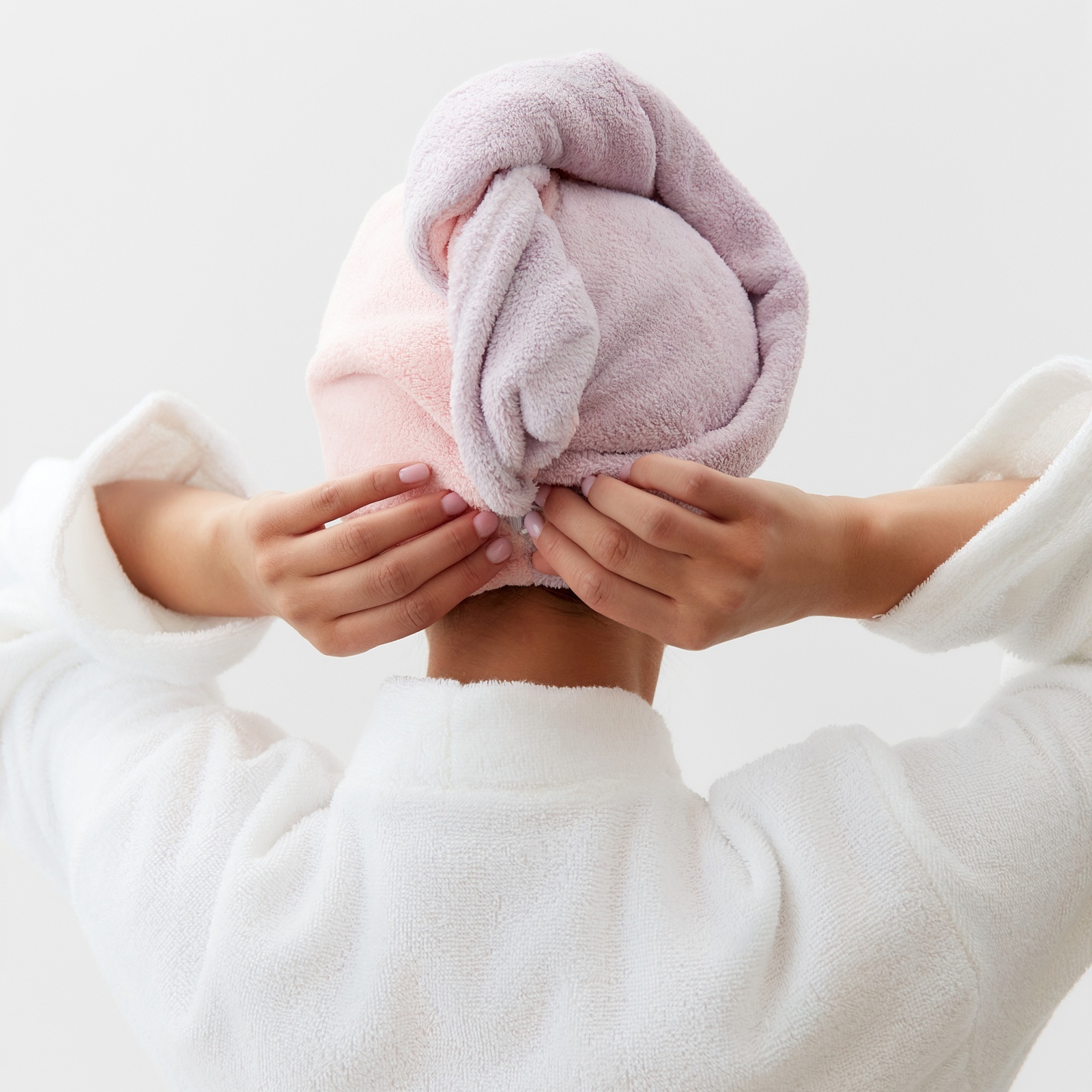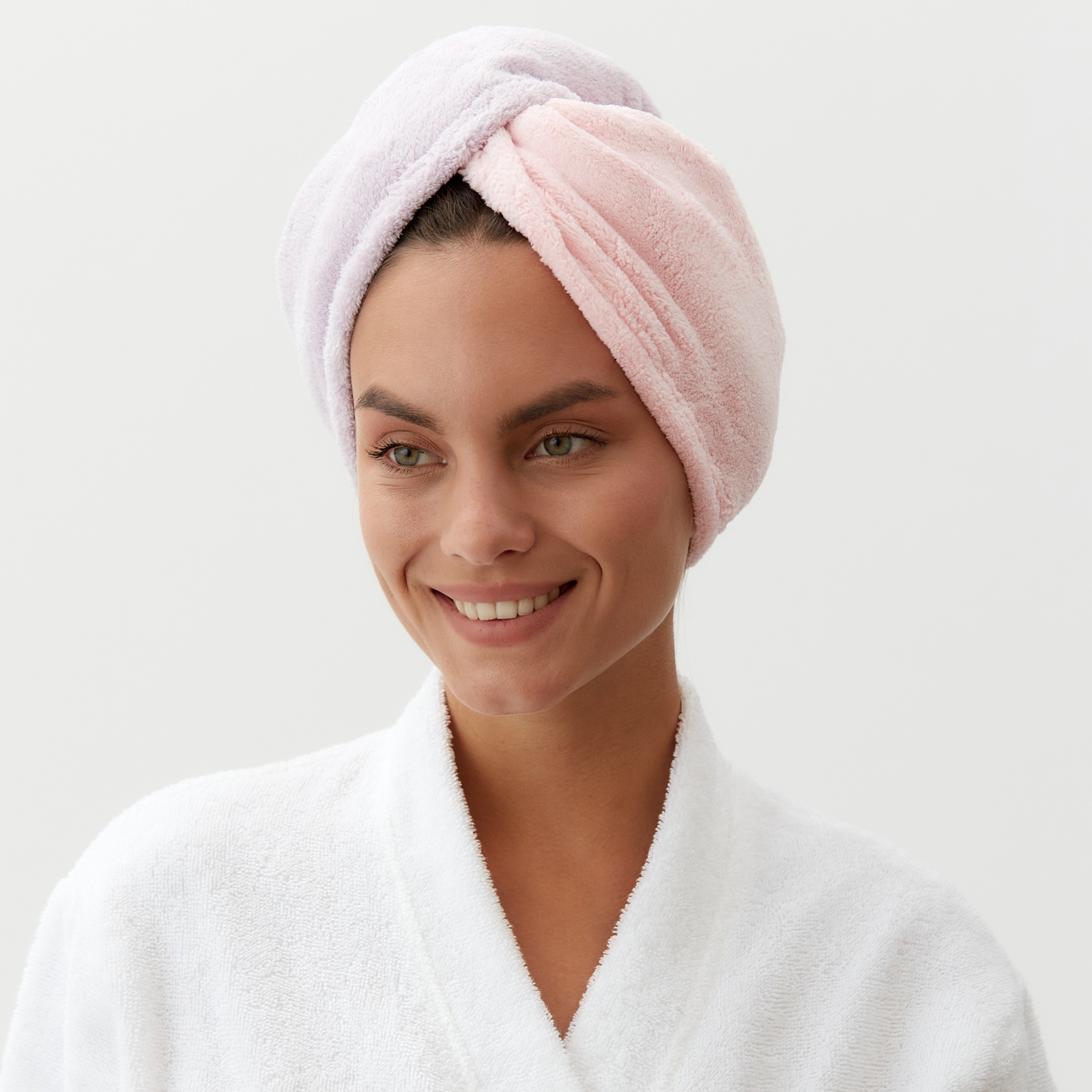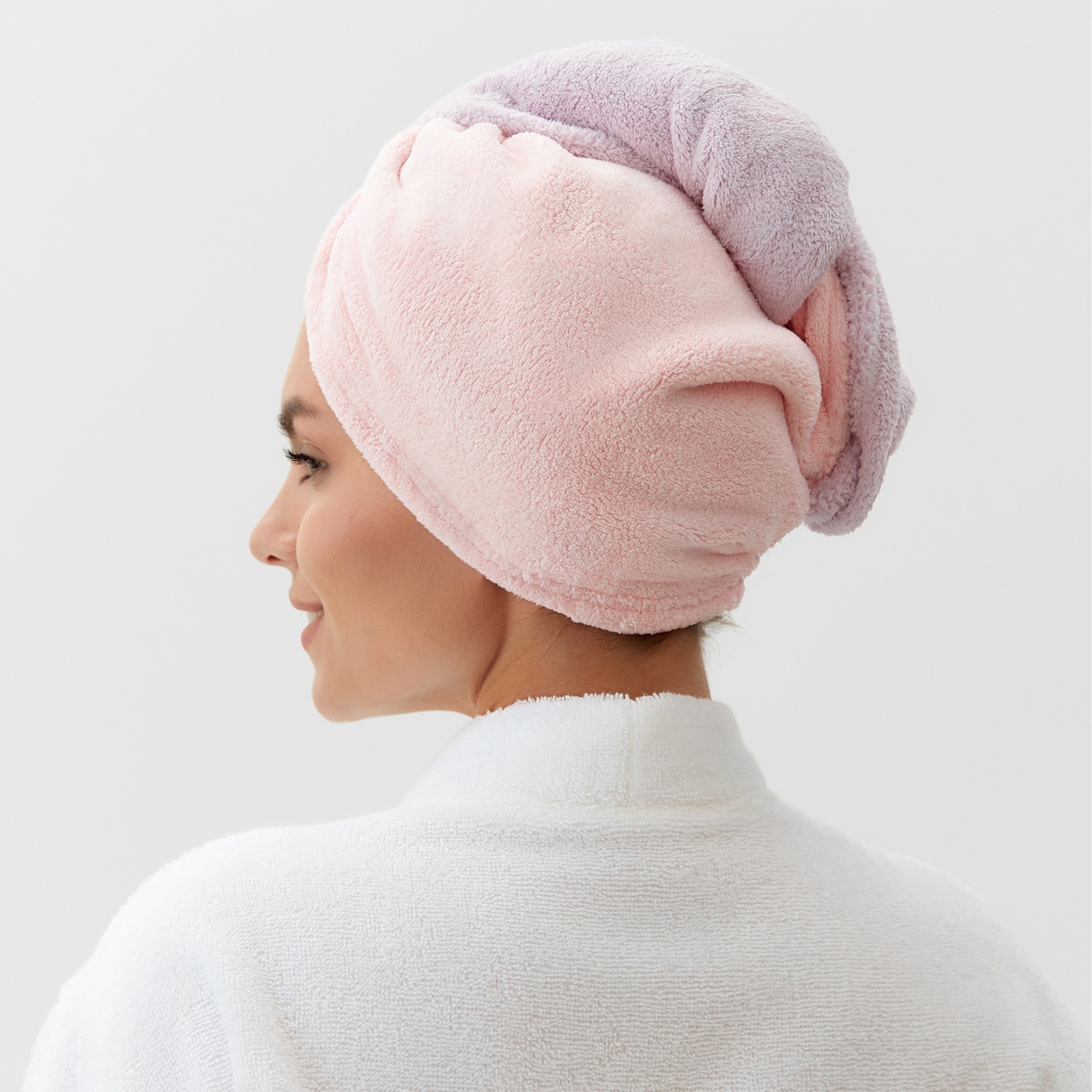 Чалма для сушки волос этель «двухцветная», цв.розовый/фиолетовый, 65*25 см, 100% п/э