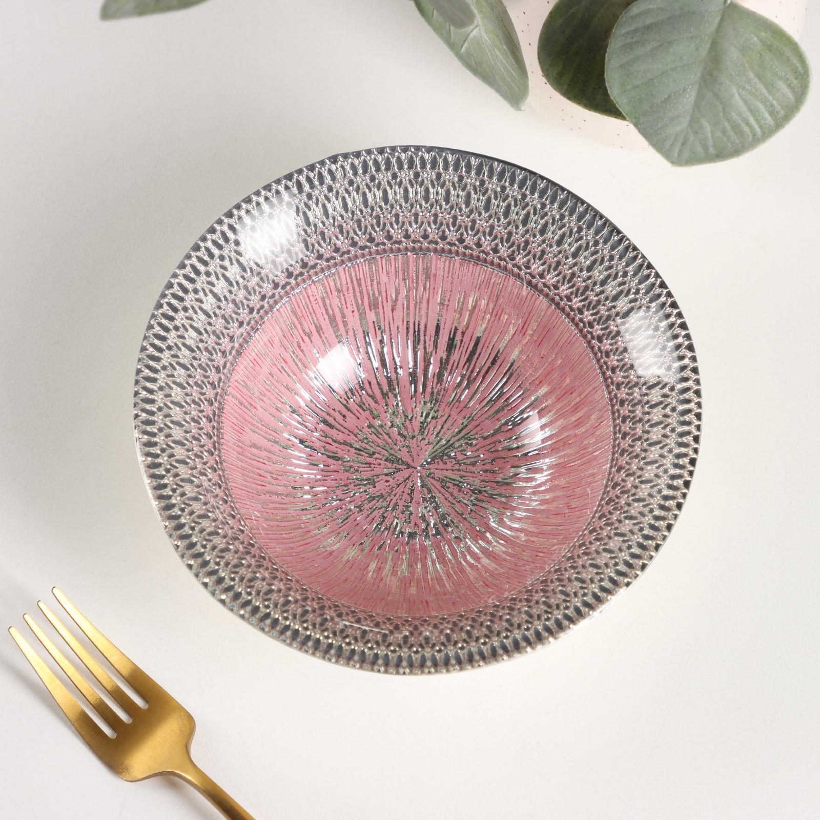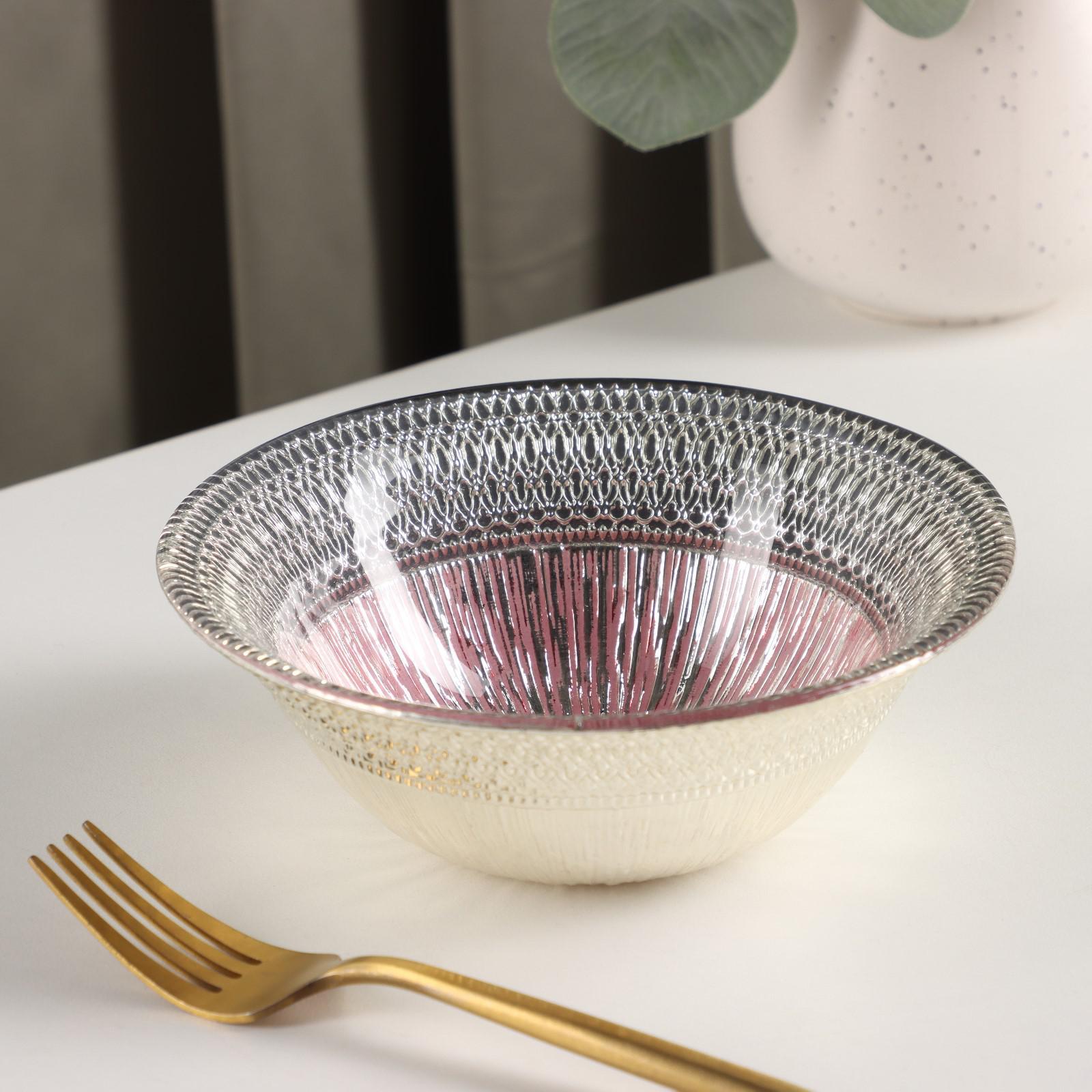 Салатник стеклянный «морион», 450 мл, D=16 см, цвет розовый с серебром