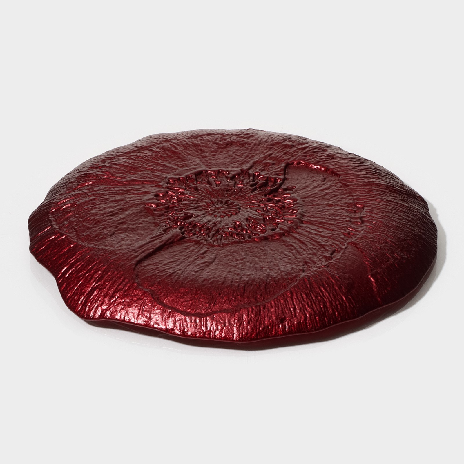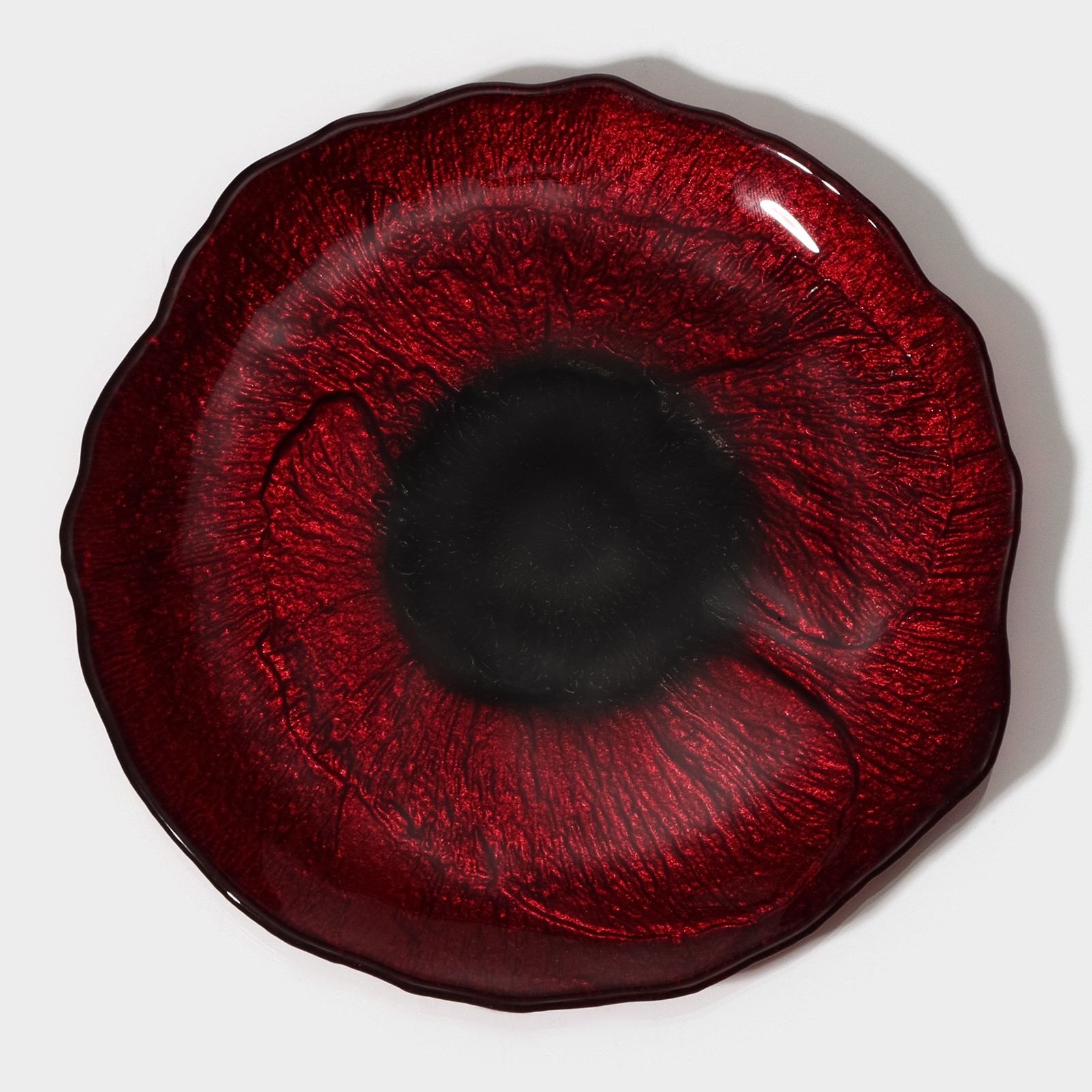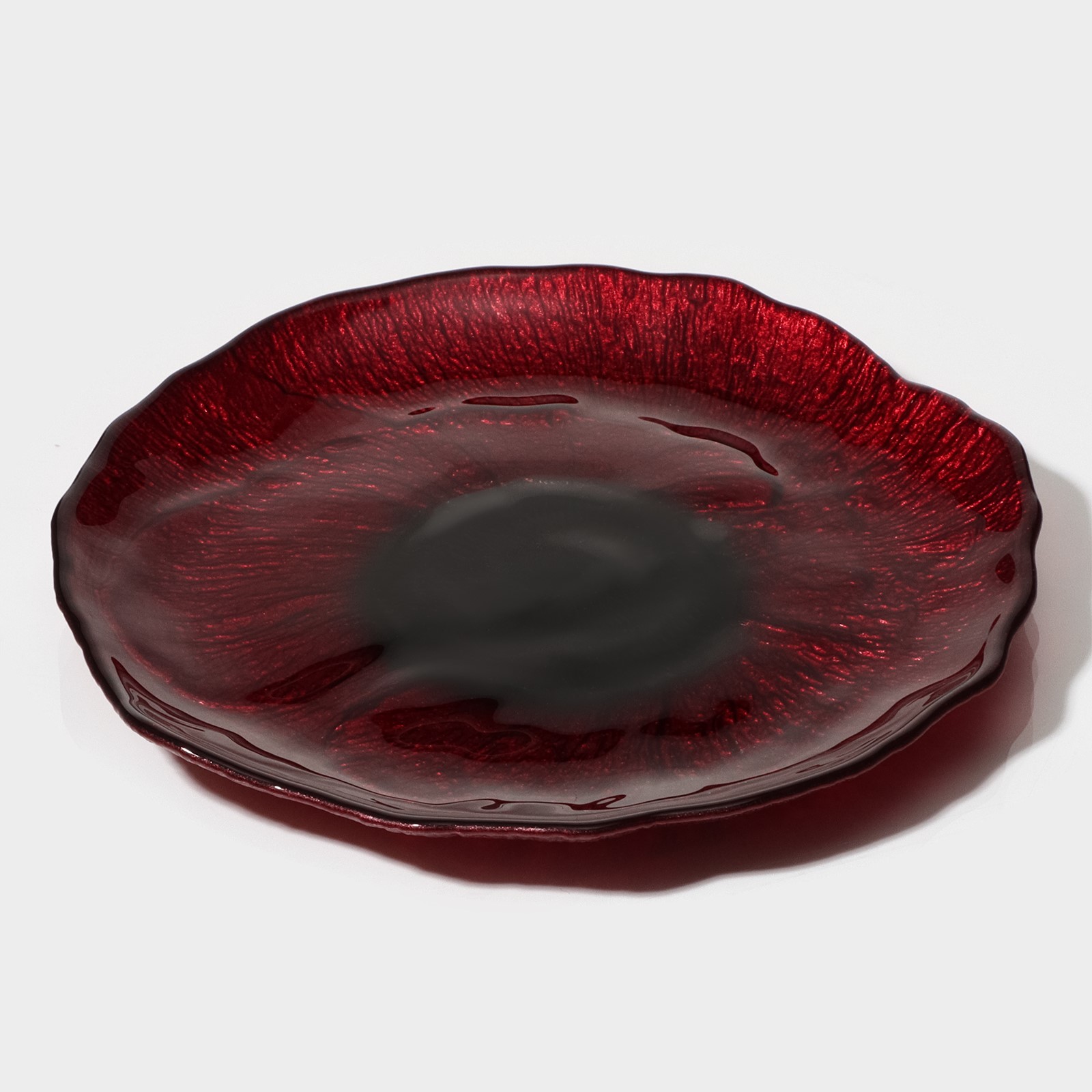 Блюдо стеклянное сервировочное «флора», D=21 см, цвет красный
