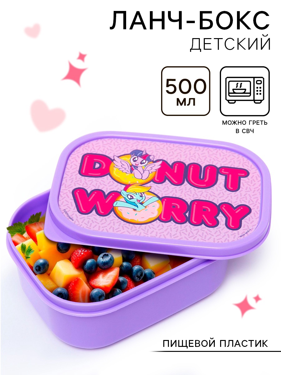 Ланч-бокс прямоугольный 0.5 л donut worry, my little pony. Набор:Нет|Цвет:Фиолетовый|Объём, л:0.5|В наборе, шт.:1|Объём, мл:500|Рисунок:Да|Материал:Пластик|Герметичная крышка:Да|Наличие столовых приборов:Нет|Для детей до 3 лет:Нет|Можно использовать в СВЧ-печи:Да|Назначение:Ланчбокс|Цвет крышки:Фиолетовый|Особенности :Без особенностей|Страна:Китай  развернуть описание ▼