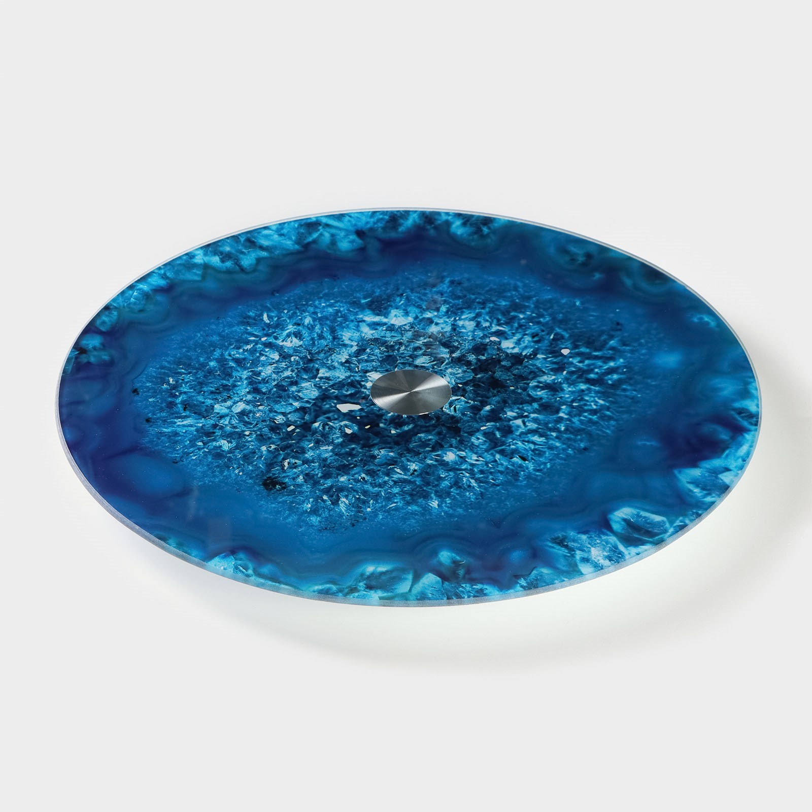 Подставка стеклянная для торта вращающаяся доляна «голубой агат», D=32 см, цвет синий