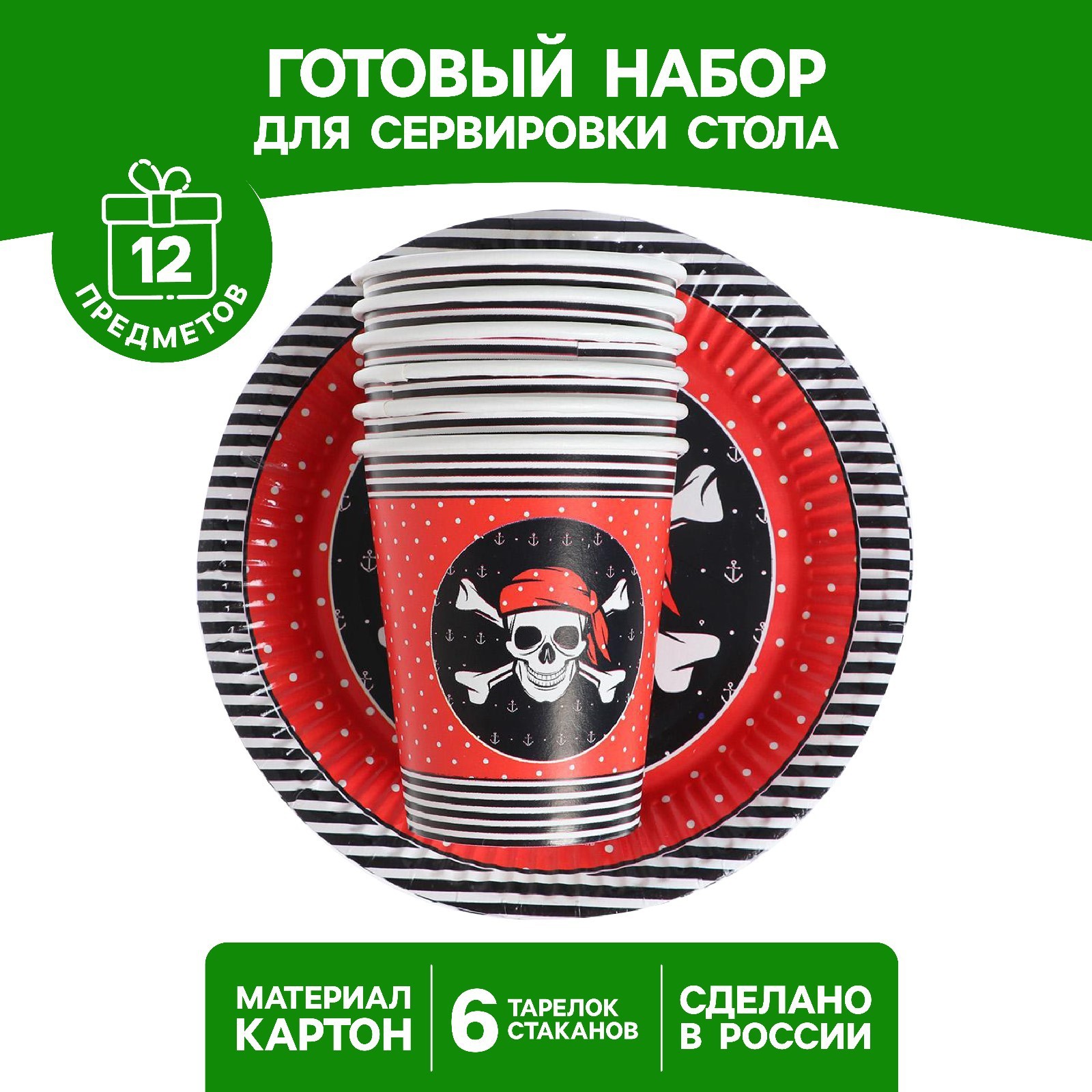 Набор бумажной посуды одноразовый пиратская», 6 стаканов, 6 тарелок