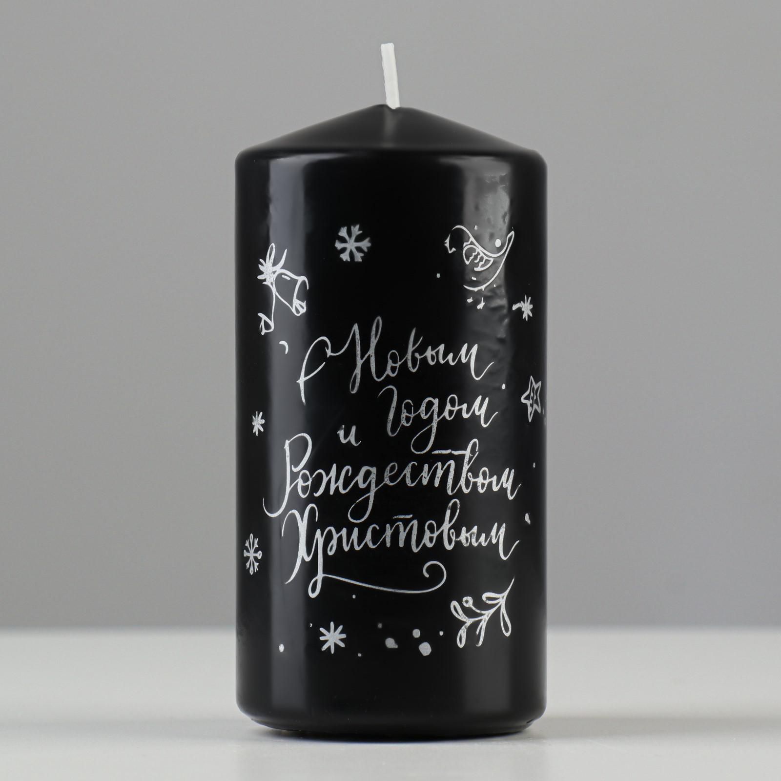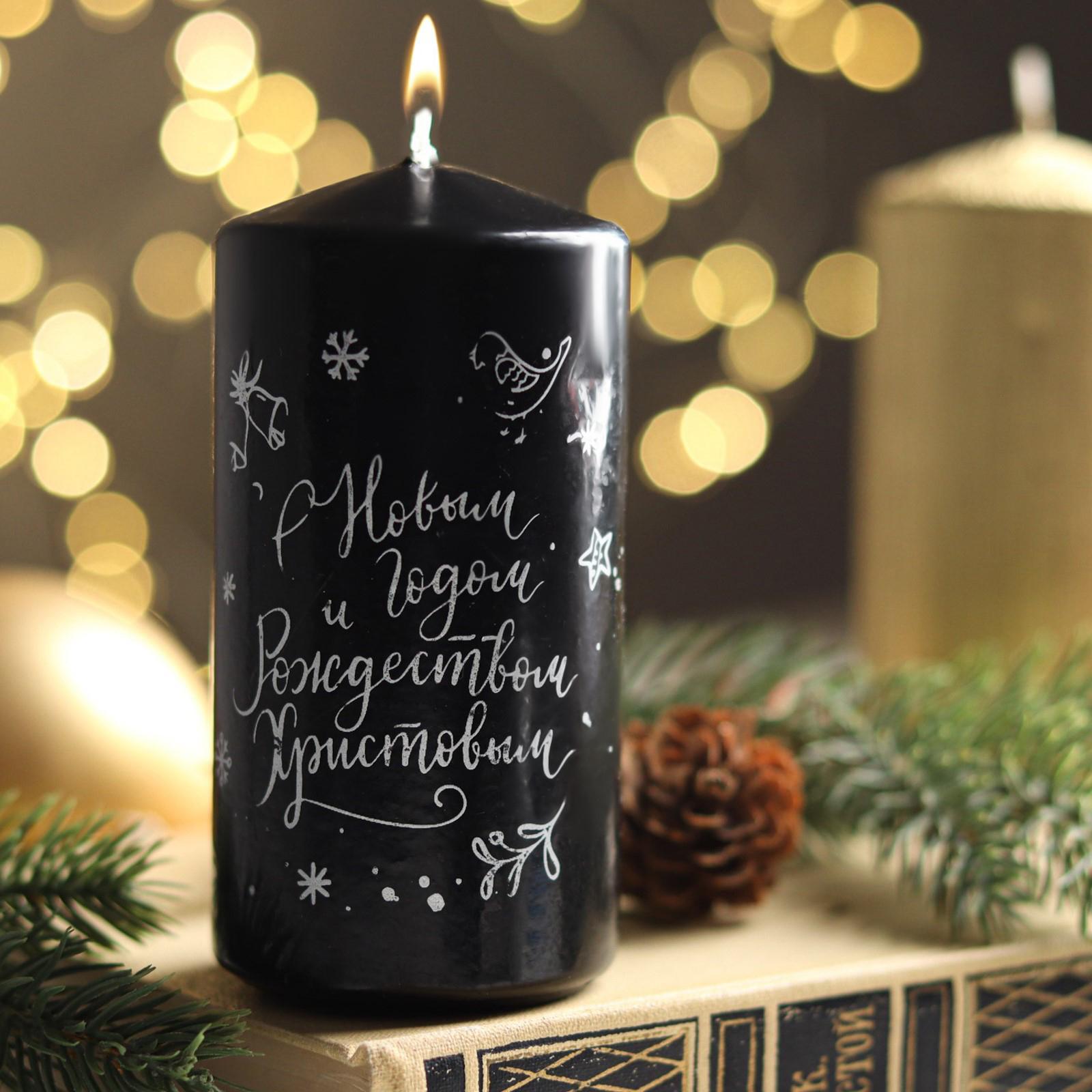 Свеча-цилиндр «с новым годом и рождеством!», 5 10 см, чёрная с серебром. Свеча — стильный элемент декора в интерьере и приятный подарок. Мерцающий огонёк зажжённой свечи завораживает, расслабляет, успокаивает и отвлекает от проблем. Она дарит тепло и создаёт новогоднюю атмосферу. Подарите себе и своим близким немного света и радости. Цвет:Чёрный|Высота свечи, см:10|Символ года:Нет|Ароматизированные:Нет|Состав:Парафин|Страна:Россия  развернуть описание ▼