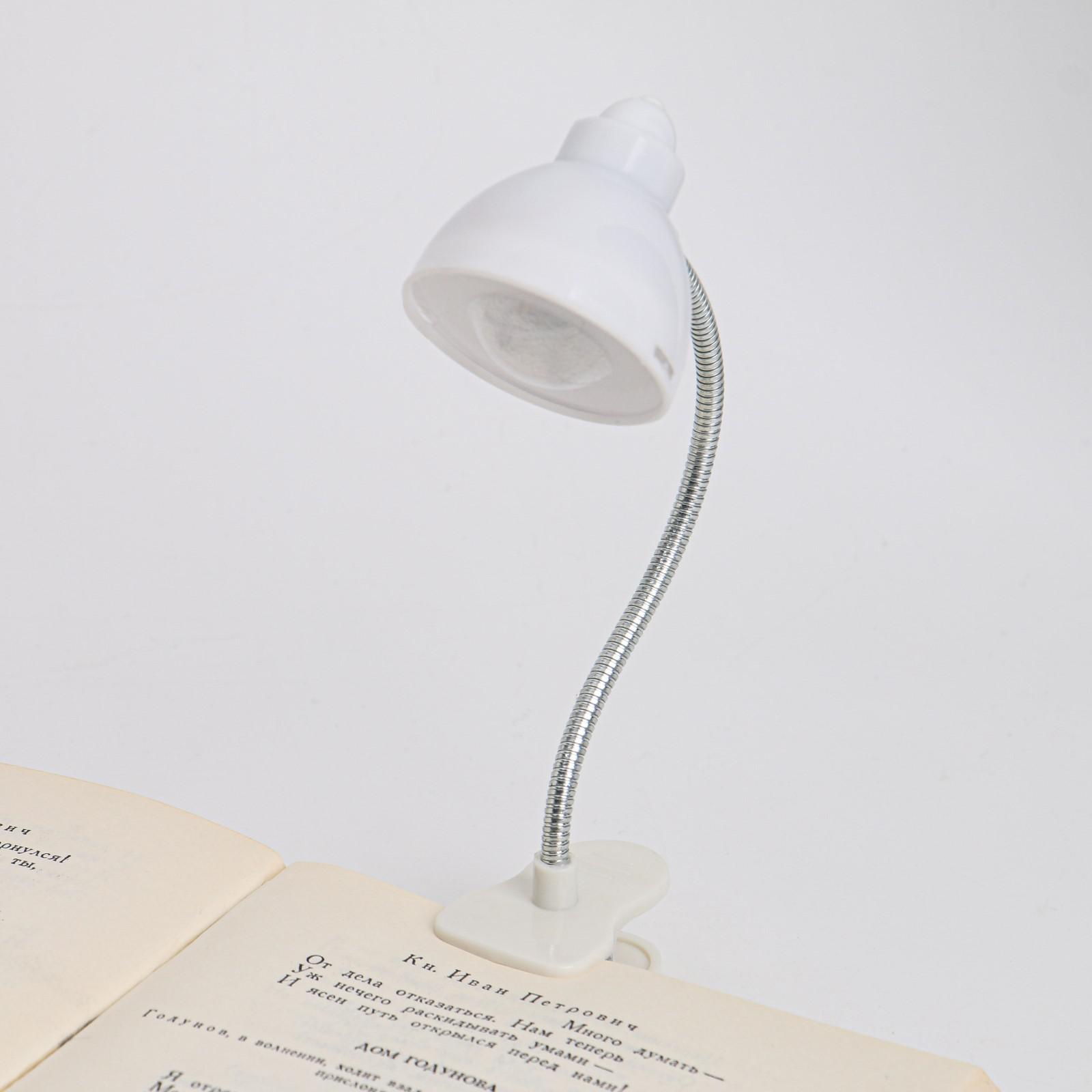 Фонарик для чтения книг на прищепке 2 led, ag13, h-20 см, d-4 см. Любителям книг это просто необходимо Оригинальный гаджет для любителей почитать перед сном. Приятная подсветка для глаз, плотный зажим-прищепка надежно фиксируется на твердой или мягкой обложке или электронной книге, он абсолютно не мешает окружающим, потому что вы самостоятельно сможете регулировать зону освещения. К тому же устройство настолько компактно, что вы без труда найдете ему место в своей дорожной сумке, взять с собой в путешествие, в самолет или поезд. С таким компактным светильником чтение в уютной домашней вечерней обстановке станет для вас любимым времяпрепровождением. Тип питания: От батареек Стиль: Светодиодные Вид установки: Переносной Типоразмер батареек: LR44 (V13GA, AG13, LR1154, SR44) Управление светильником: С выключателем на корпусе Тип питания: От батареек  развернуть описание ▼