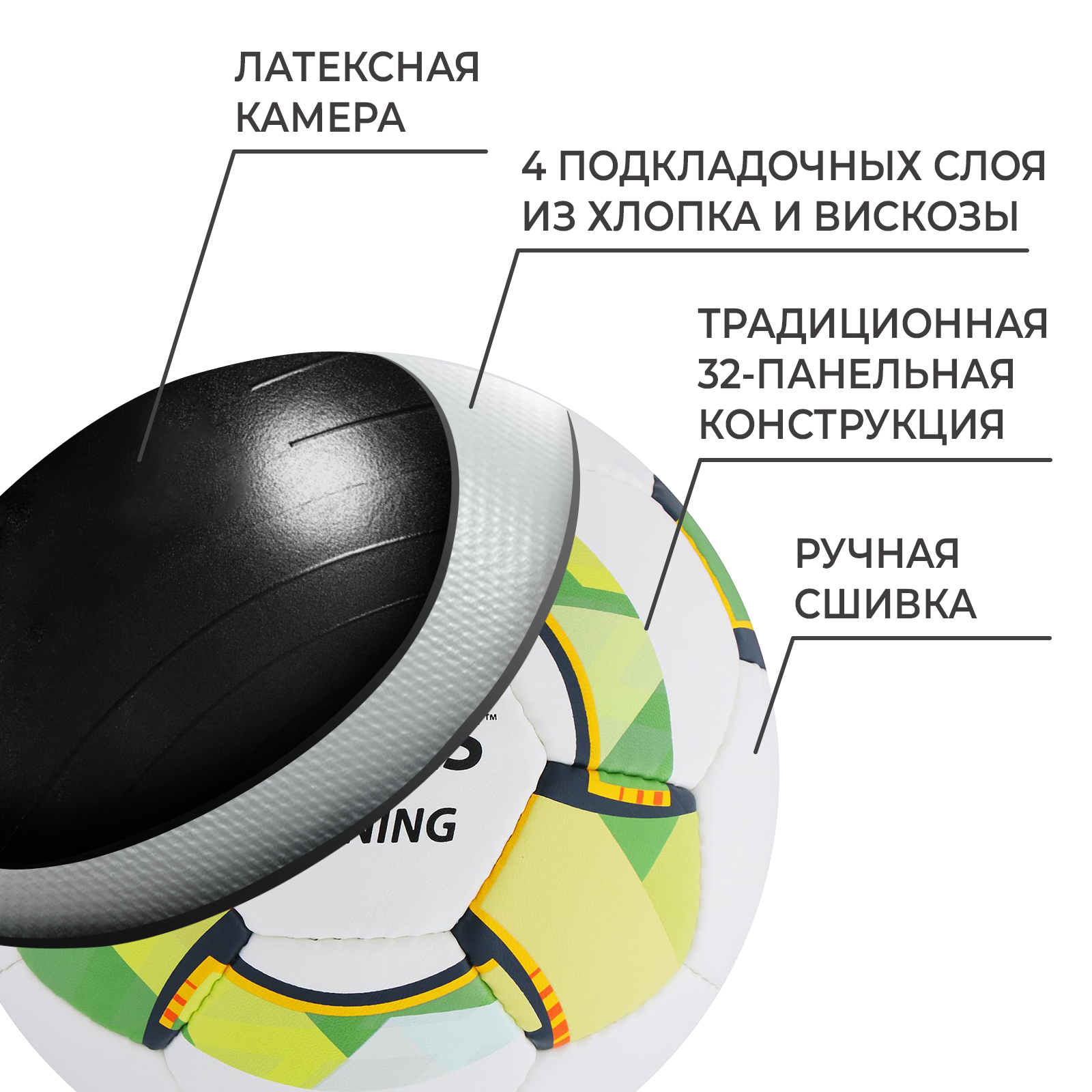 Футбольный мяч torres training, f320054, ручная сшивка, 32 панели, р. 4, pu. Модель мяча TORRES Training призвана обеспечить качественный тренировочный процесс для команд и клубов любительского уровня. Подходит для игры на любых поверхностях при любых погодных условиях (при соблюдении условий эксплуатации и ухода), оптимален для жёстких покрытий (гаревые площадки, твердые синтетические покрытия, паркет в зале). Каркас мяча изготовлен из матового износостойкого полиуретана толщиной 1, 0 мм на тканой основе и четырьмя подкладочными слоями (2 слоя хлопка, 2 слоя вискозы). Состоит из 32 панелей. Тип соединения панелей – ручная сшивка. Камера с бутиловым ниппелем сделана из латекса. В комплект входит игла для накачивания. Размер 4 подходит для мини-футбола или для юношеских тренировок по большому футболу. Цвет: Разноцветный Размер мяча: 4 Количество подкладочных слоёв: 4 Диаметр, см (+/- 7 мм): 20 Количество панелей: 32 Вес, г: 388 Материал: Полиуретан Тип соединения панелей: Ручная сшивка Уровень спорта: Тренировочный Температурное ограничение: Нет Материал камеры: Латекс Назначение: Для улицы Особенности: Подходит для игры зимой Подходит для мини-футбола: Да  развернуть описание ▼