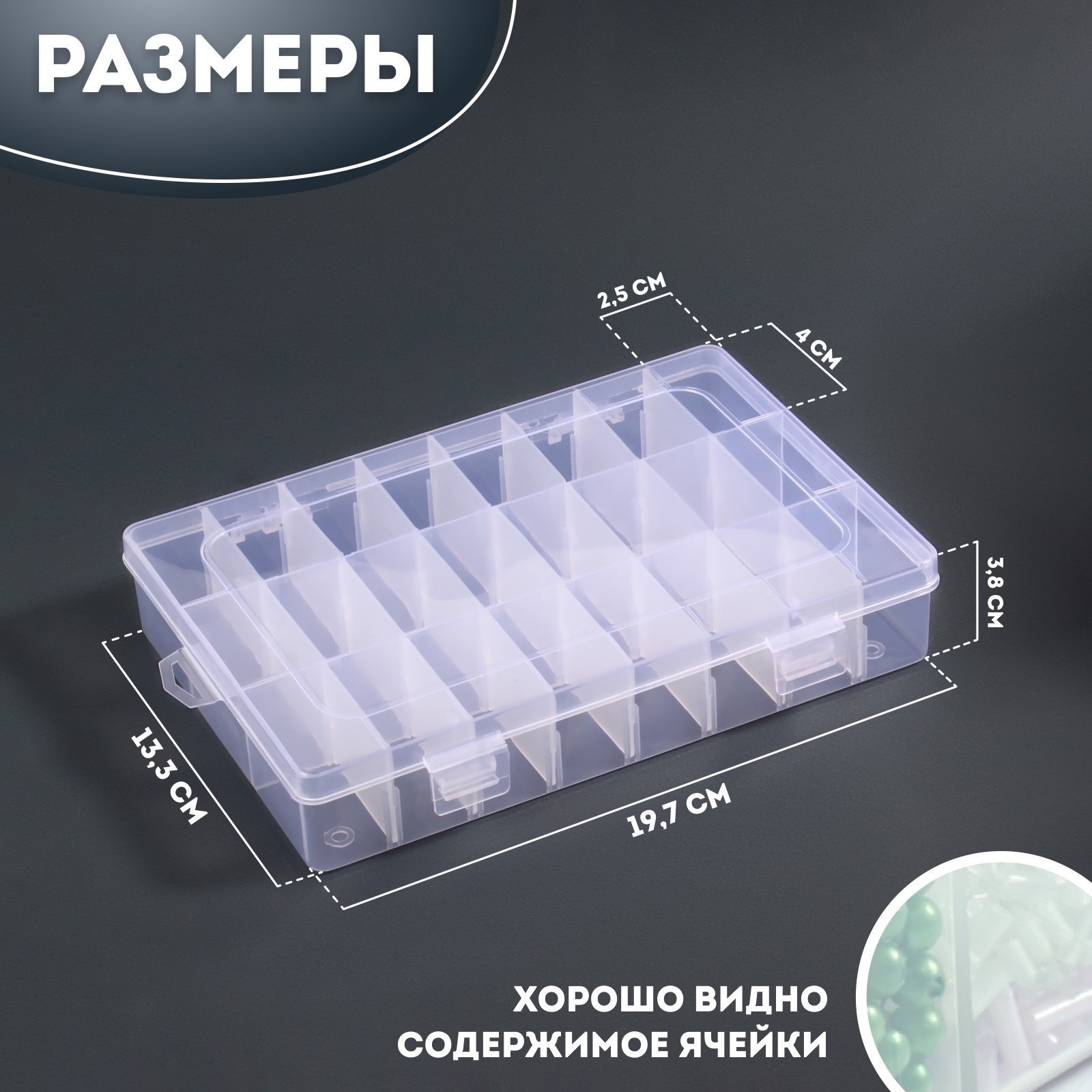Органайзер для декора, передвижные ячейки, 24 ячейки, 19,7 X 13,3 X 3,5 см, цвет прозрачный