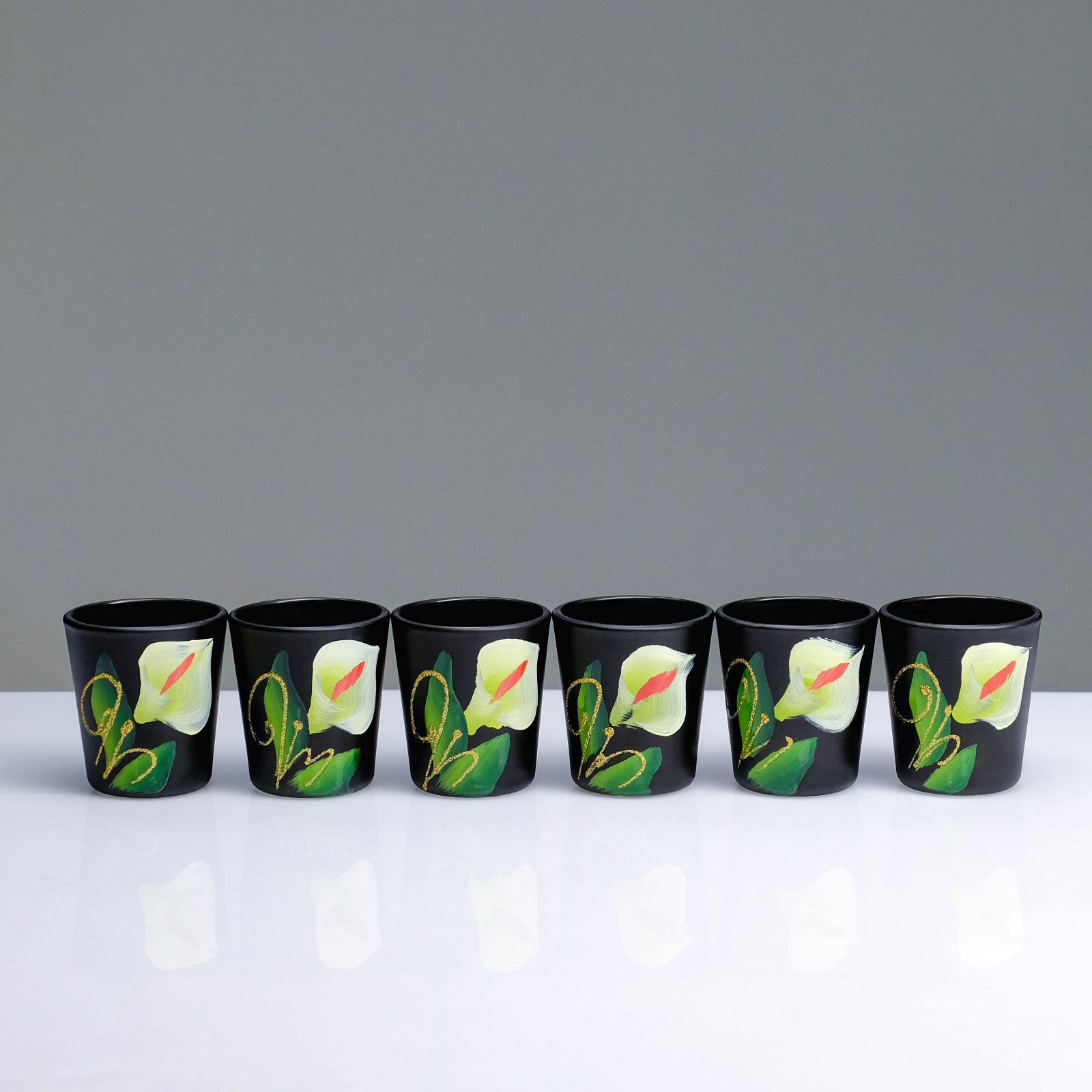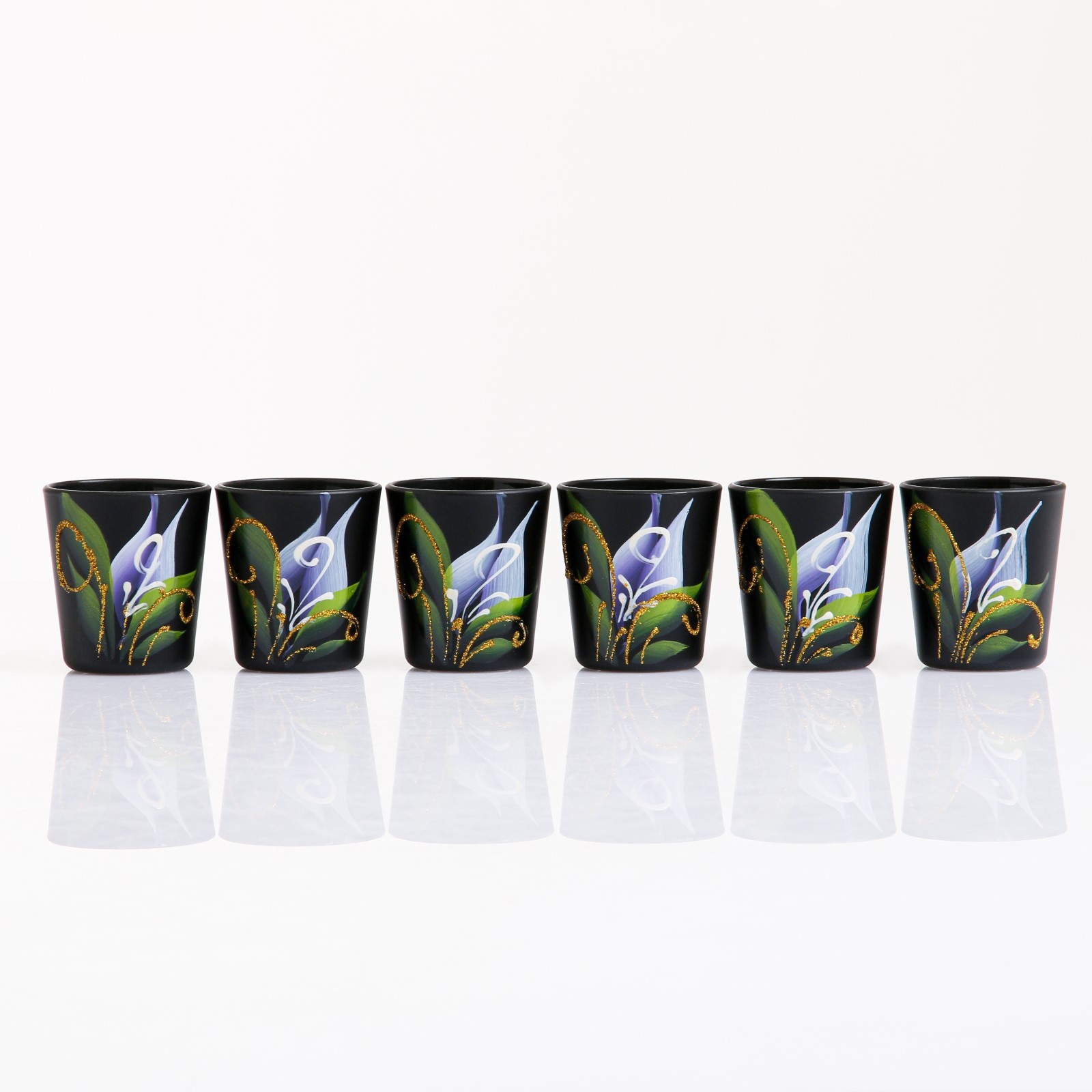 Набор стопок "каллы" 6 стопок. Цвет: Чёрный В наборе, шт.: 6 Объём, мл: 50 Назначение: Для водки/ликера Материал: Стекло Температурное ограничение: Нет Можно мыть в посудомоечной машине: Нет Текстура: Гладкая Особенности: Без особенностей Запрет реализации по сегментам: 00000000485  развернуть описание ▼