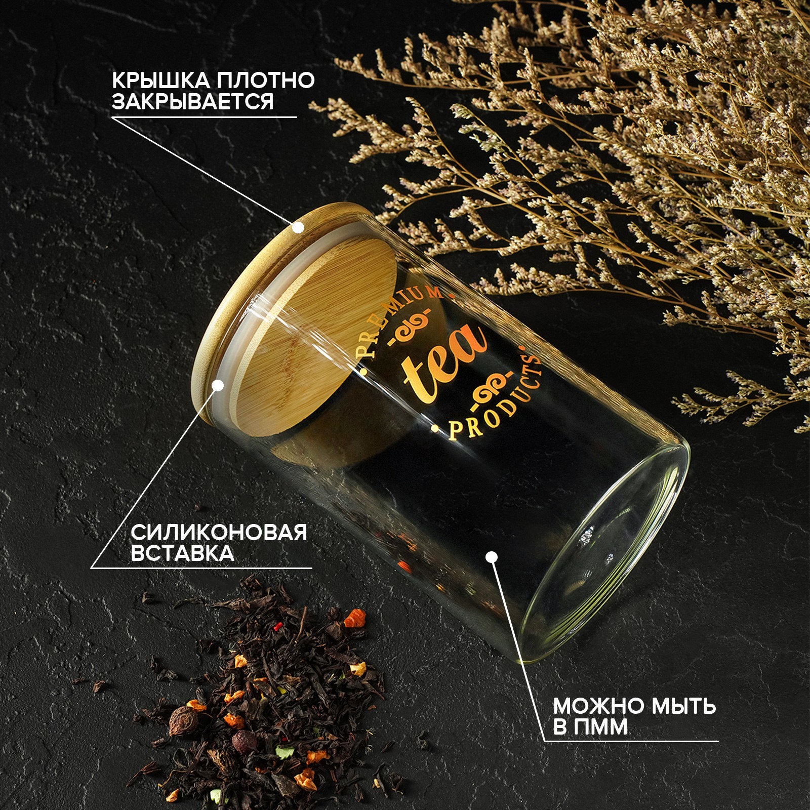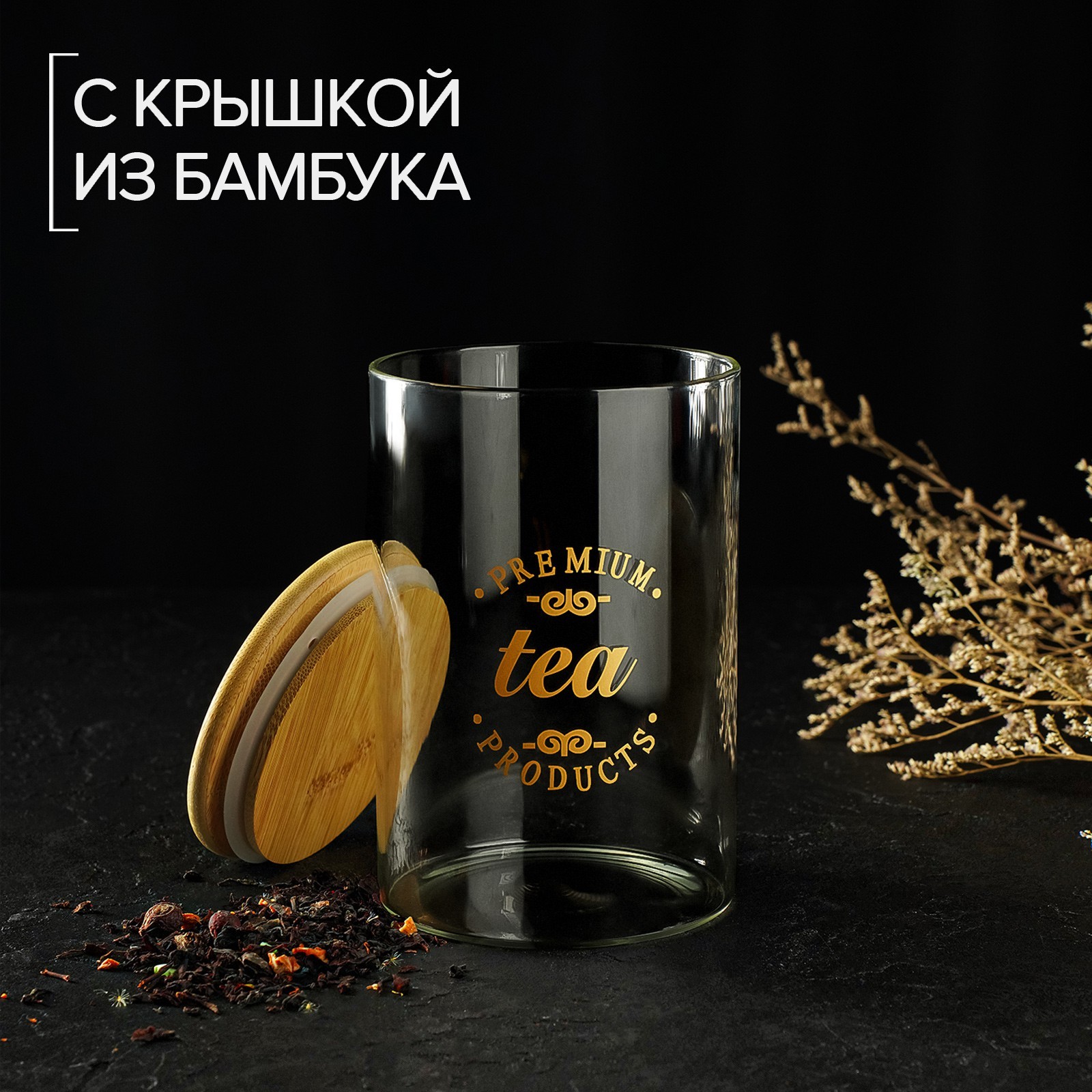 Банка стеклянная для сыпучих продуктов с бамбуковой крышкой «эко. чай», 1 л, 10x15 см