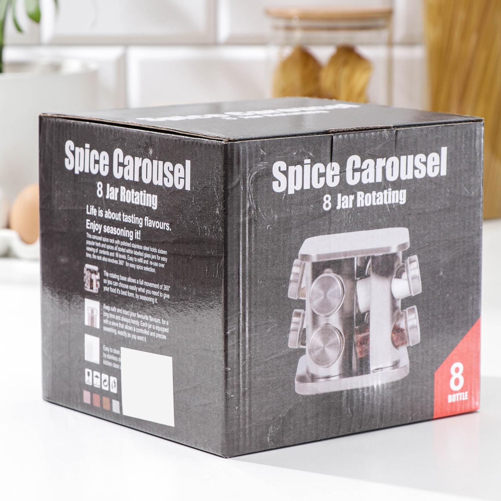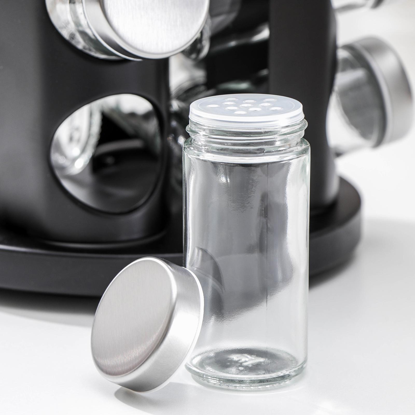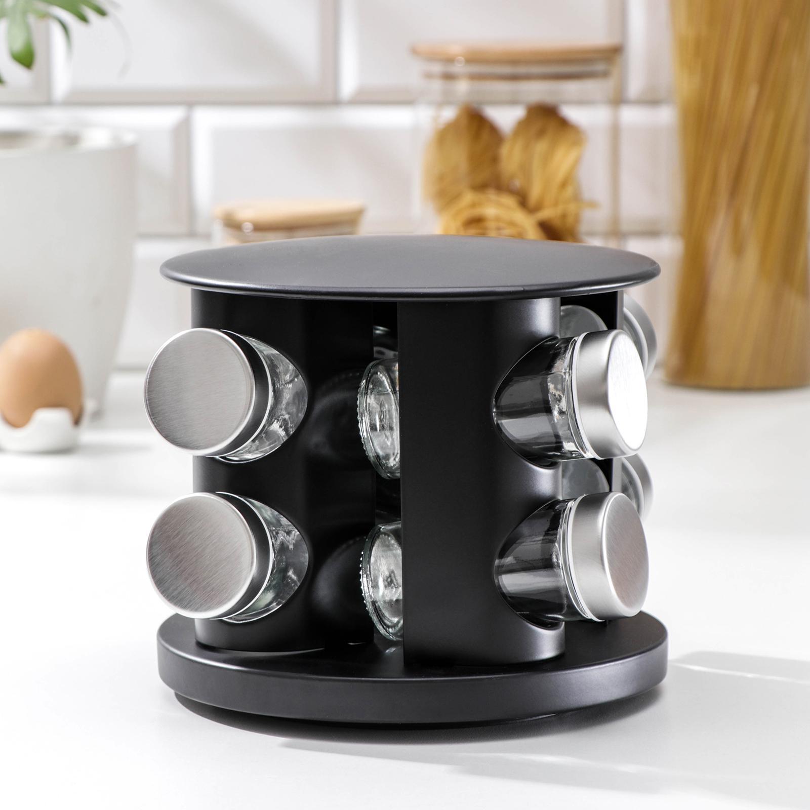 Набор для специй из стекла на подставке «шеф», 85 мл, 8 предметов, 19x16 см, цвет чёрный